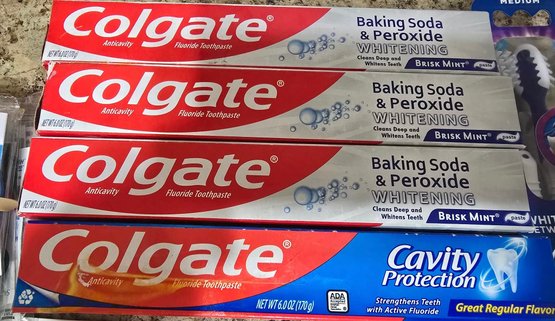 Its All About The Mouth. The toothpaste boxes have had something spilled on them.