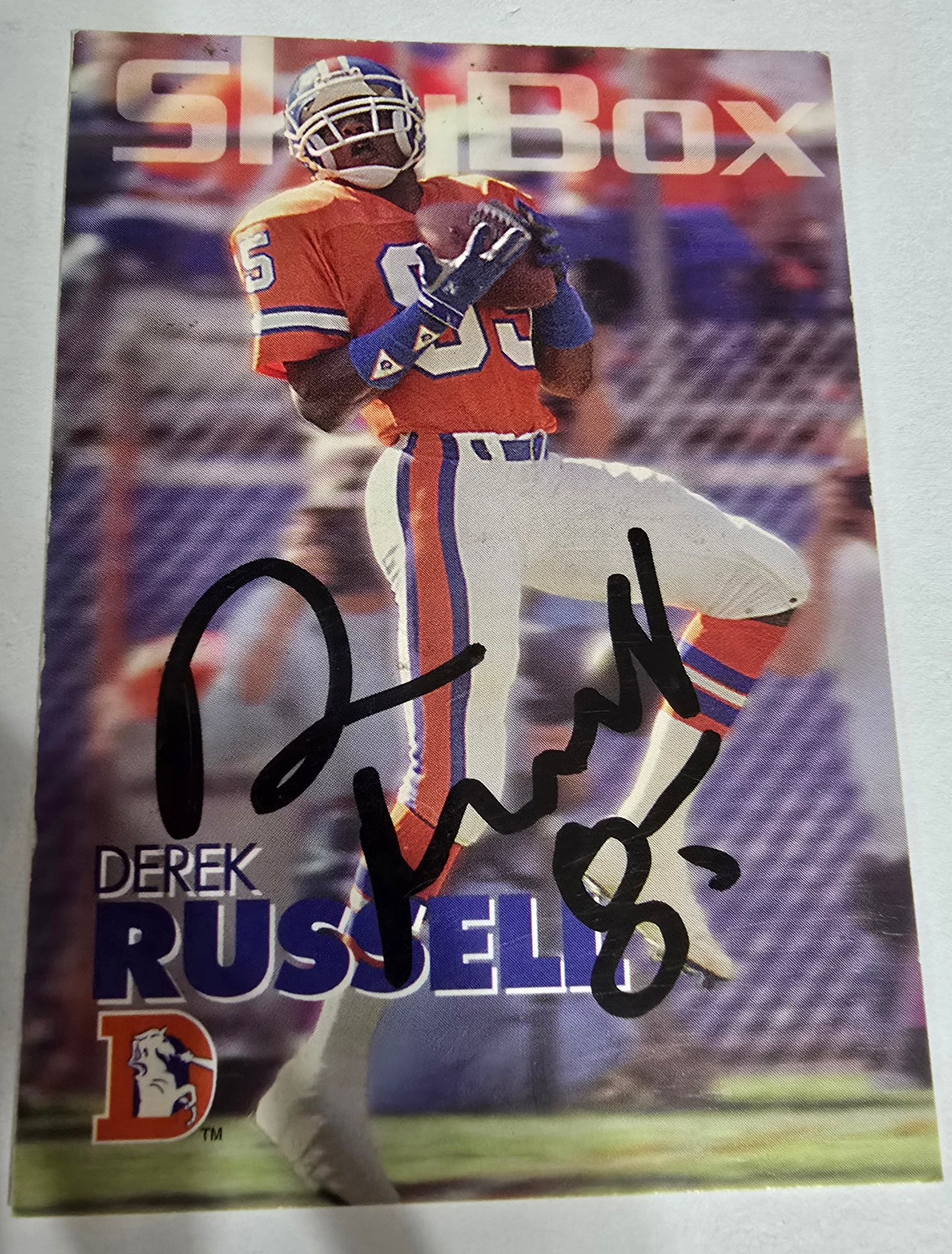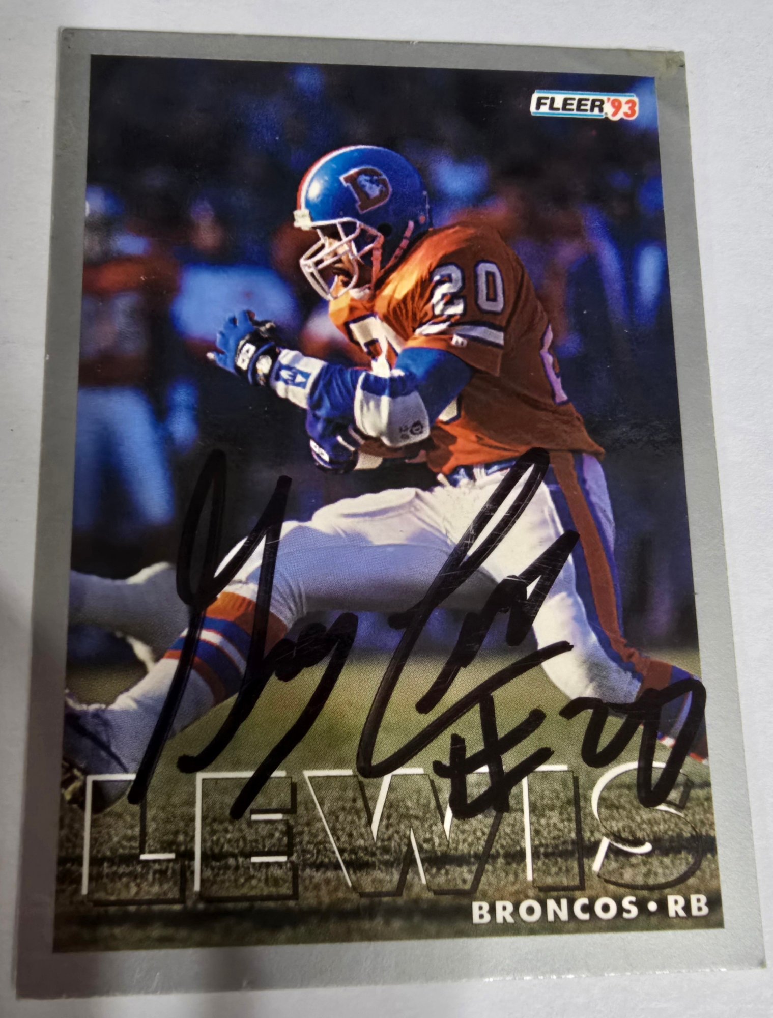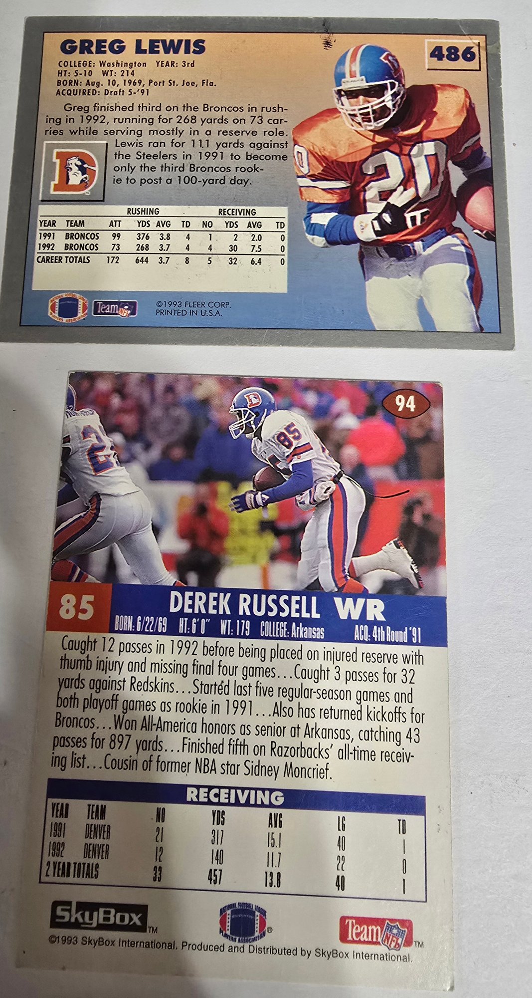 Two autographed sports trading cards featuring Denver Broncos players from the early 1990s. Please see all pics for details.