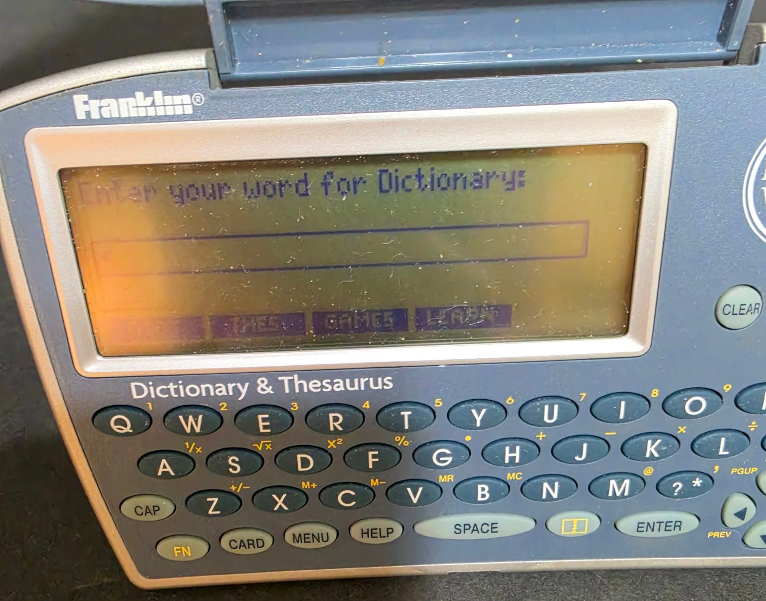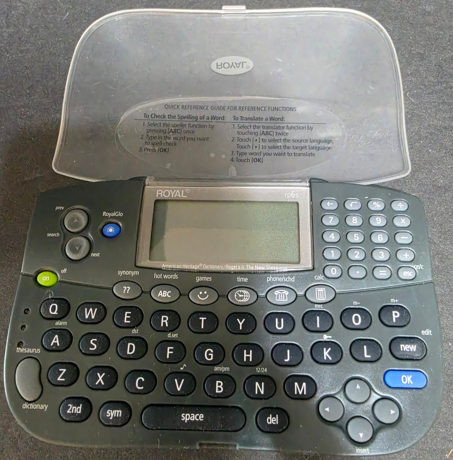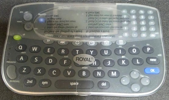 A Royal personal organizer or translator with a keyboard and a Franklin electronic dictionary. Untested. The Franklin turns on the other does not have batteries.