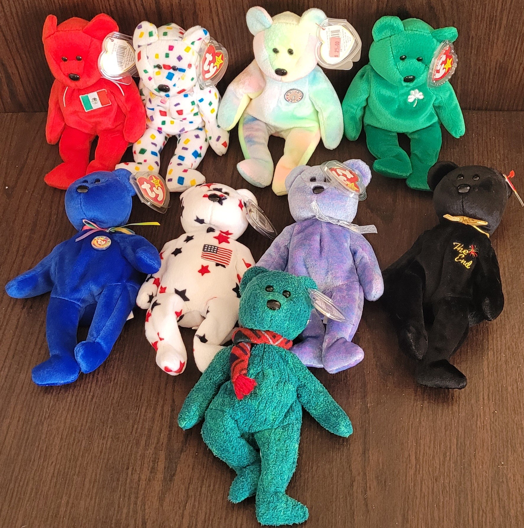 This lot comes with 9 different bears. They all have the tags on them. See pictures for details.