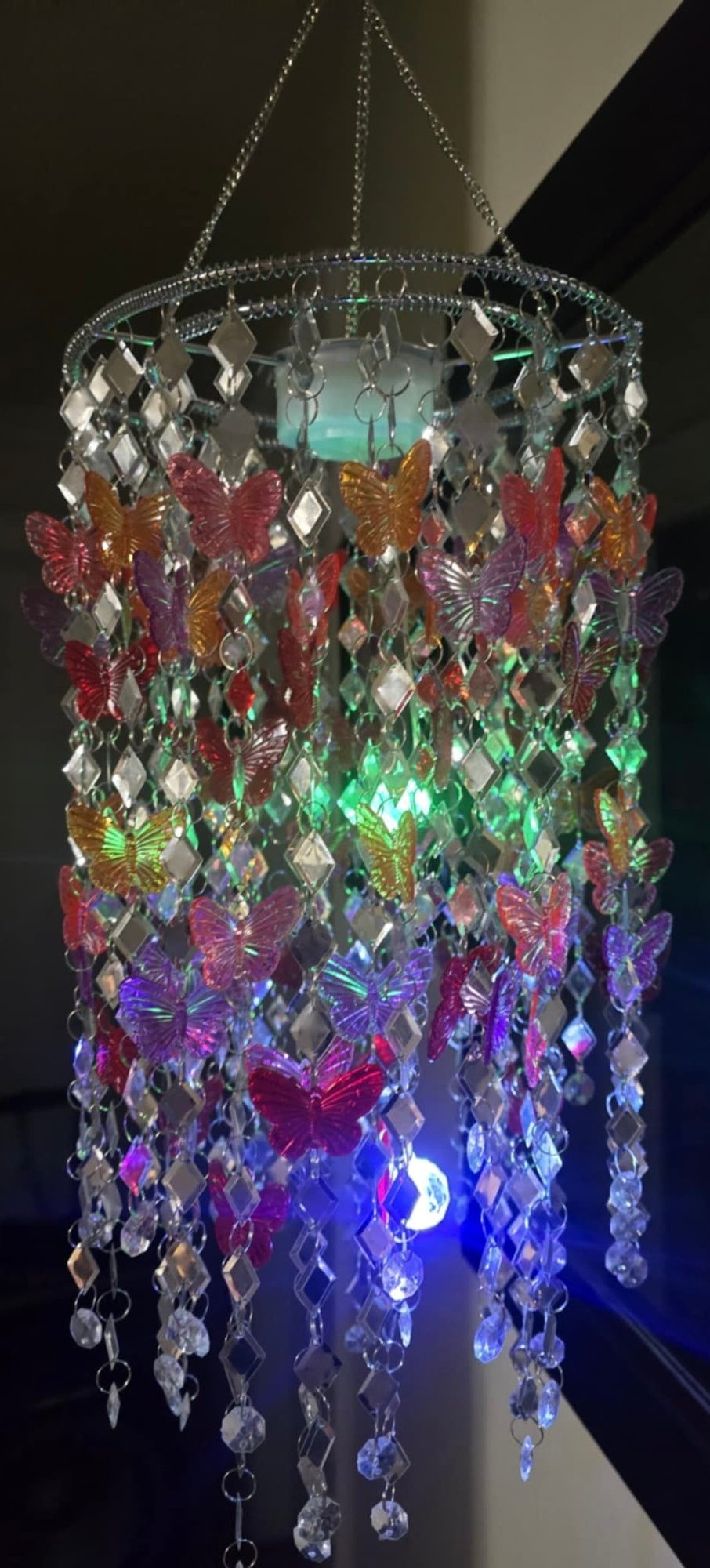 Ultimate Innovations Color Changing Butterfly Metal Chandelier Hanging Light. Measures 9 x 25.