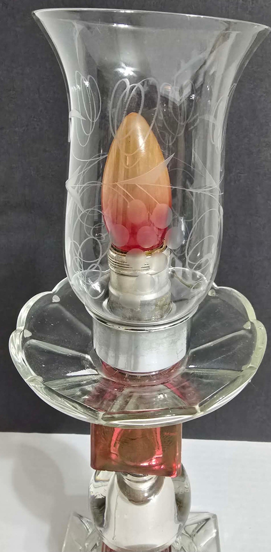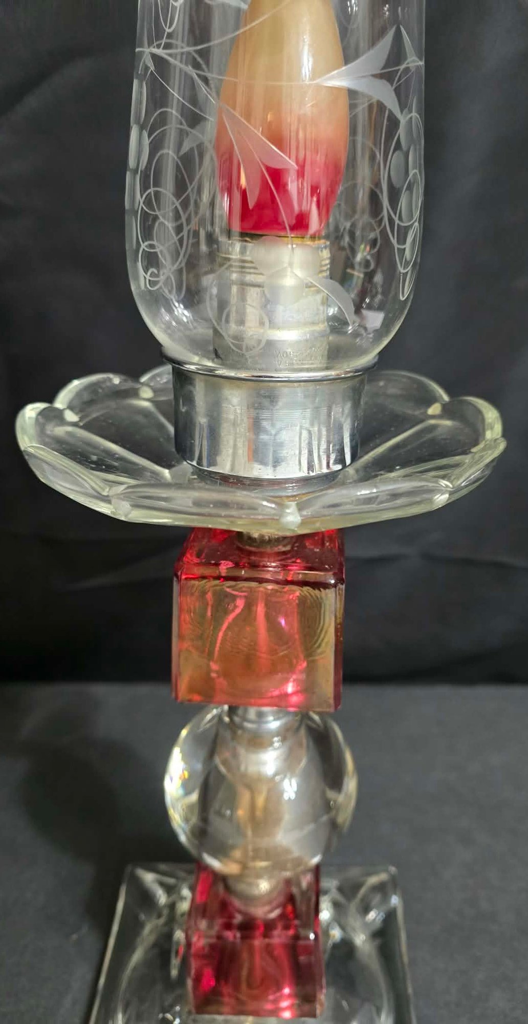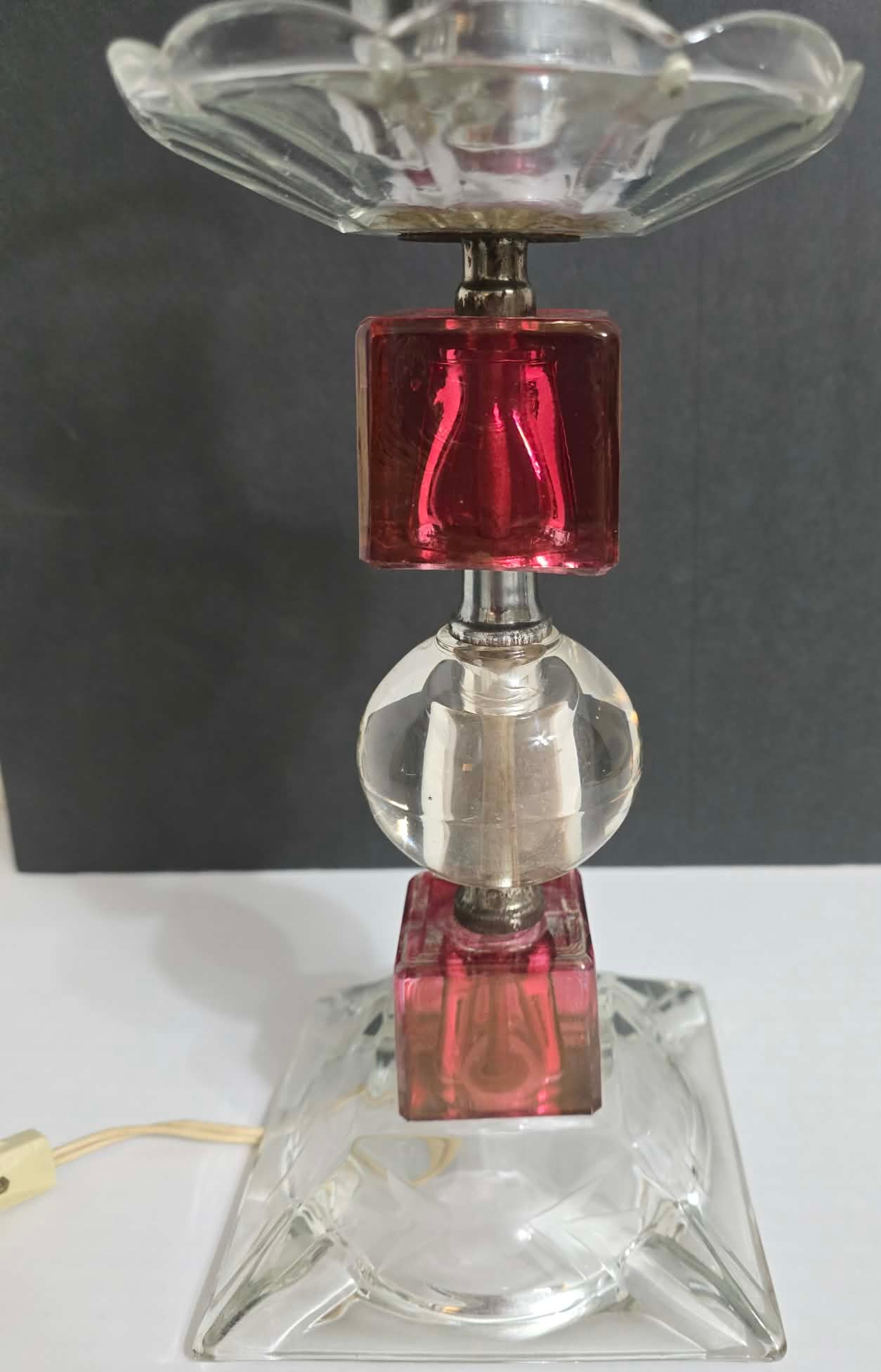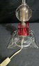Unique Red & Clear Lamp. Tilts to one side a little. Has a votive bulb cover.