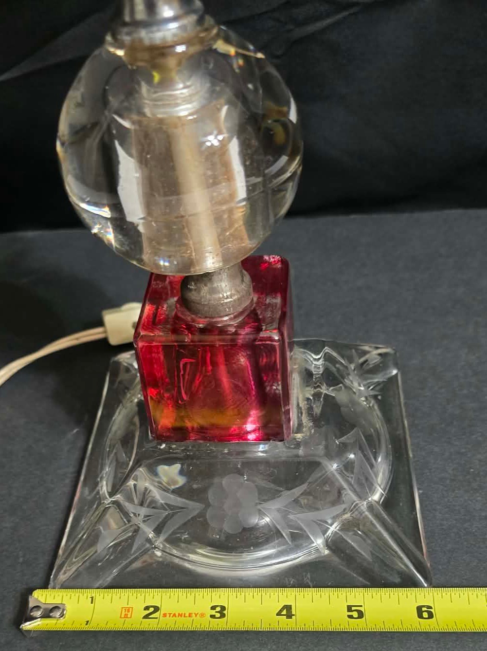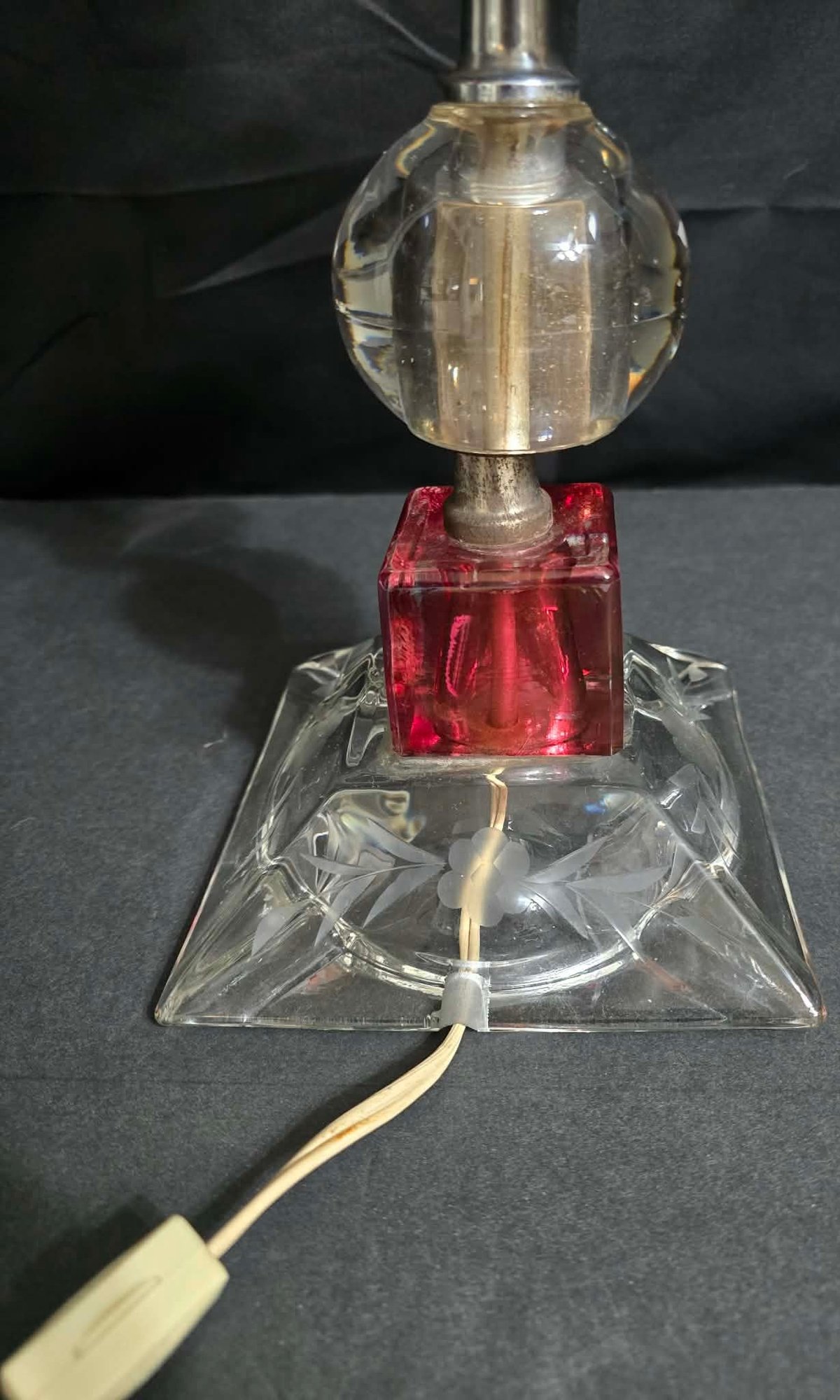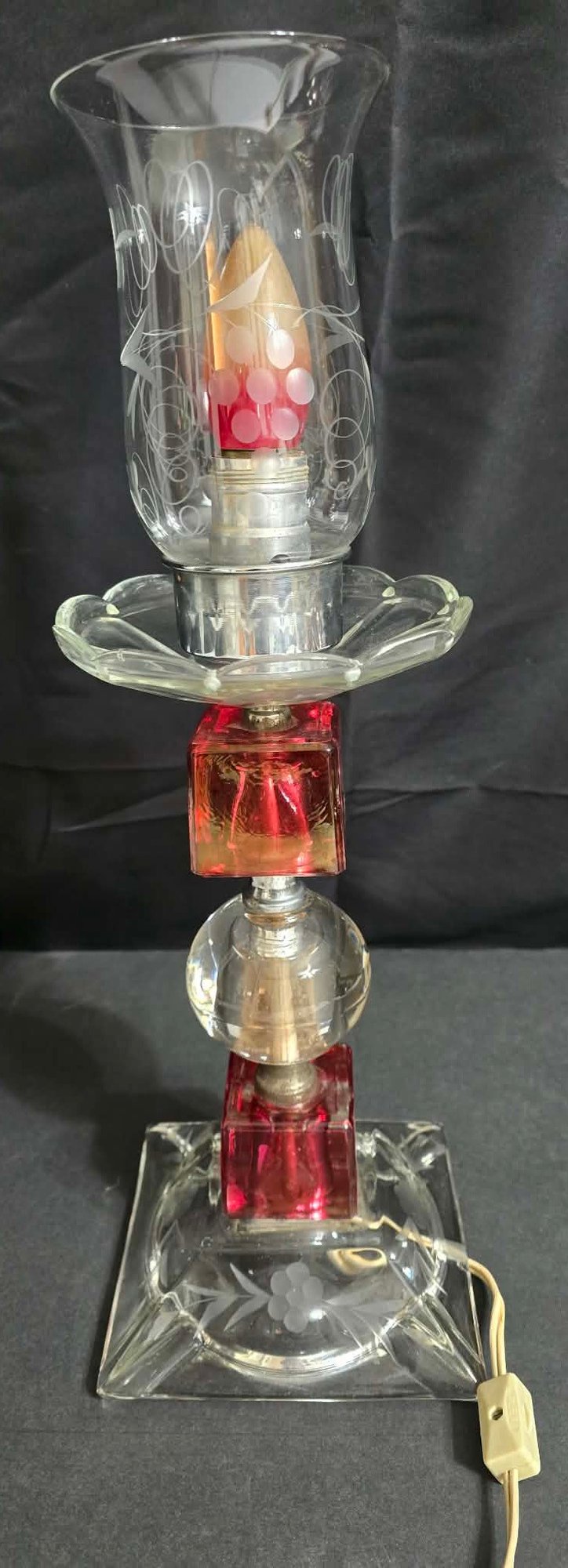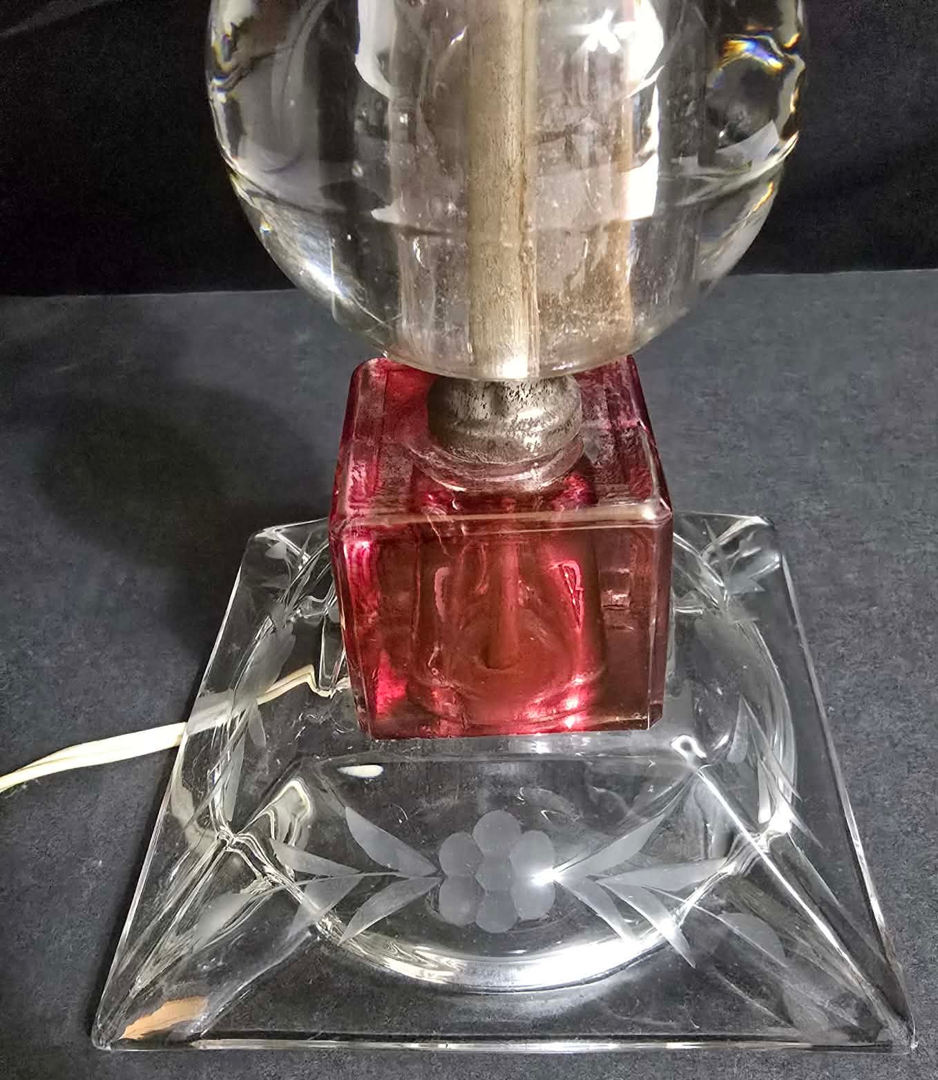 Unique Red & Clear Lamp. Tilts to one side a little. Has a votive bulb cover.