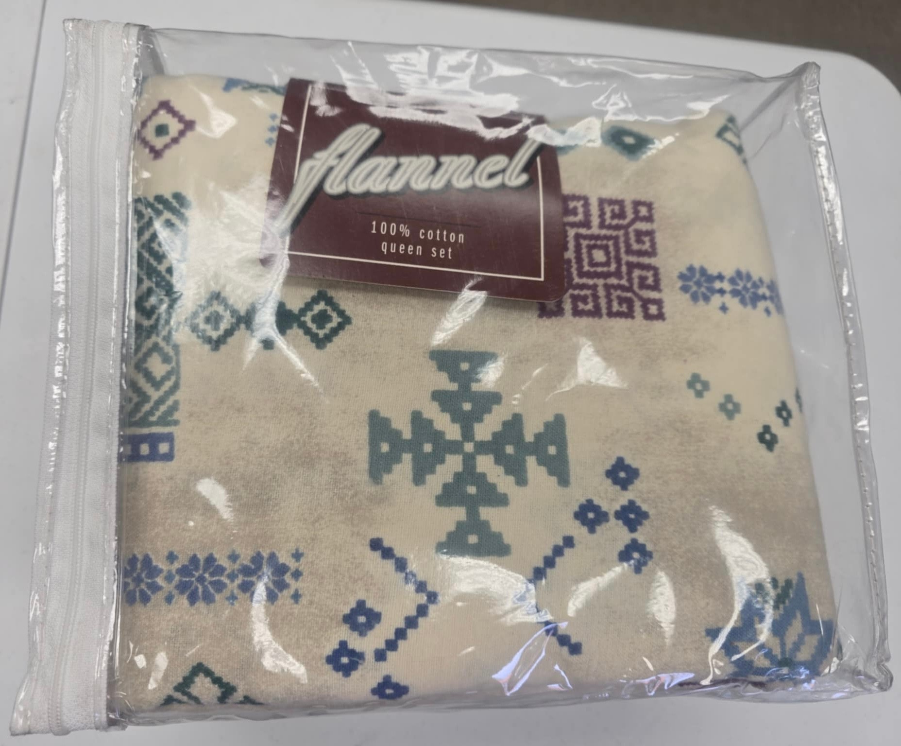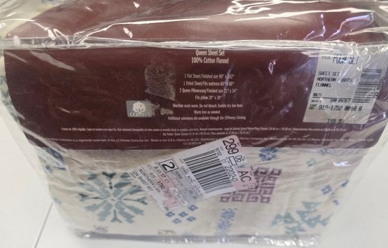 Unopened package Queen Size 100% Cotton Flannel Sheet Set by JCPenny Home Collection.