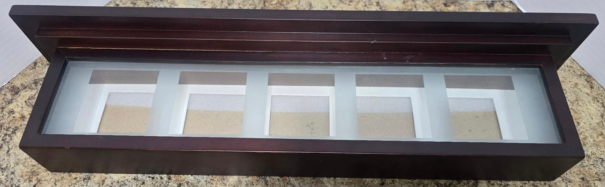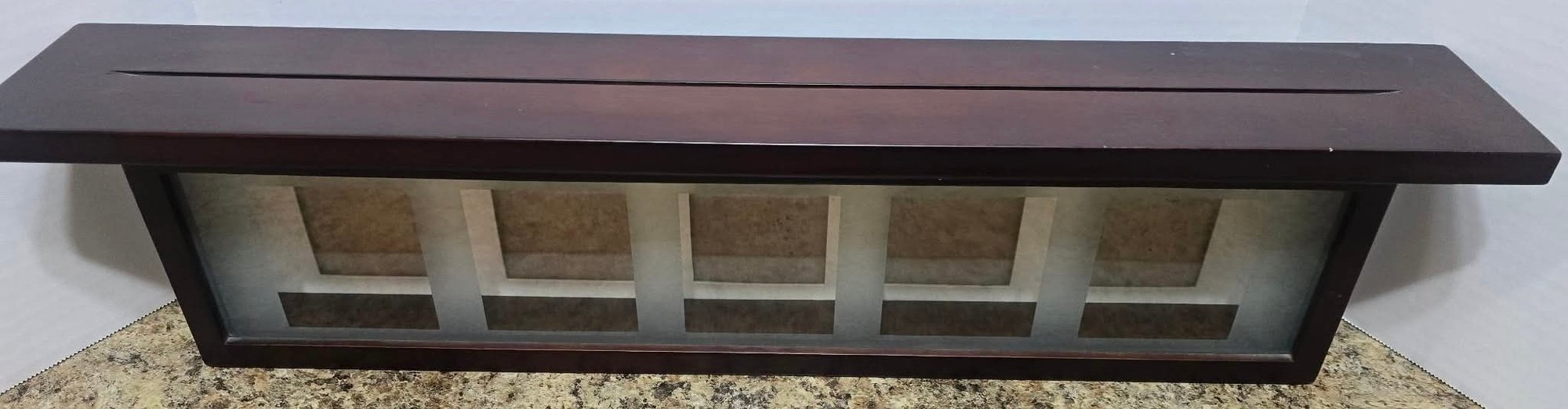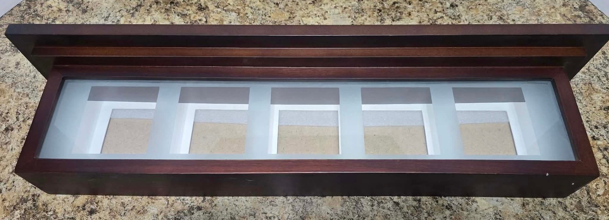 Unused 5 Window Wall Desk Photo Wood Rack Stand Shelf Frame Set Home Decor. Measures 25 x 4 x 6.5.