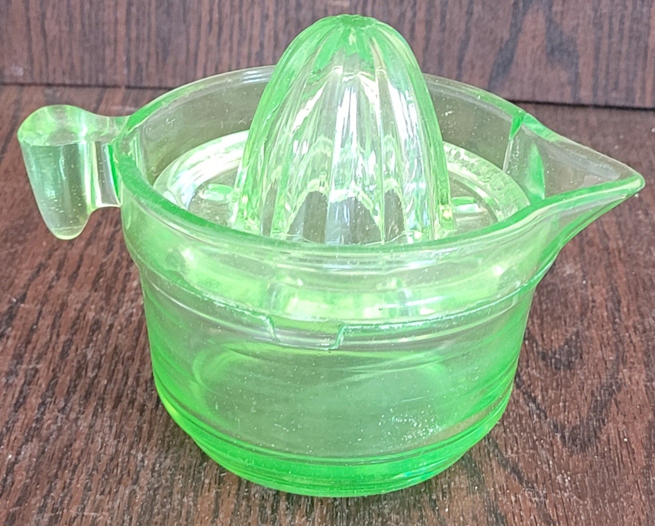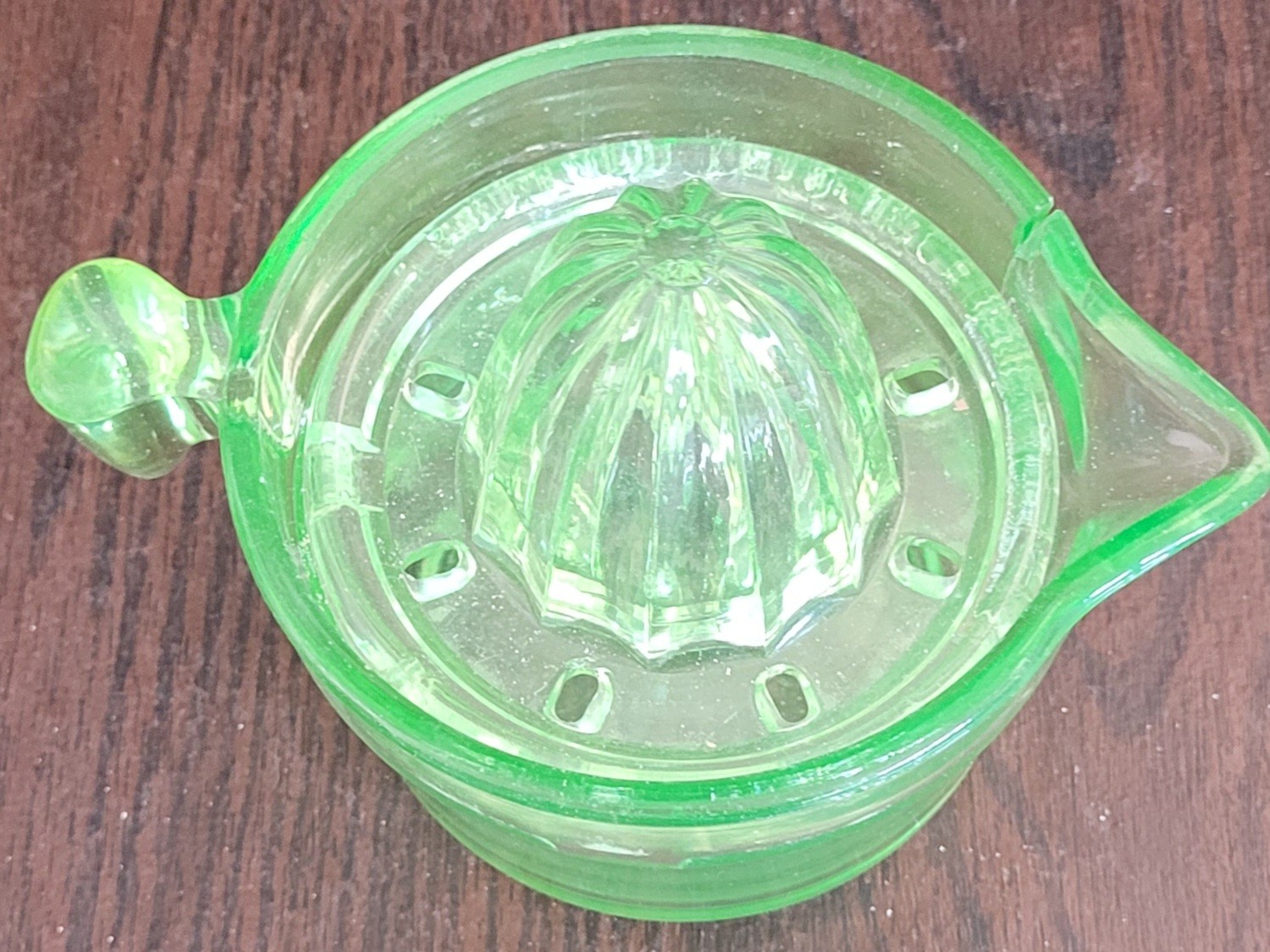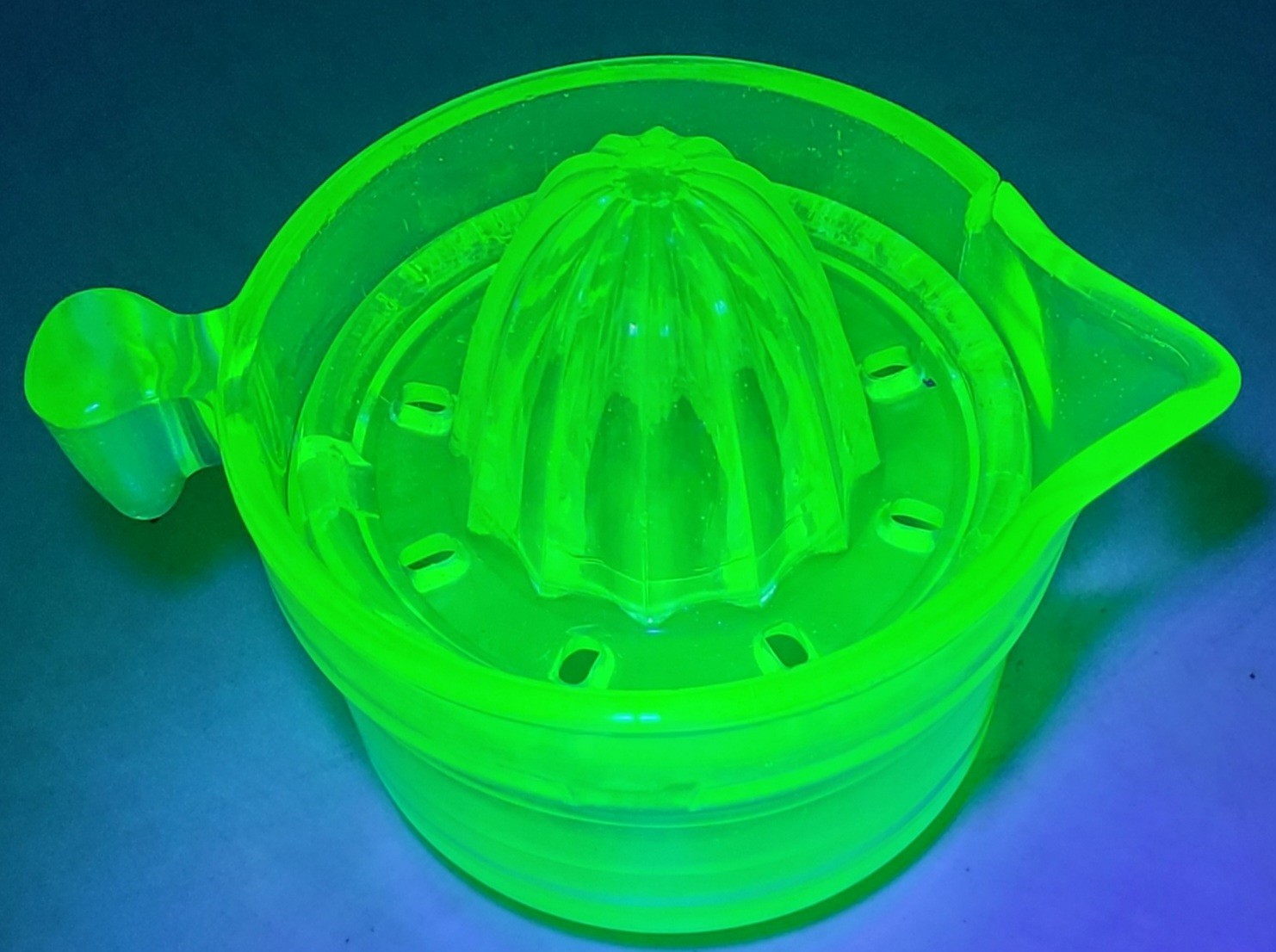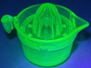 The measuring cup does have a large crack in it. However, the juicer piece is in used but good condition. It does glow. See pictures for details.