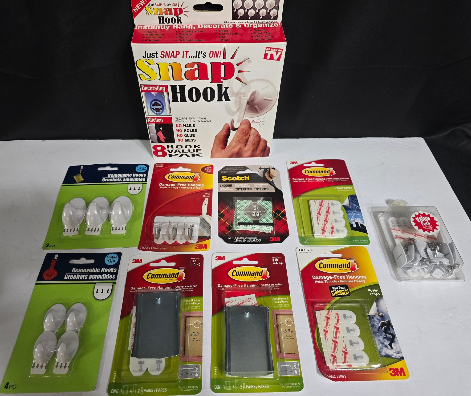 Various 3M Command Brand damage-free hanging hooks and adhesive strips designed for organization and decorating. Please see all pics for details.