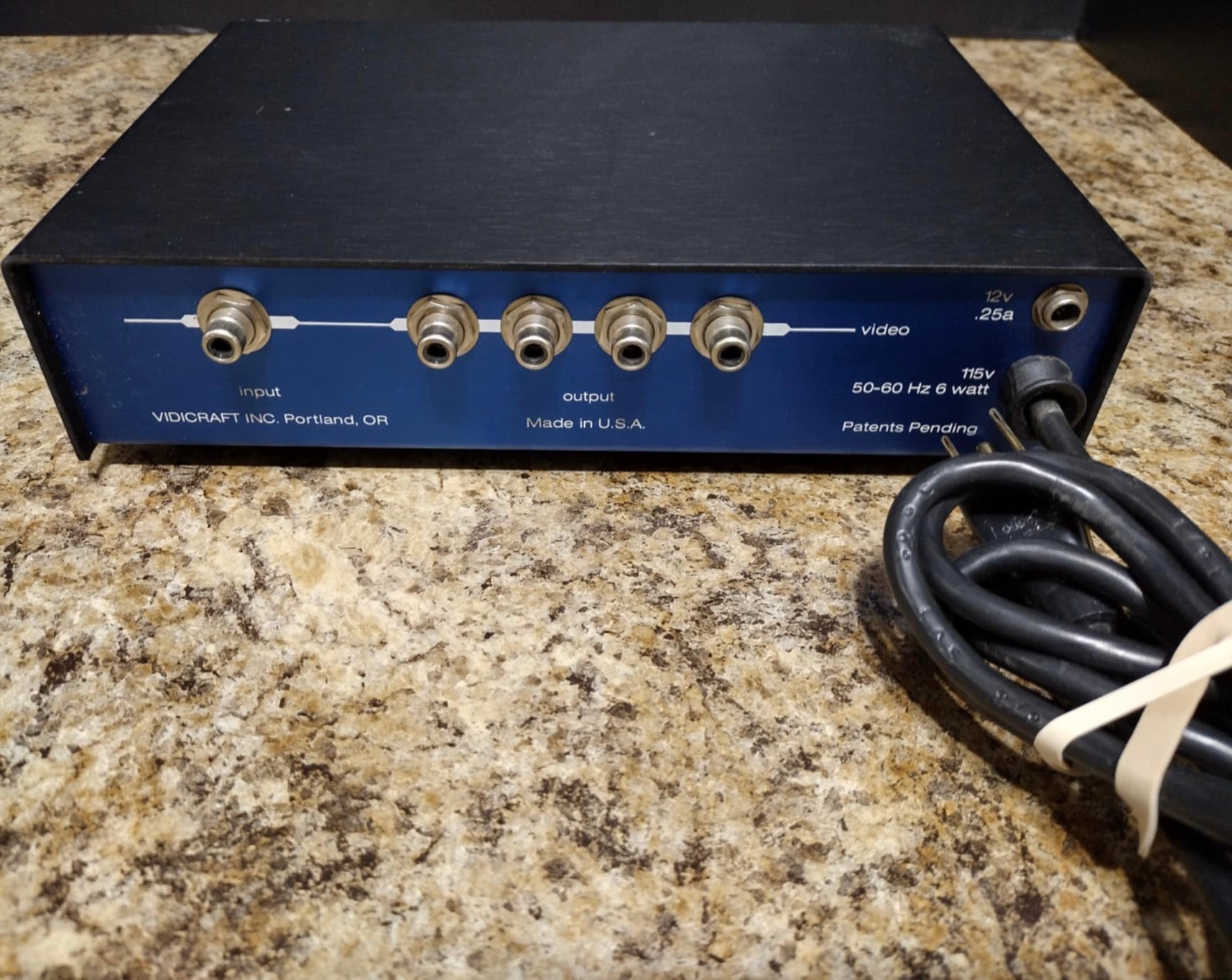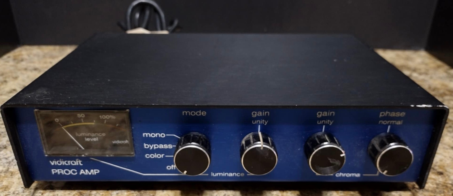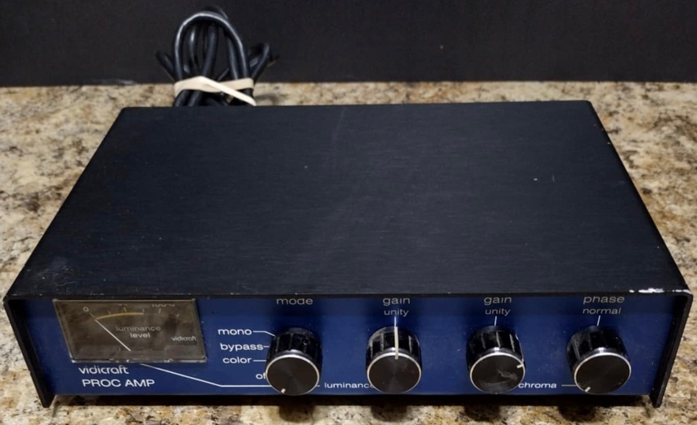 Vidicraft PROC AMP, a vintage analog video processing unit from the 1980s or 1990s used for enhancing and color-correcting video signals, particularly from VHS tapes. Untested.