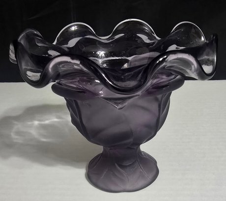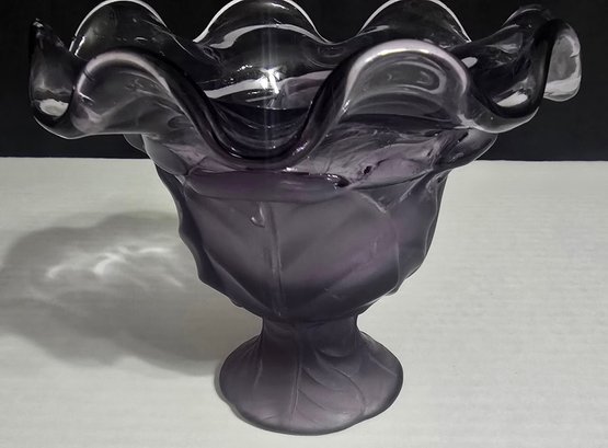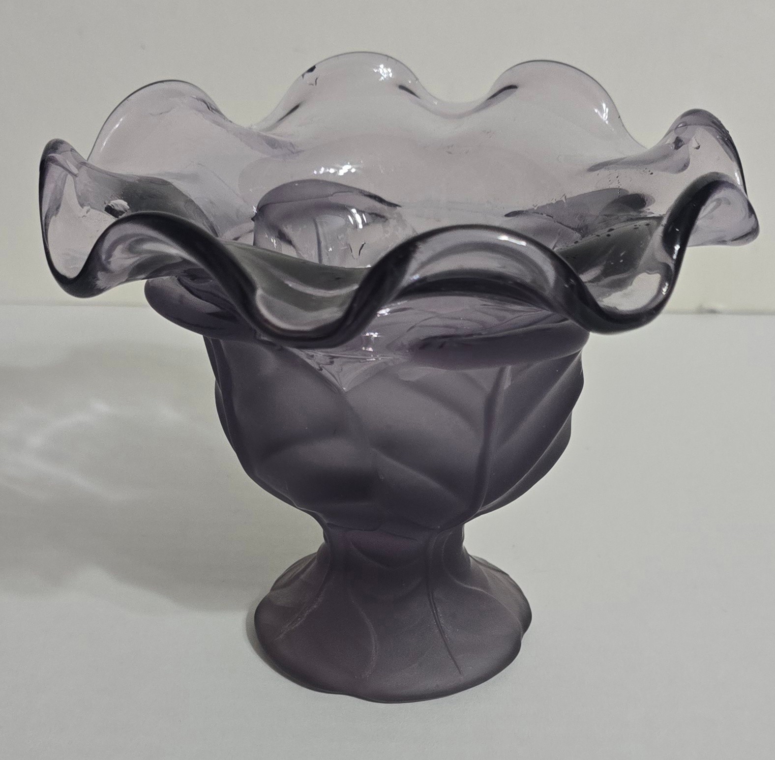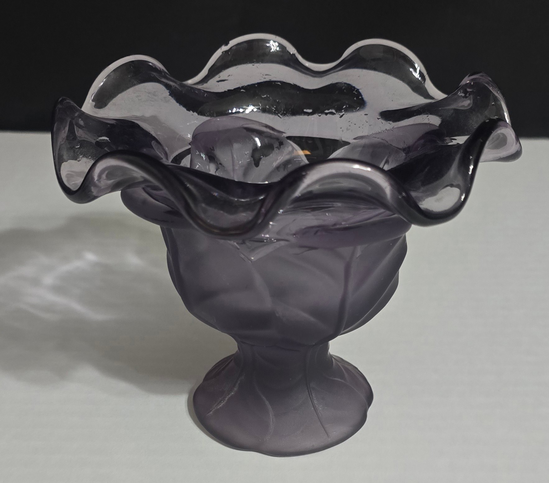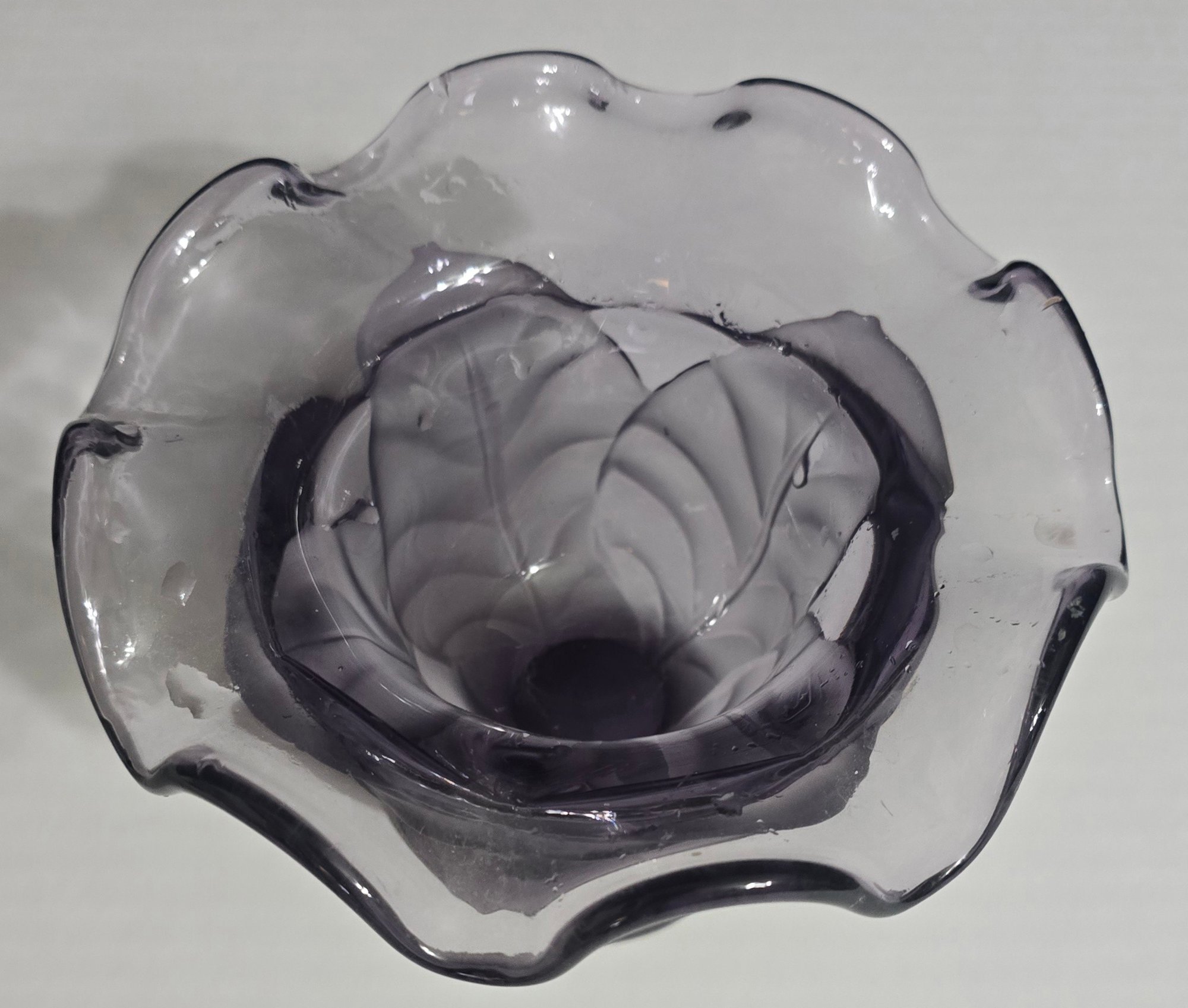 Viking Epic Cabbage Leaf Frosted Glass Bowl in a lilac or amethyst purple color. No cracks or chips noted. Measures 6.25 x 5. Please see all pics for details.