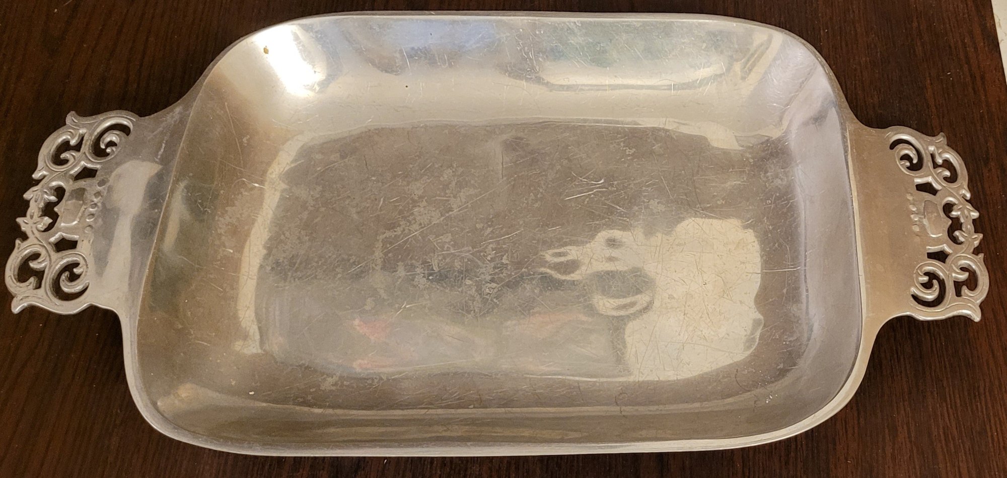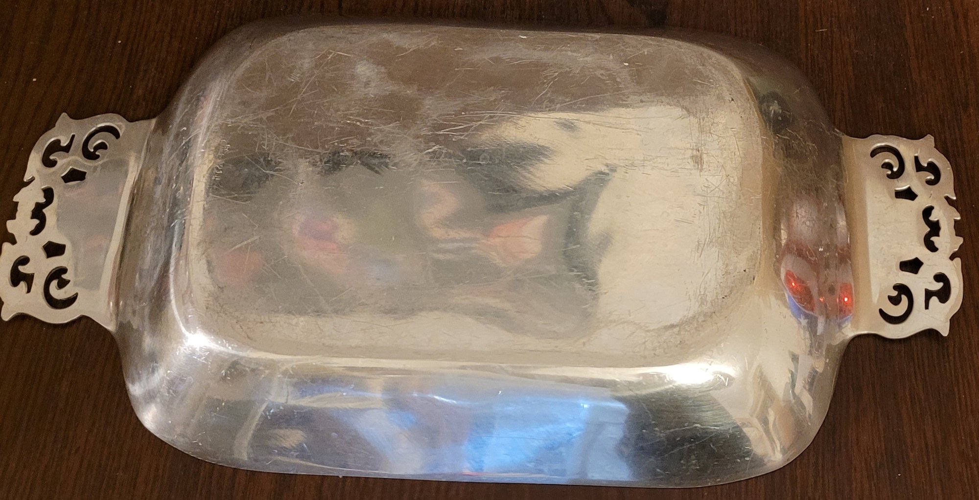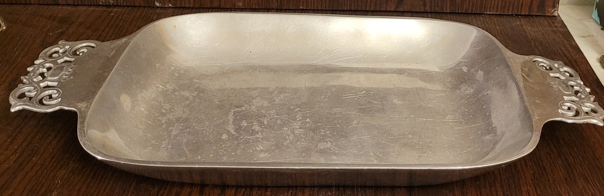 This measures 20.25" long by 11.125" wide by 2" tall. It does have scratches on it. See pictures for details.