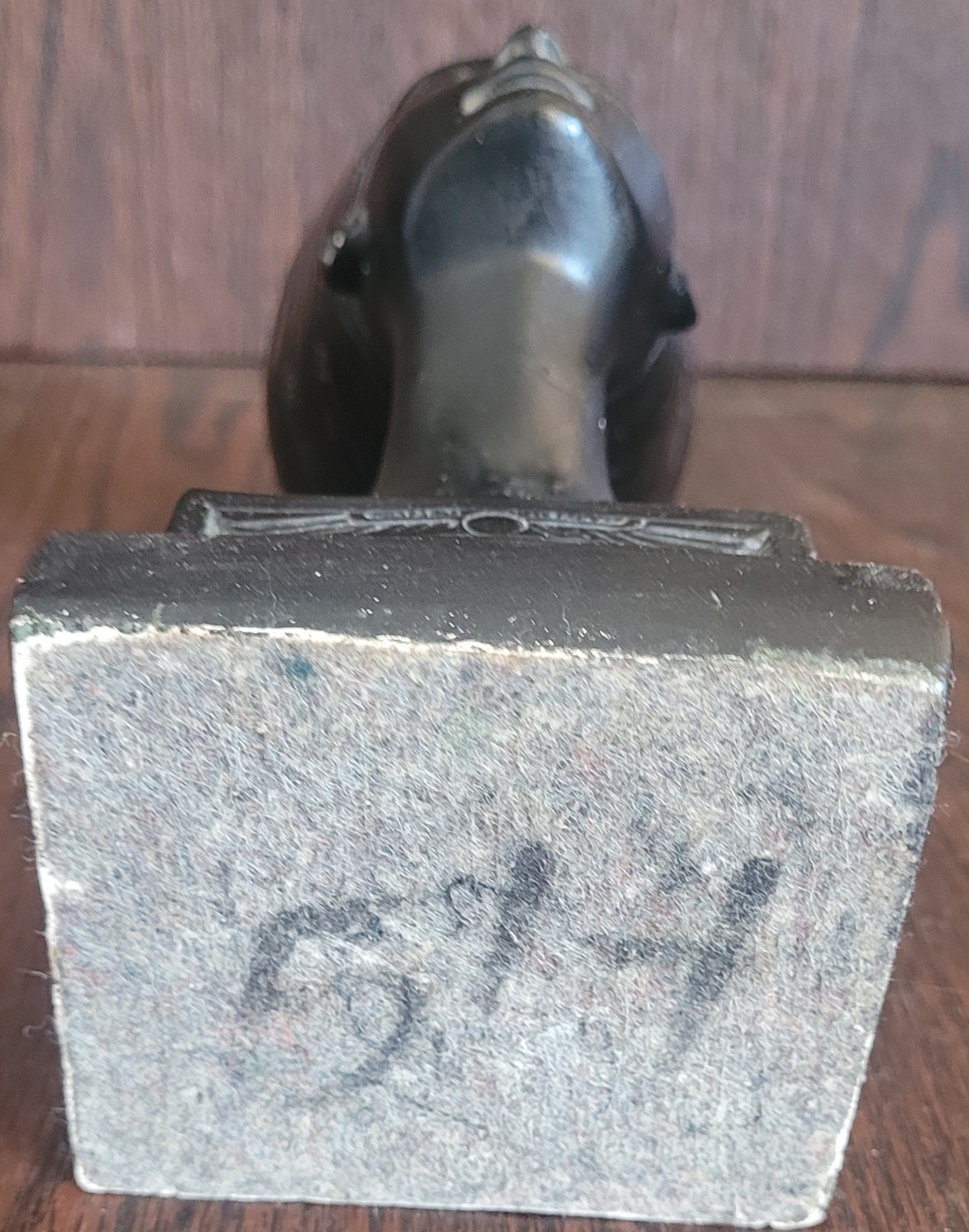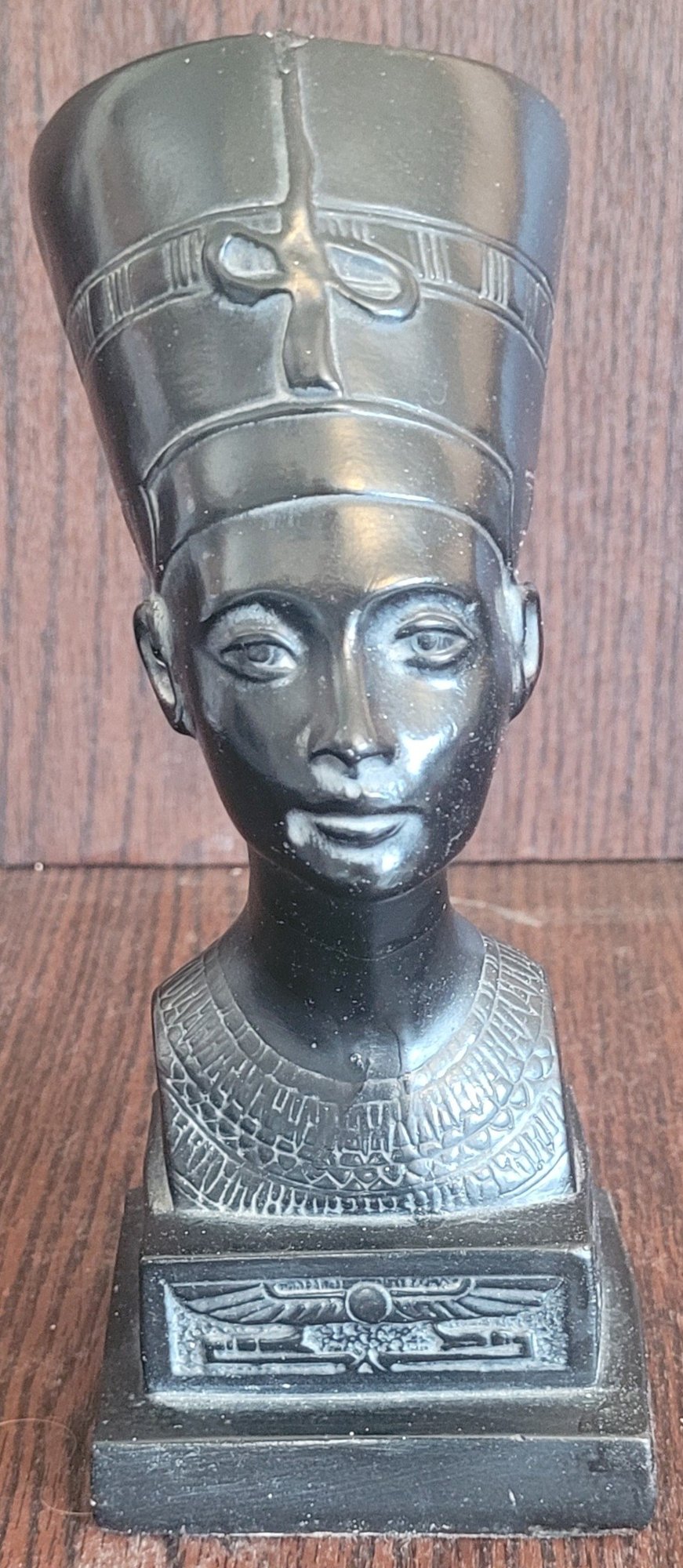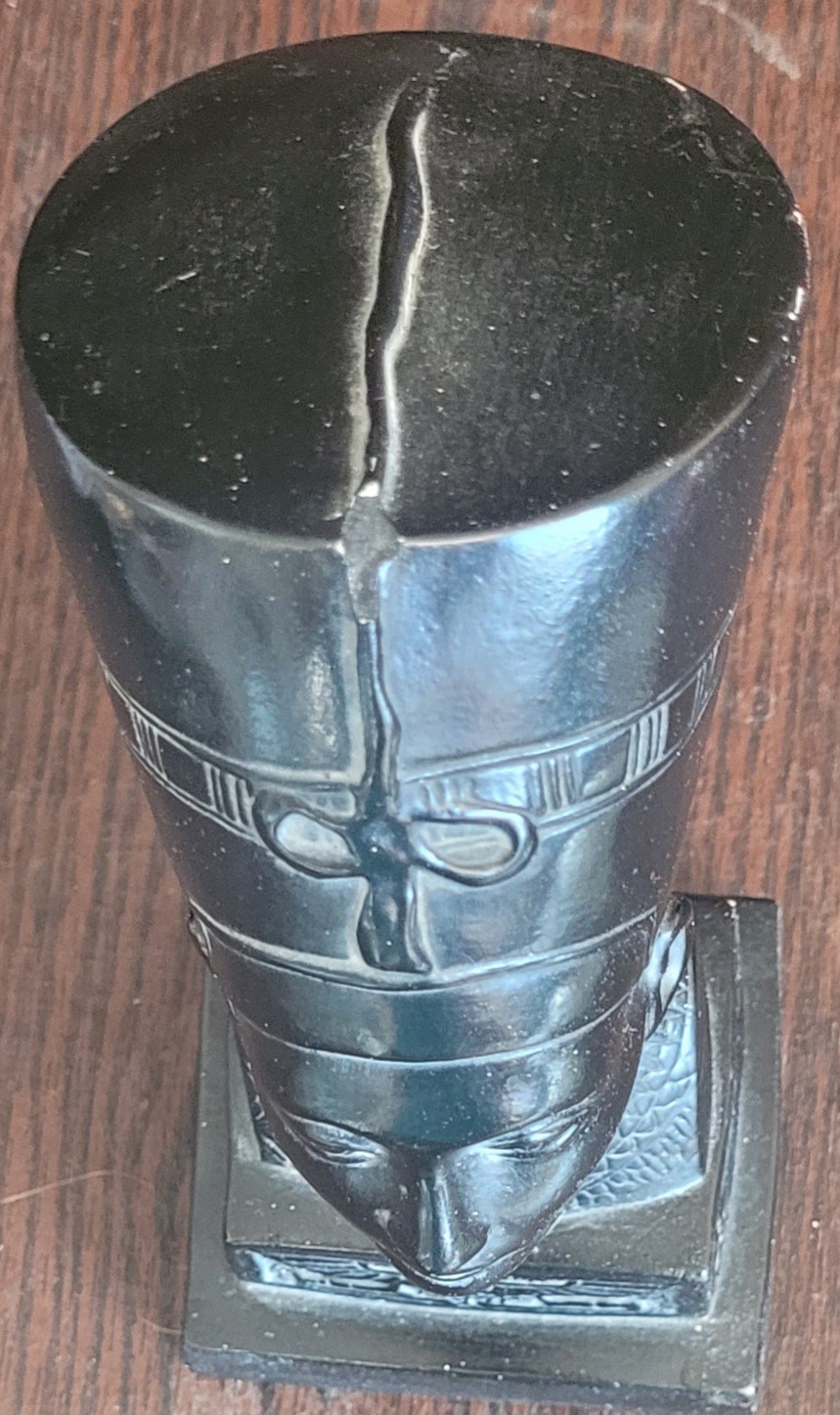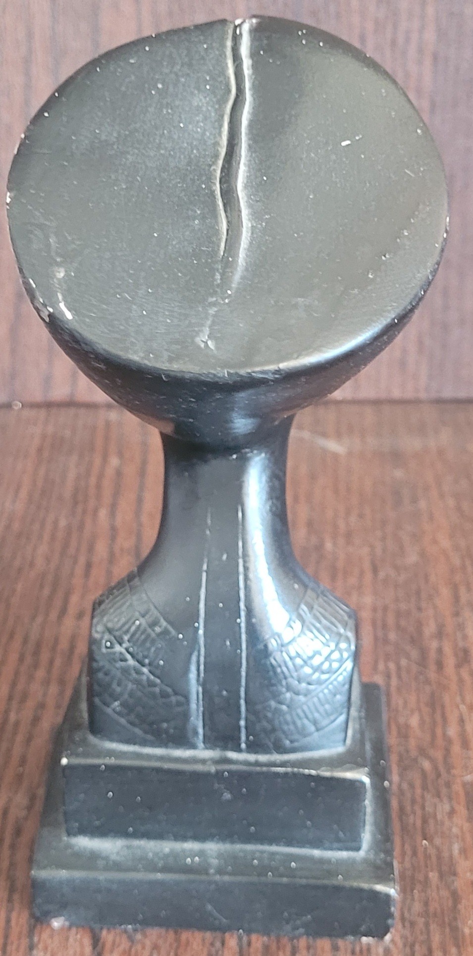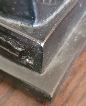 This measures 8.5" tall by 4" wide by 3.5" long. It does have some small chips on it. See pictures for details.