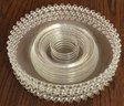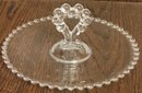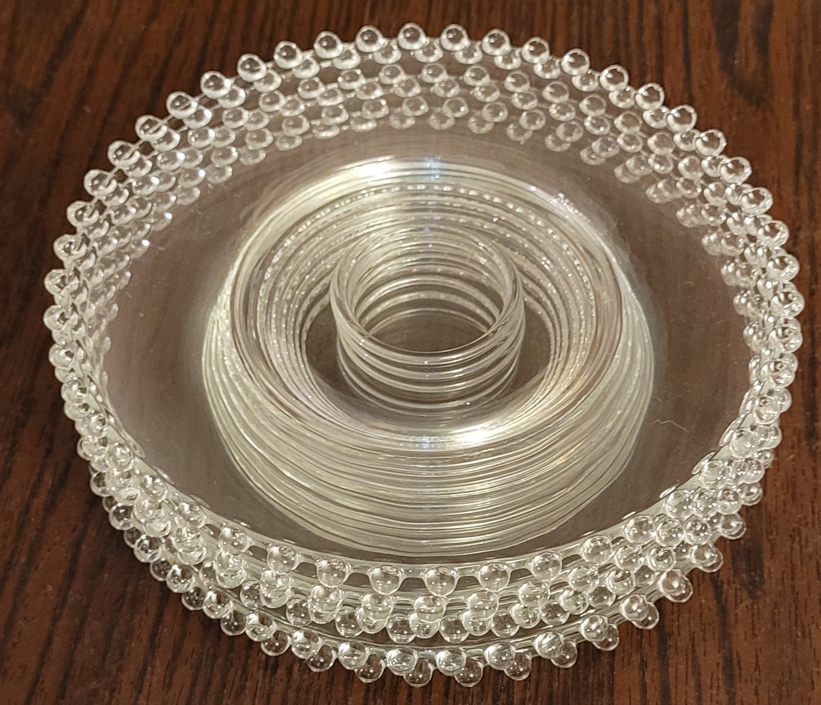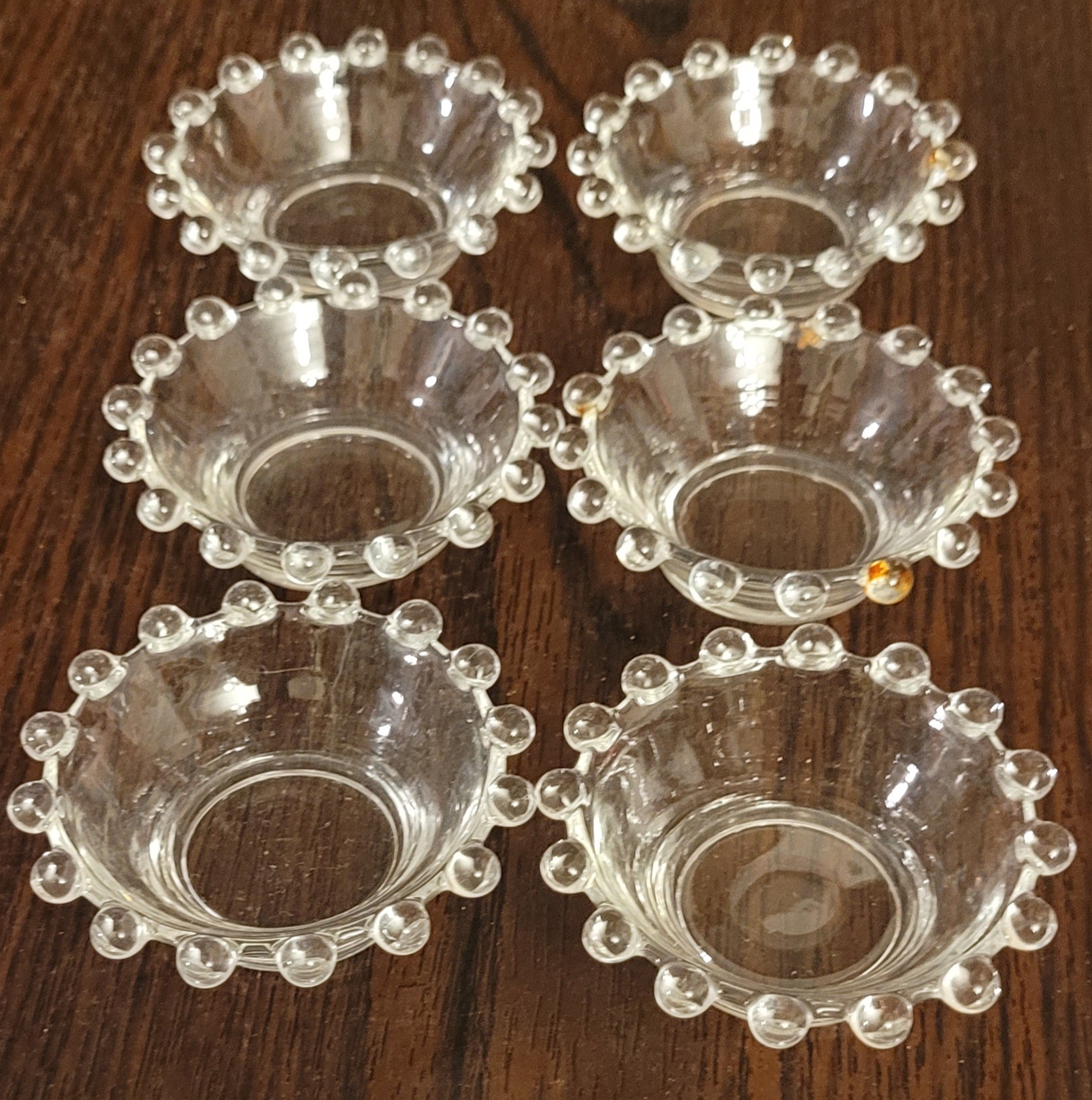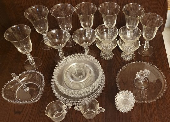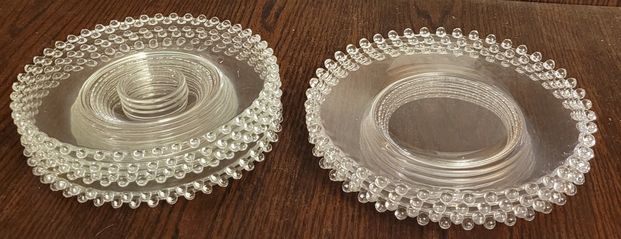 The glasses measure 7.5" tall, 5" tall, and 3.5" tall, the cream & sugar measure 3.5" tall, the plates measure 7" in diameter and 8" in diameter, the relish tray measures 8.25" tall and the bowl measures 6.25" long. See pictures for details.