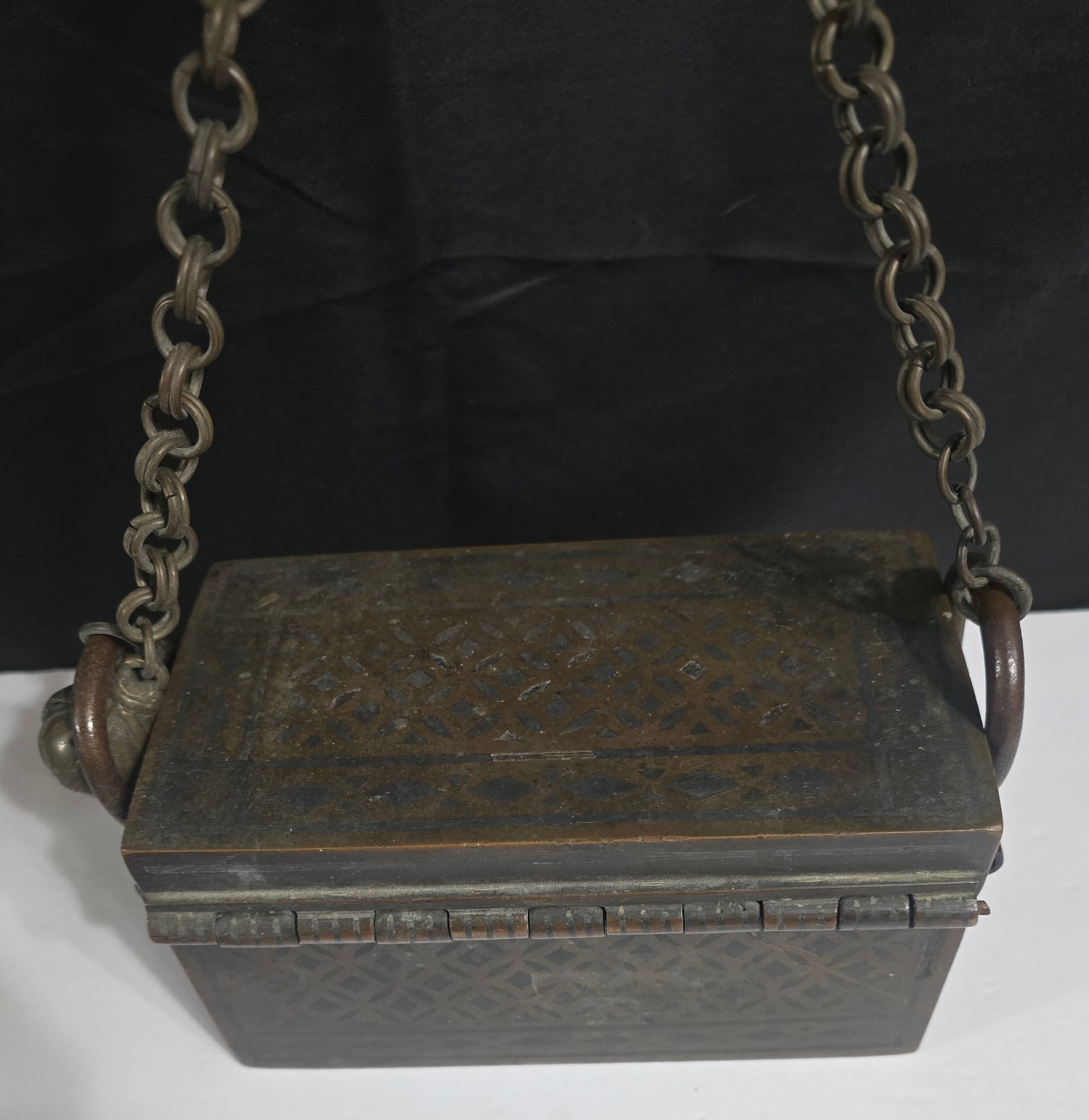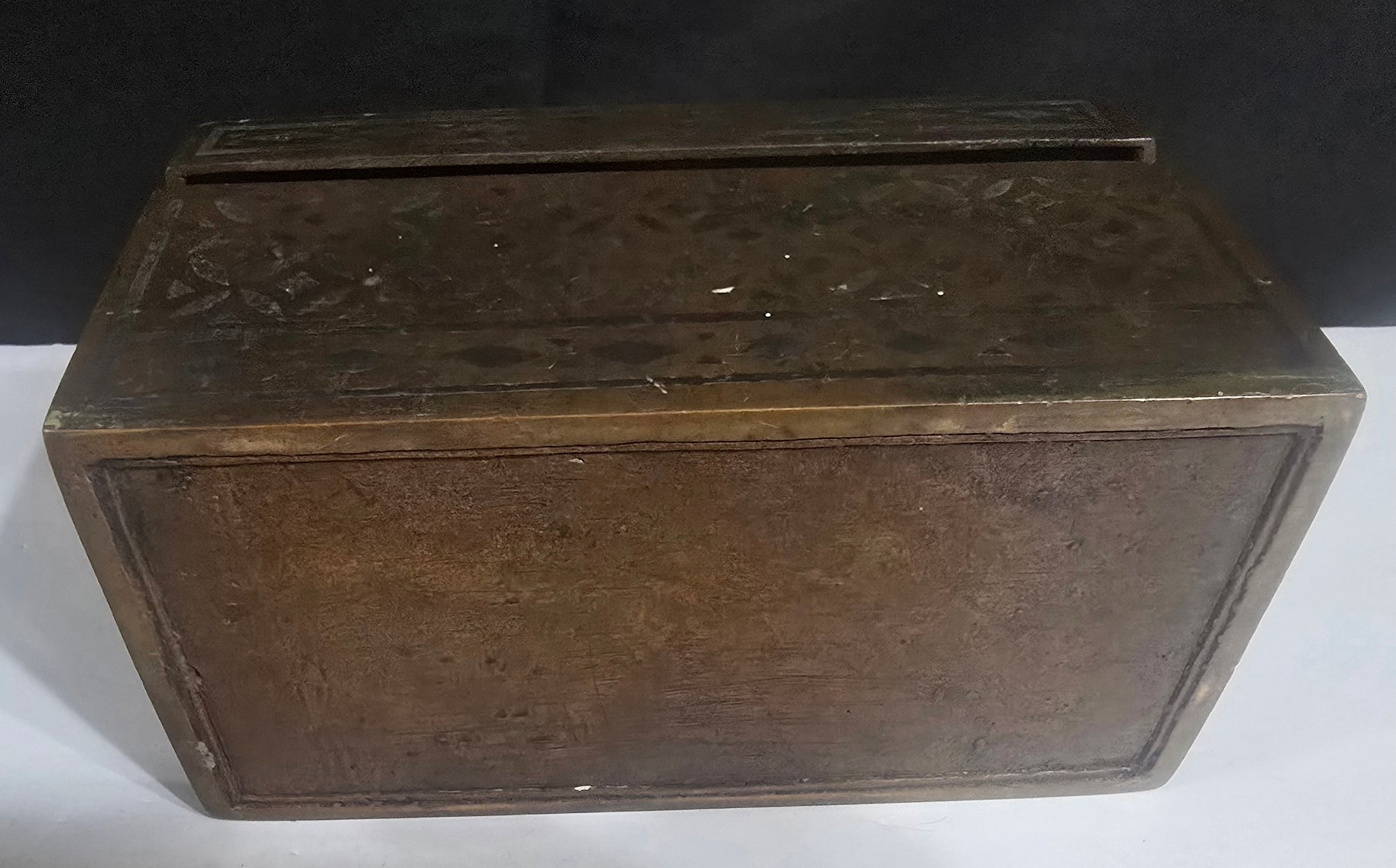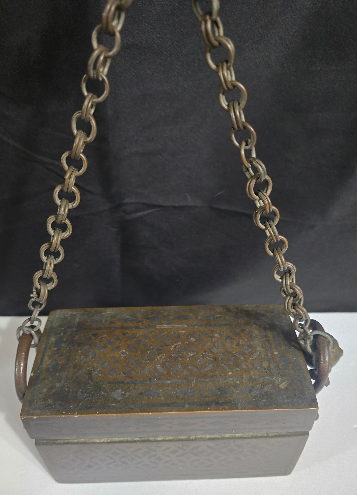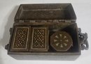 Appears to be a Vintage brass betel nut box from the Philippines, likely belonging to the Maranao people. Measures 8.5 x 4 x 4. Please see all pics for details.