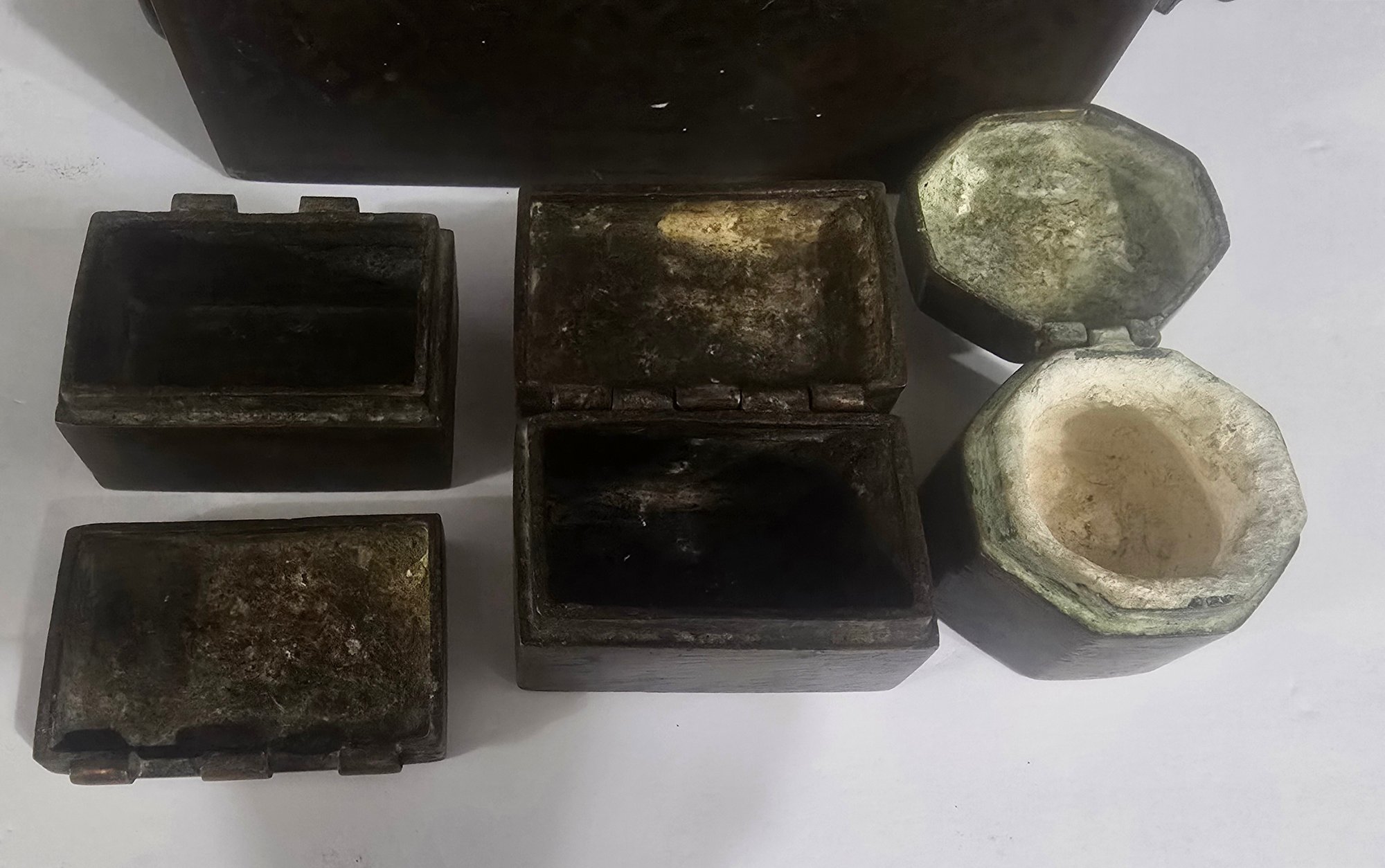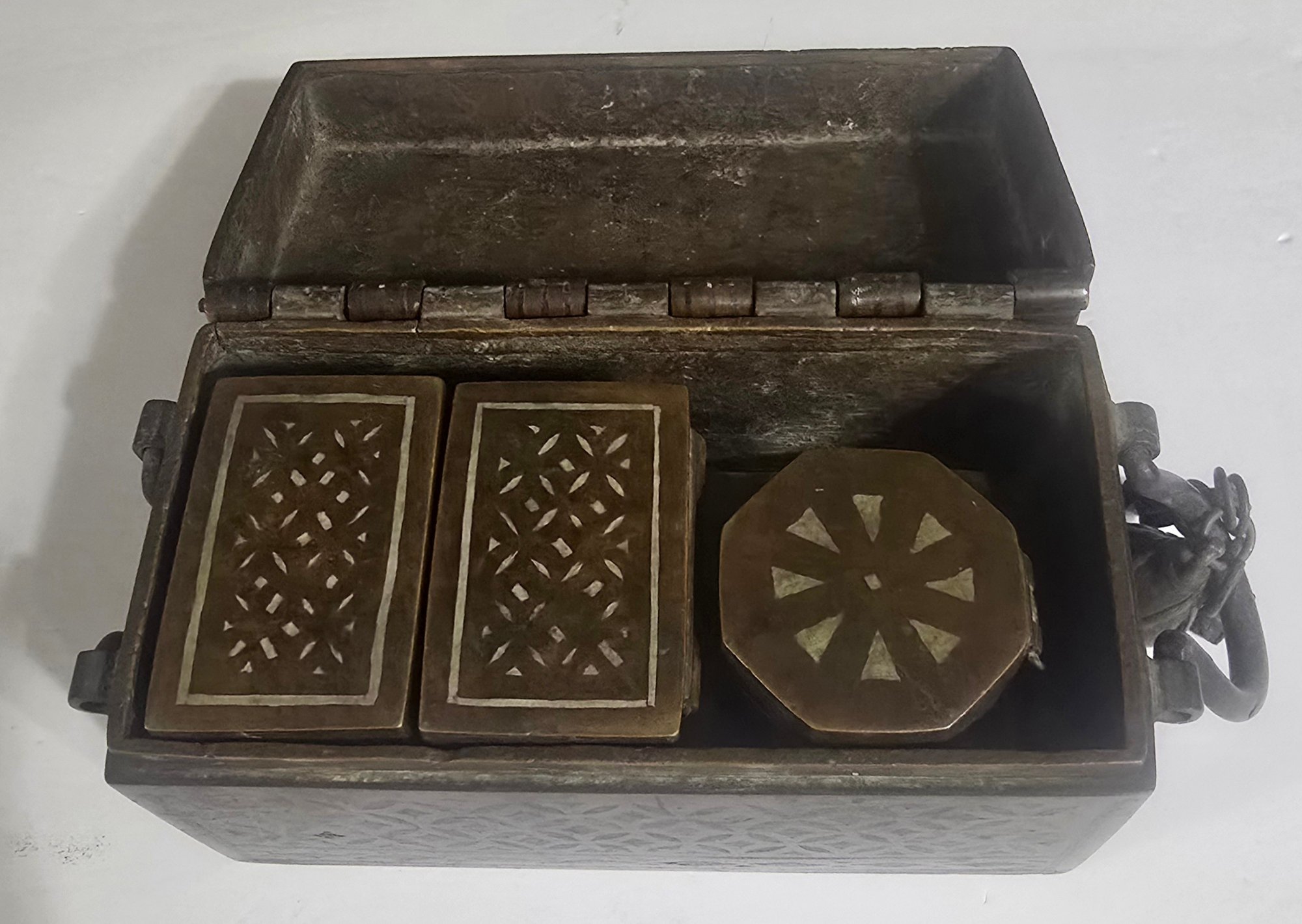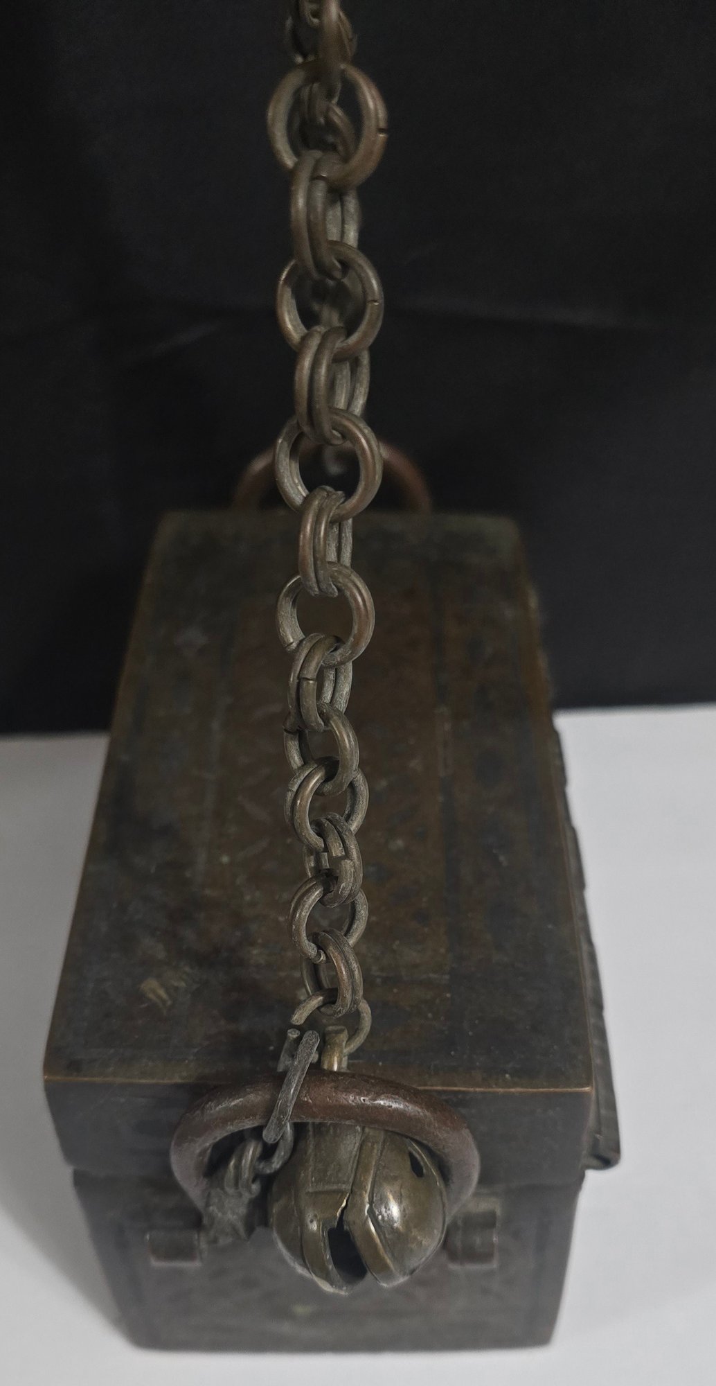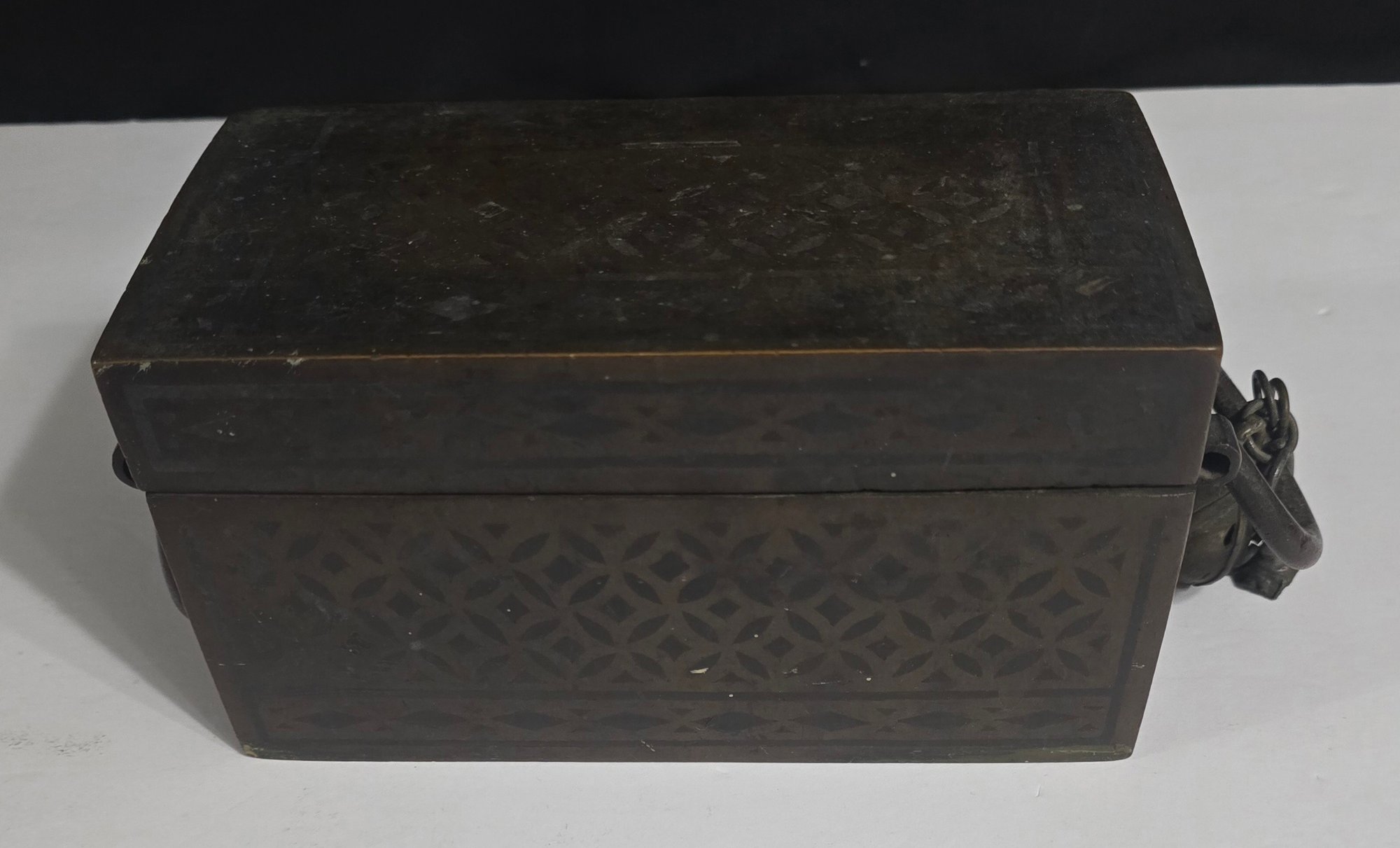 Appears to be a Vintage brass betel nut box from the Philippines, likely belonging to the Maranao people. Measures 8.5 x 4 x 4. Please see all pics for details.