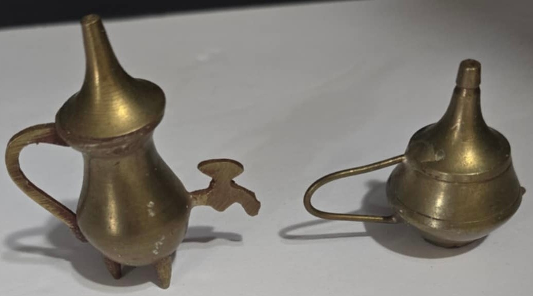 Vintage brass dollhouse miniatures, most measures approximately 2".