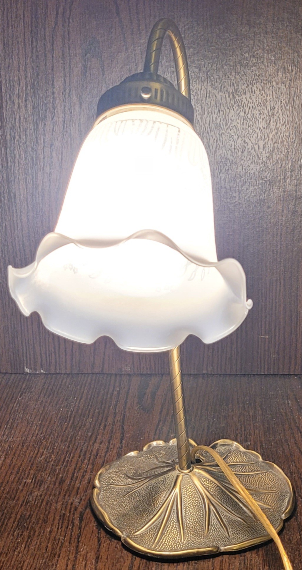 This lamp has been tested and does work. It measures 14" tall by 10" wide. See pictures for details.