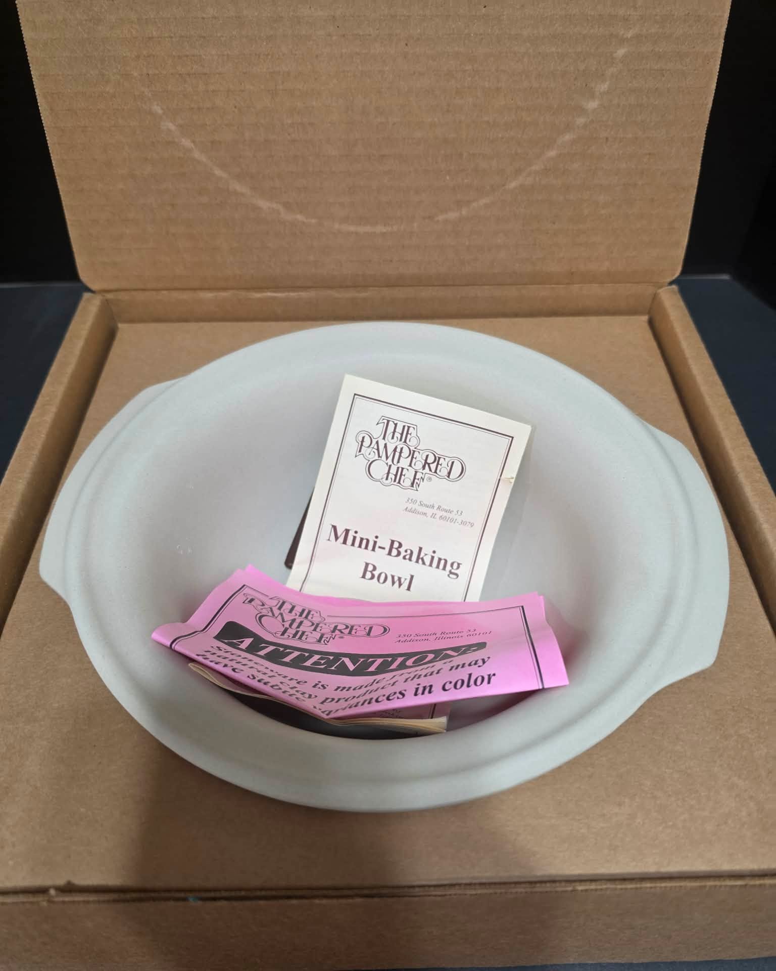 Vintage collectible item its a Pampered Chef Mini-Baking Bowl. Measures 10 x 9 x 3.5. Unused.