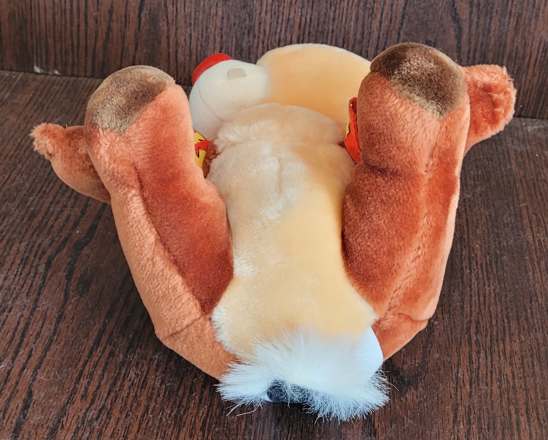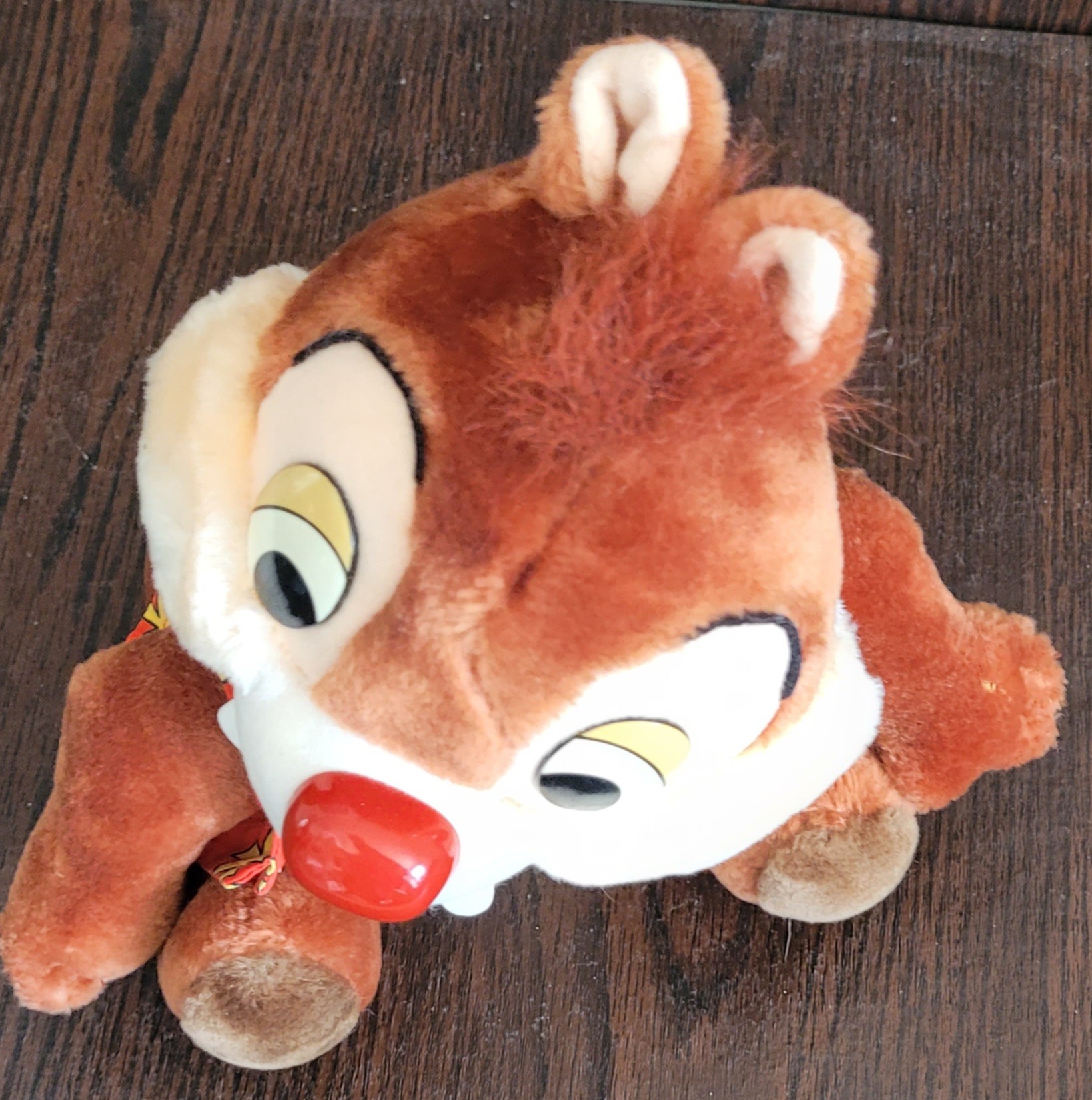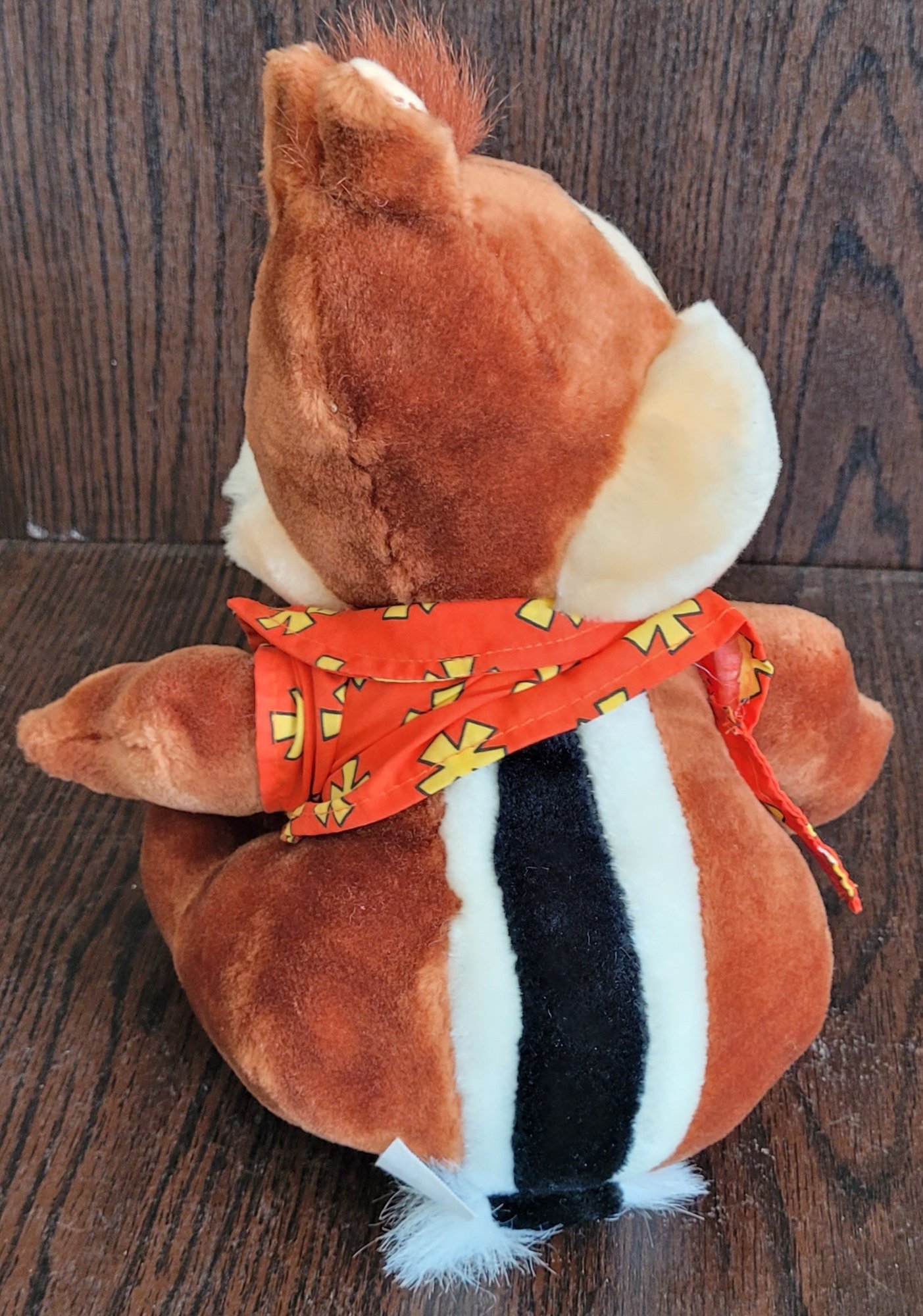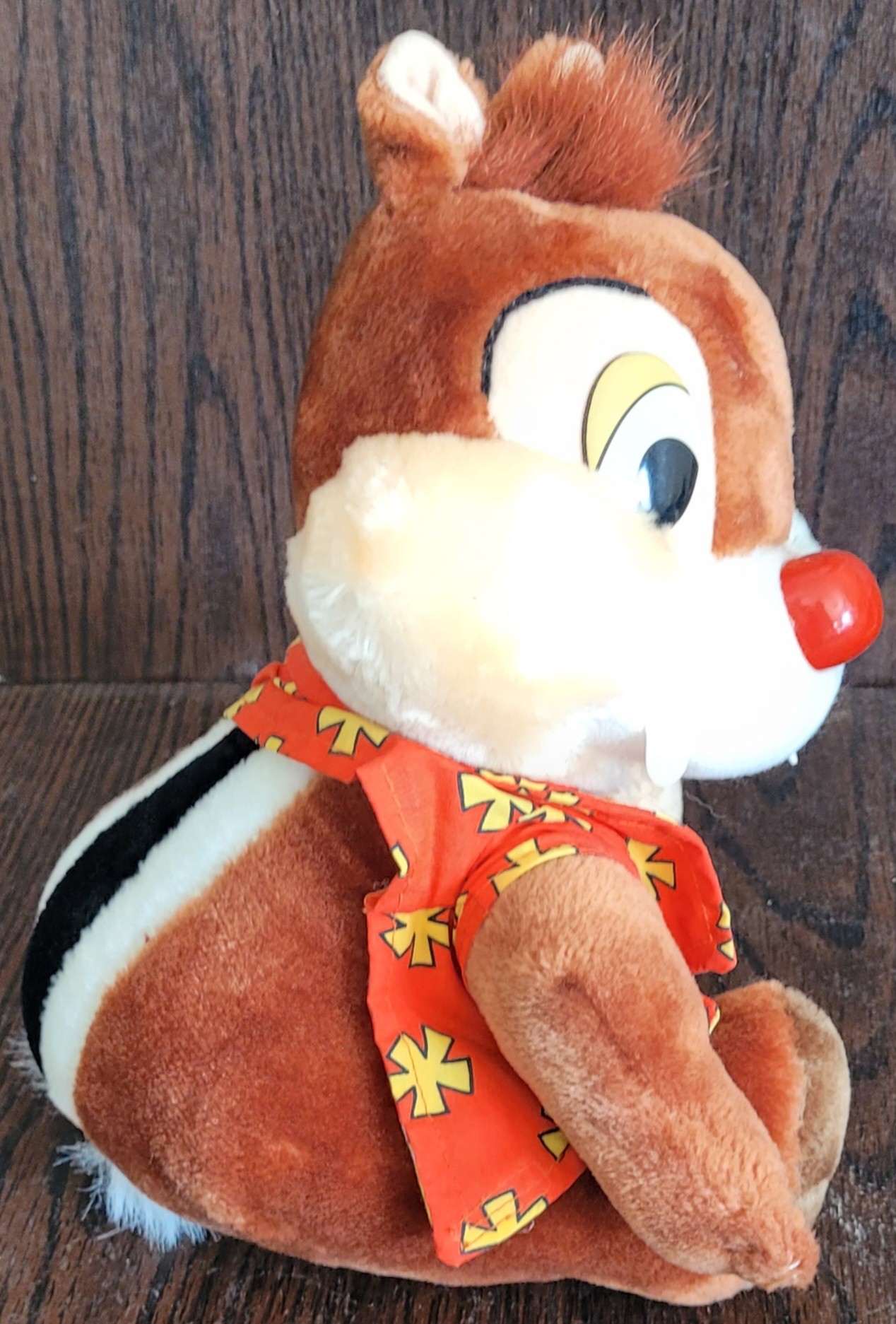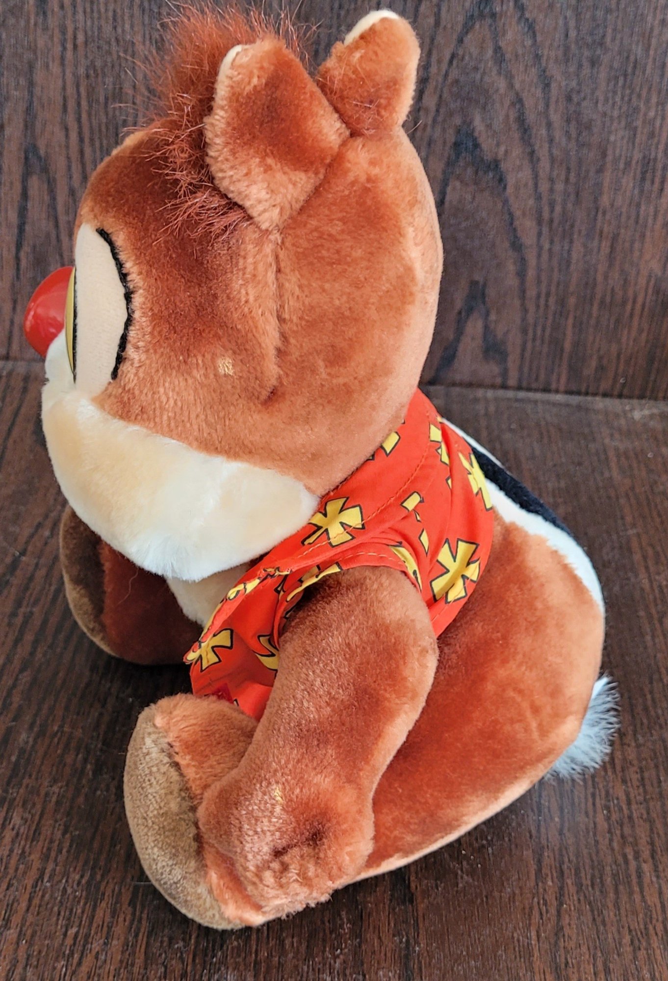 This vintage Disney plush features Dale the chipmunk dressed in a Hawaiian floral shirt, adding a touch of tropical charm to your collection. The plush was made in Korea and is part of the Disney franchise, making it a must-have for any Disneyana collector. It measures 10 inches and is in great condition, ready to be displayed or played with.
