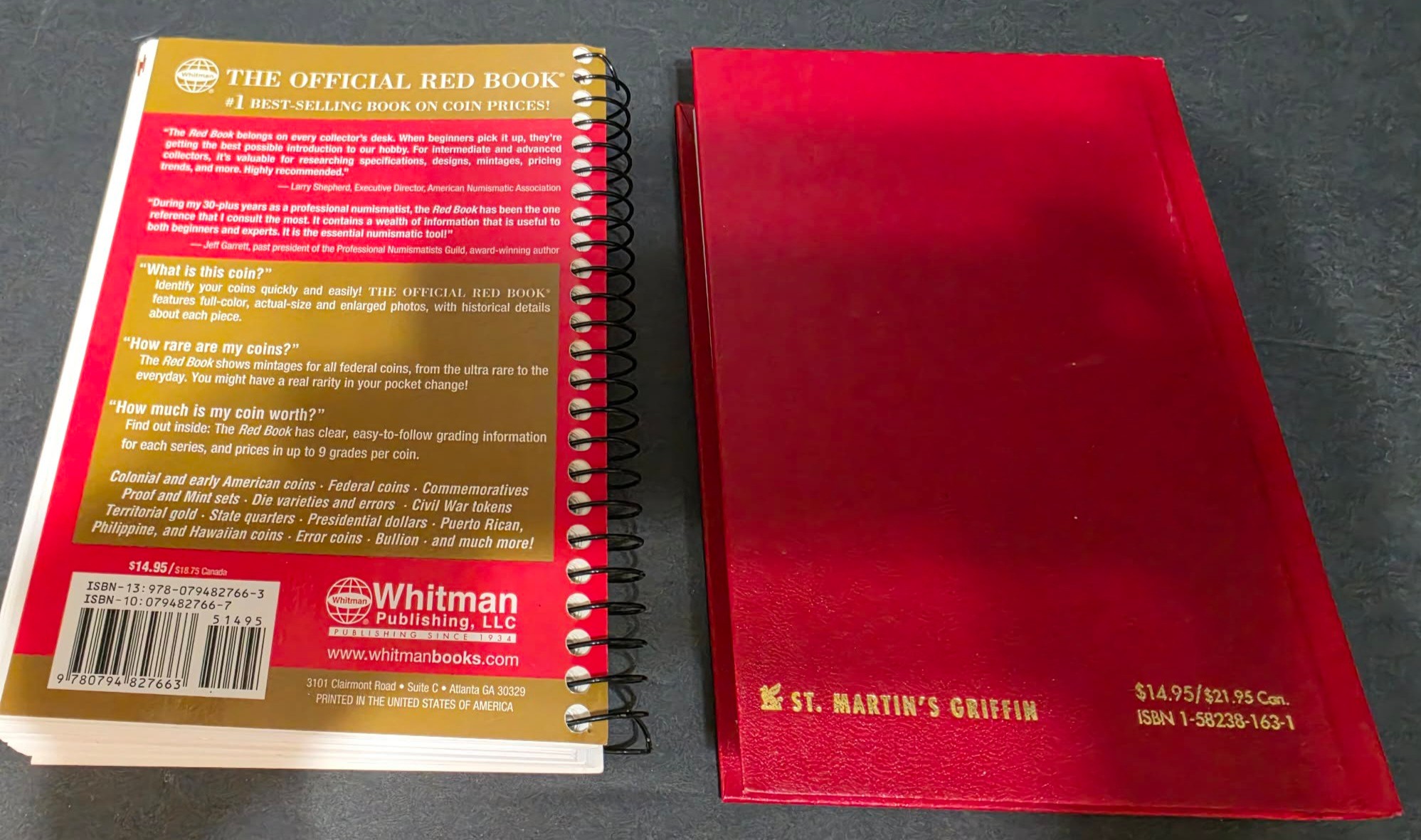 Vintage editions of A Guide Book of United States Coins, commonly known as the "Red Book".