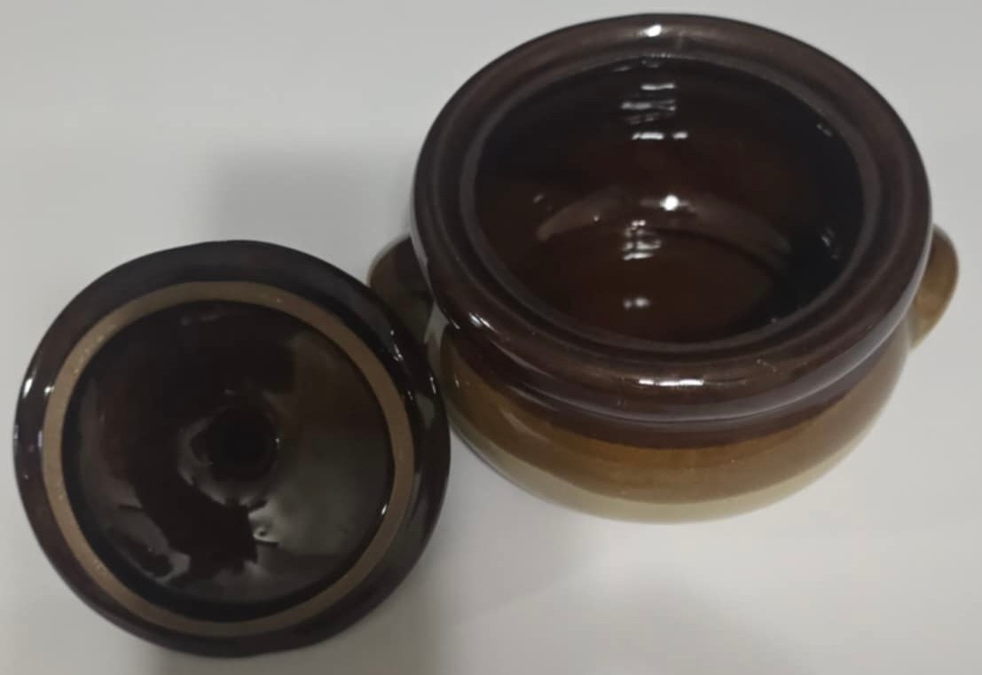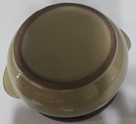 The holder inside it not attached. Mustard jar is faded. Measures 10 x 6 x 2, jars 3 x 3. Bean pot measures 6 x 4.5 and utensils holder measures 5.5 x 4. No cracks or chips noted.
