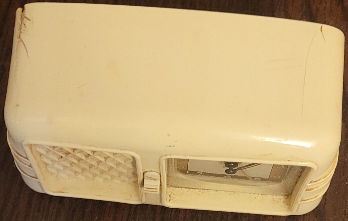 This clock has been tested and does work. It does have some cracks in it. See pictures for details.