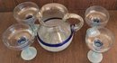 The pitcher measures 9" tall and the glasses measure 6.5" tall by 4.625" in diameter. Very good condition. See pictures for details.