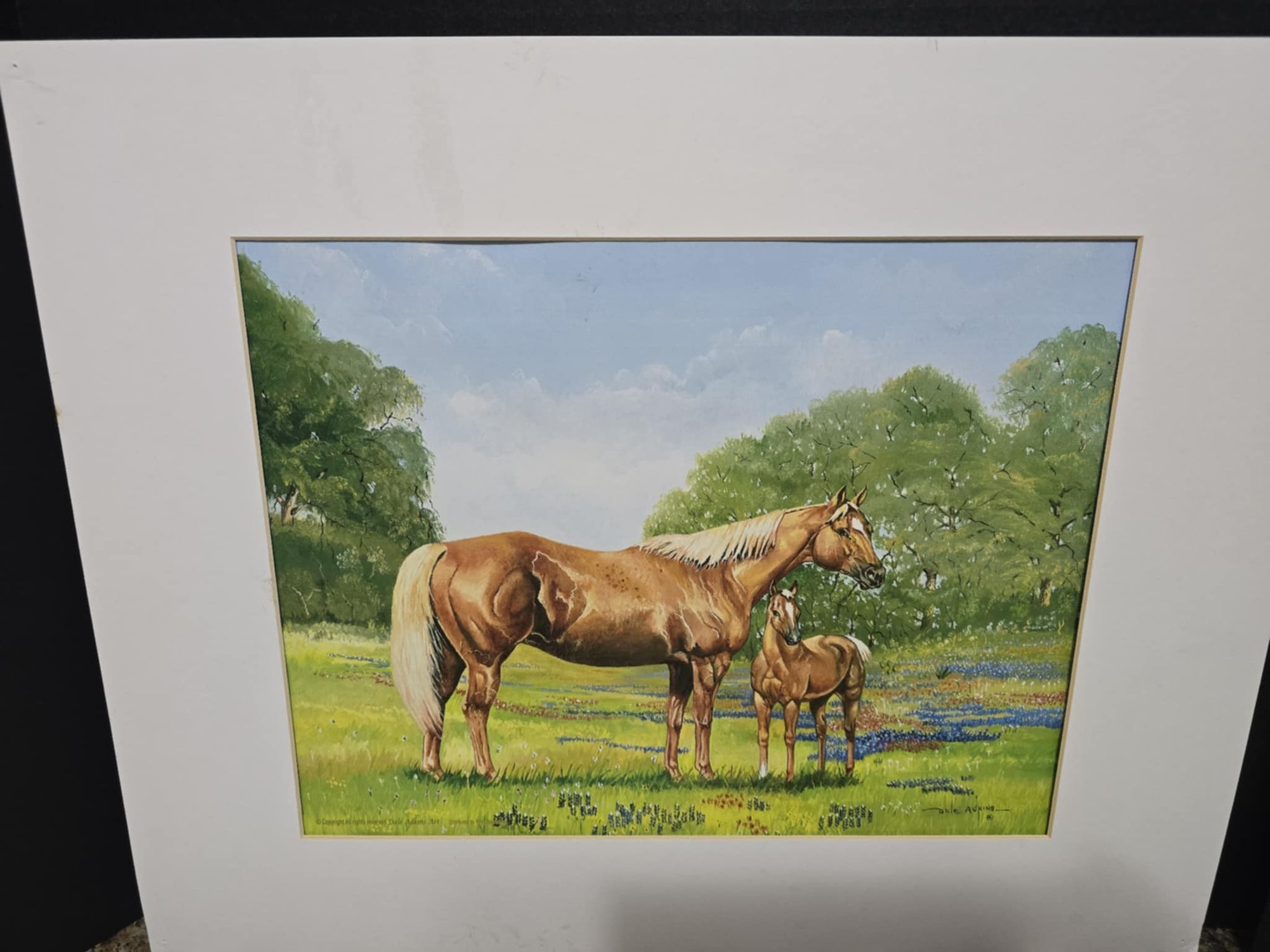 Vintage horse art prints, with mat. artist Dale Adkins. Measures 16 x 20.