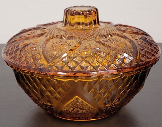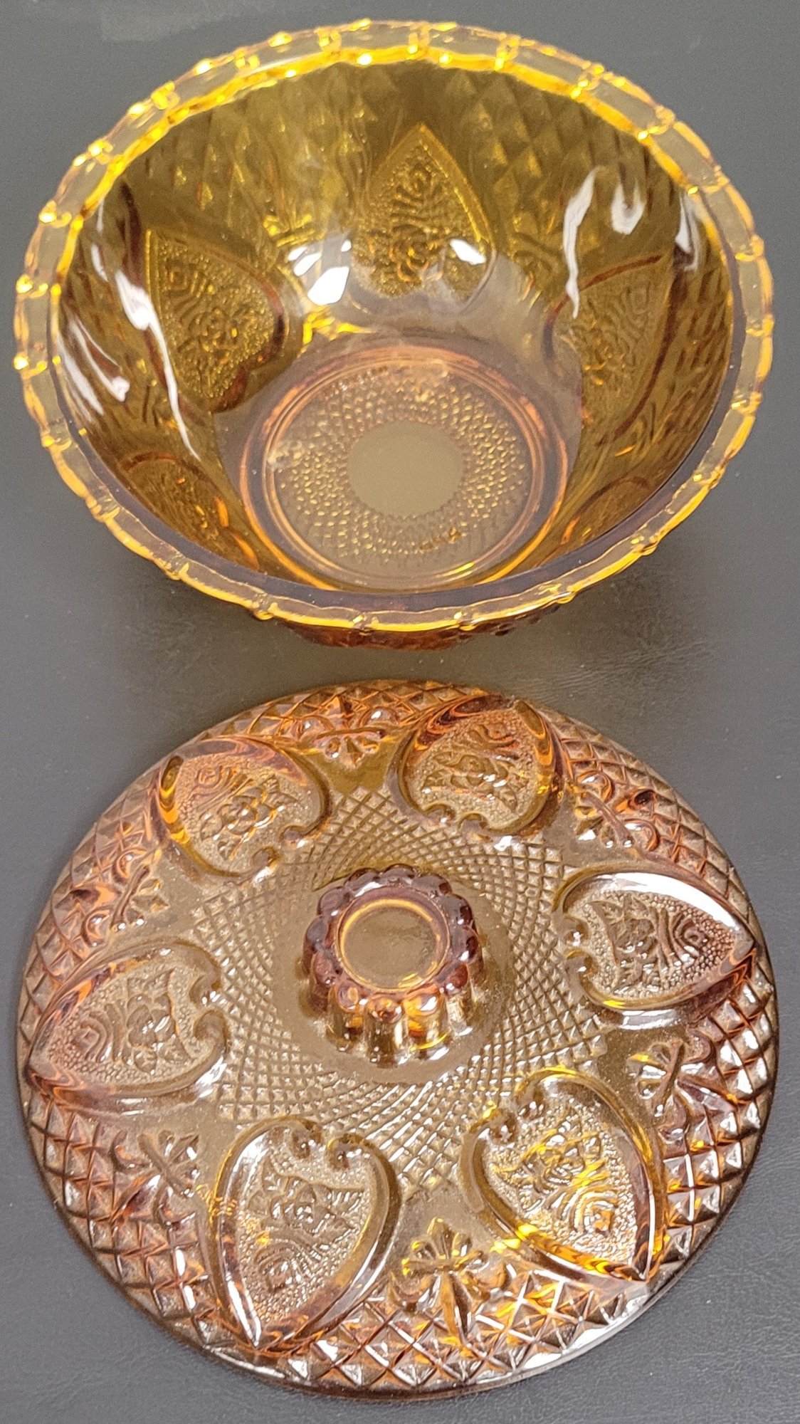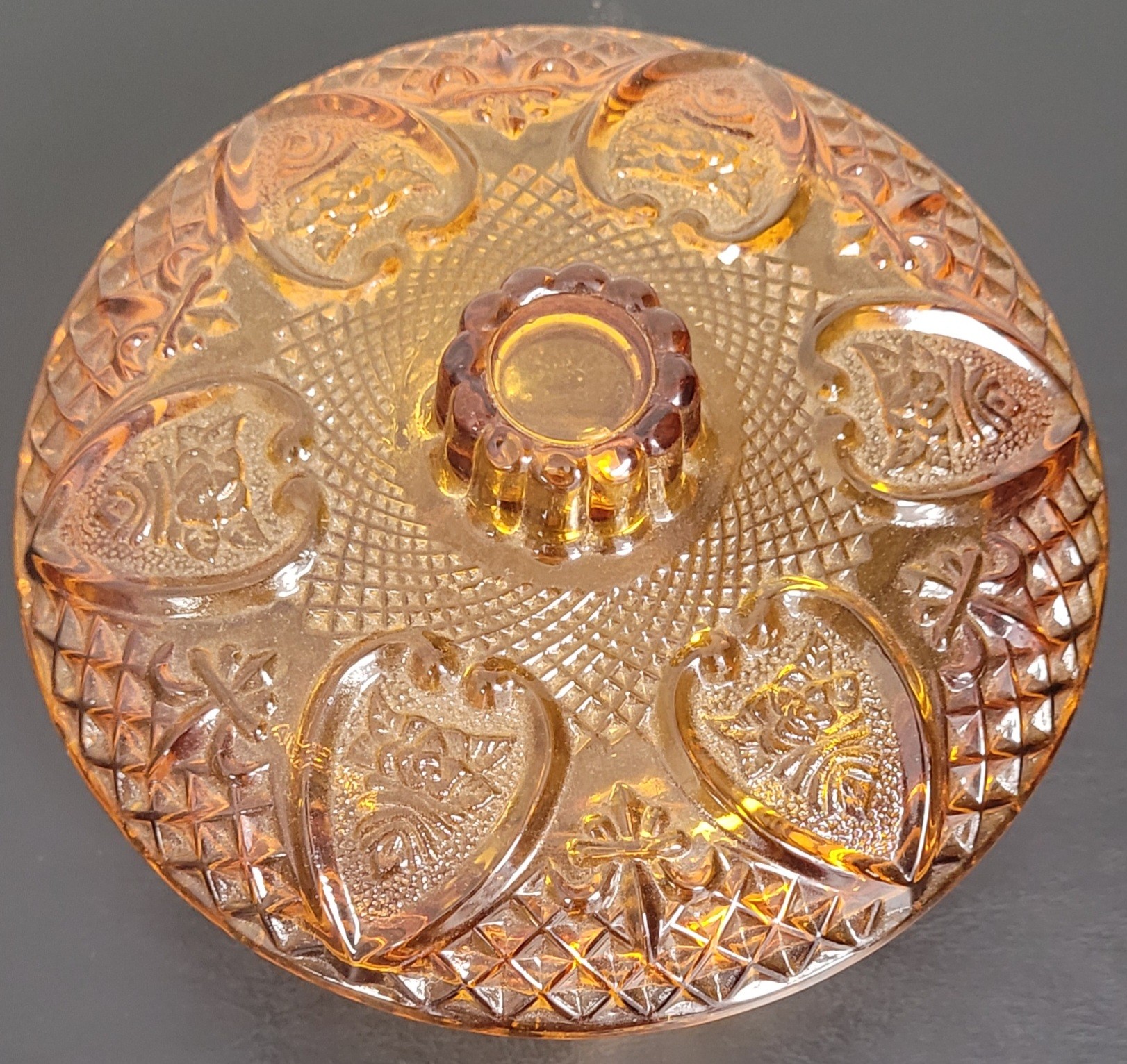 This measures 3.5" tall by 5.125" in diameter. I didn't see any chips or cracks. See pictures for details.