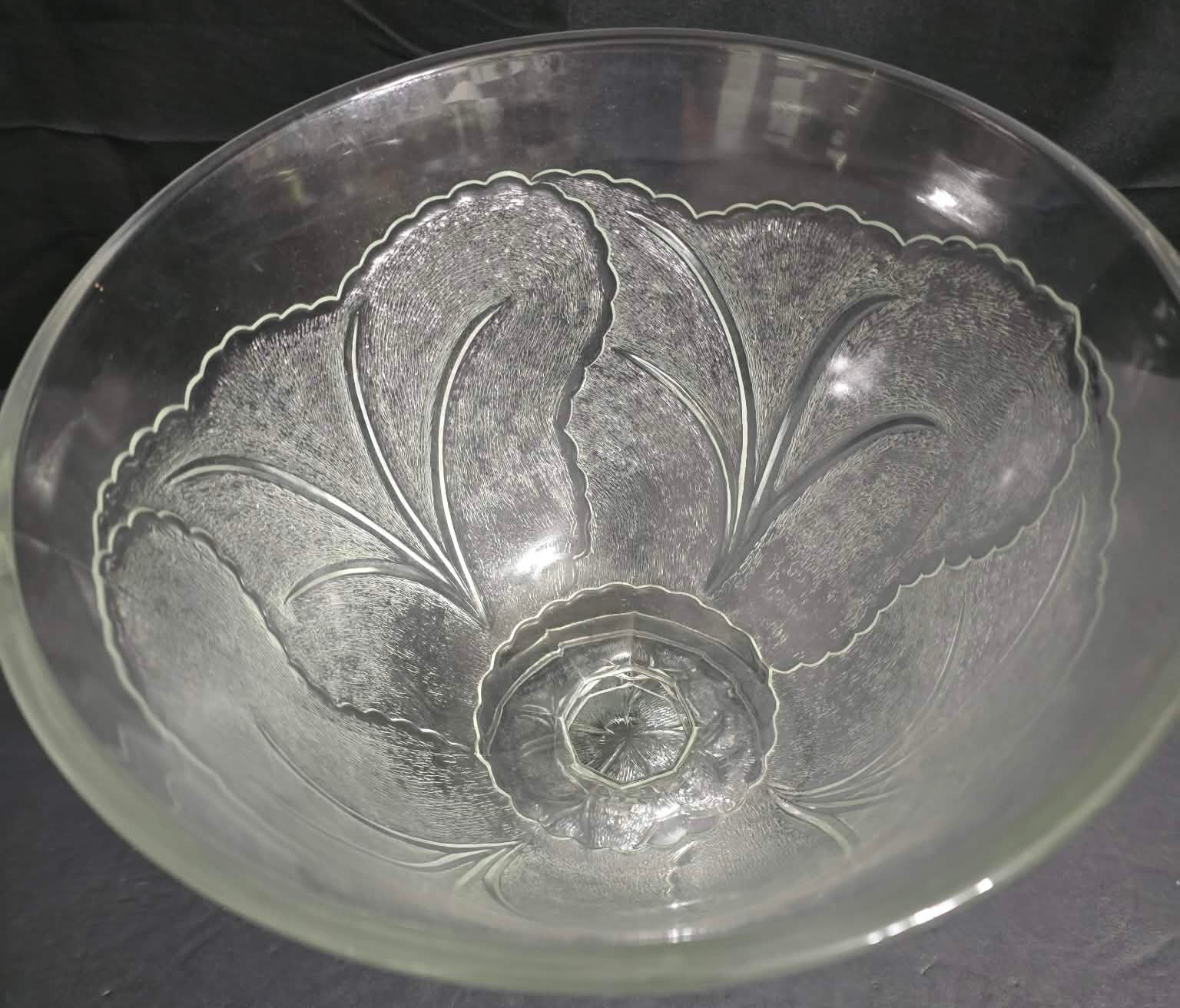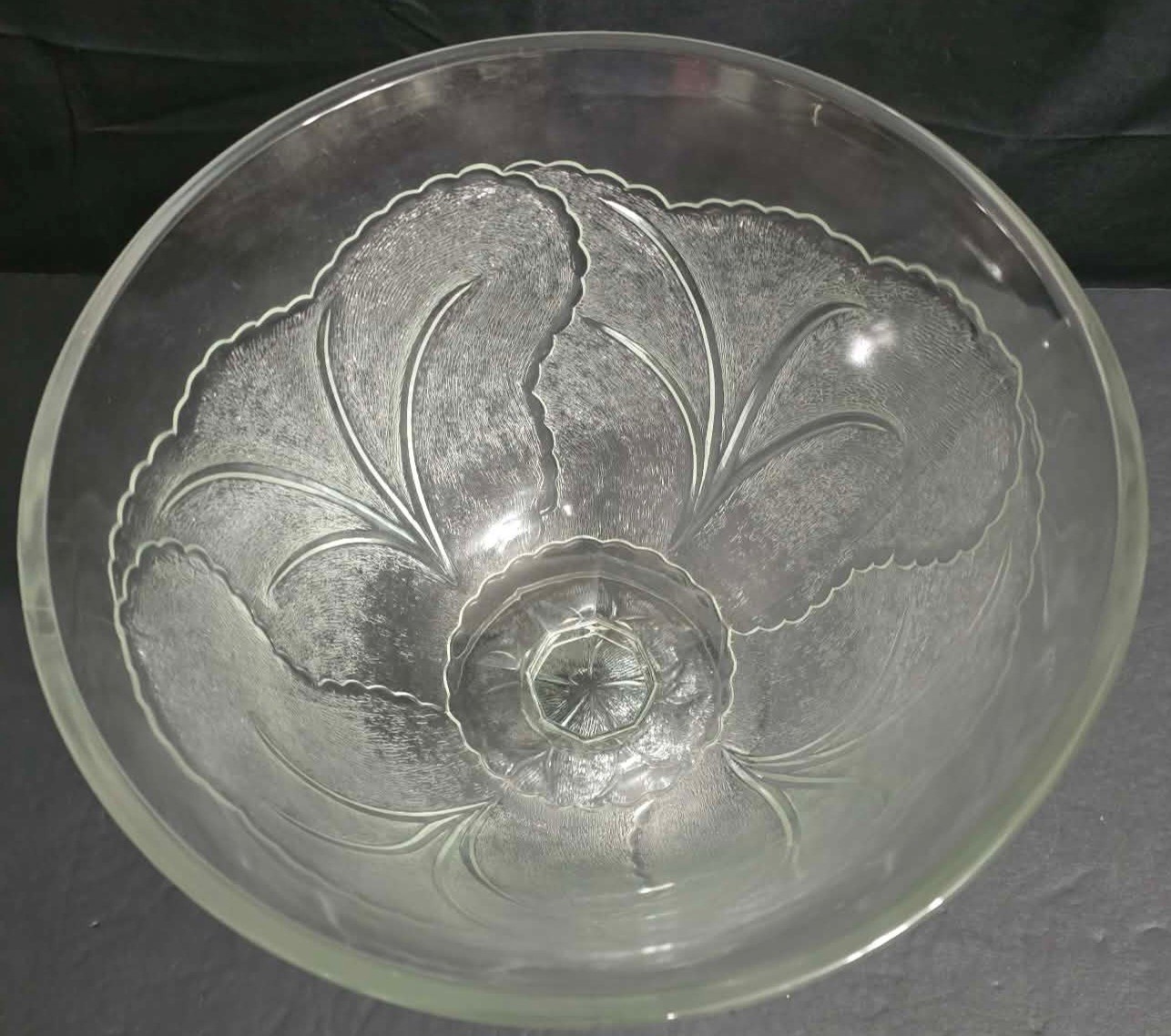 Vintage Indiana Glass pebble leaf punch bowl. No cracks or chips noted.