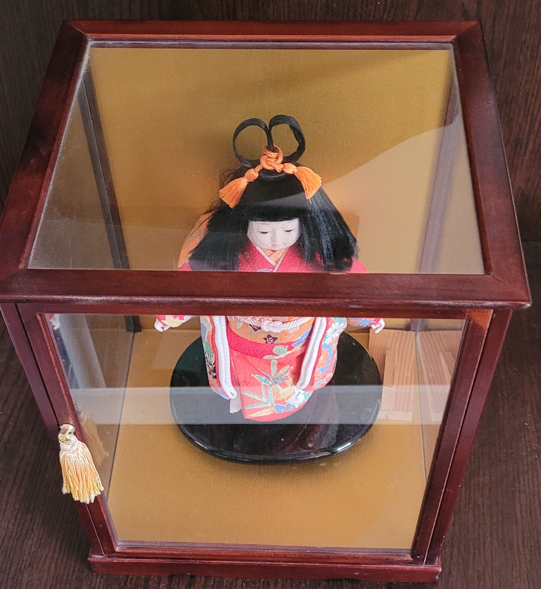 The doll measures 11" tall and the case measures 13" tall by 10.75" long by 9.75" wide. See pictures for details.