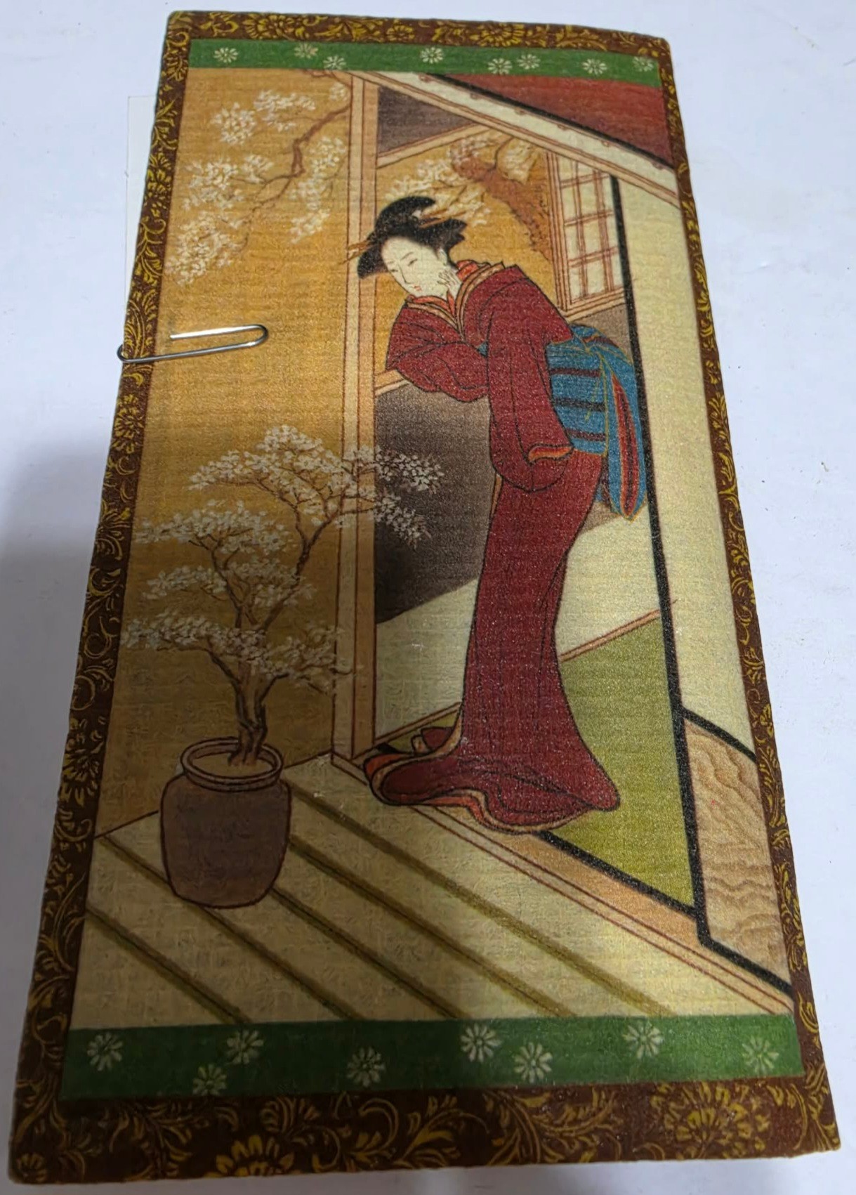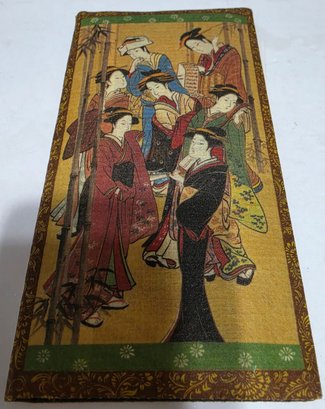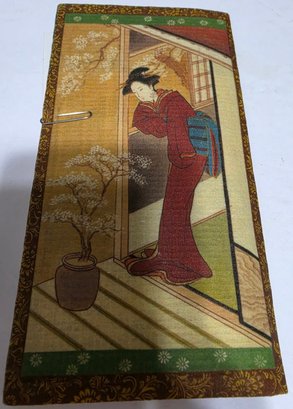 Vintage Japanese rice paper wallet and checkbook cover features traditional Geisha art and is crafted from heavy-duty rice paper.