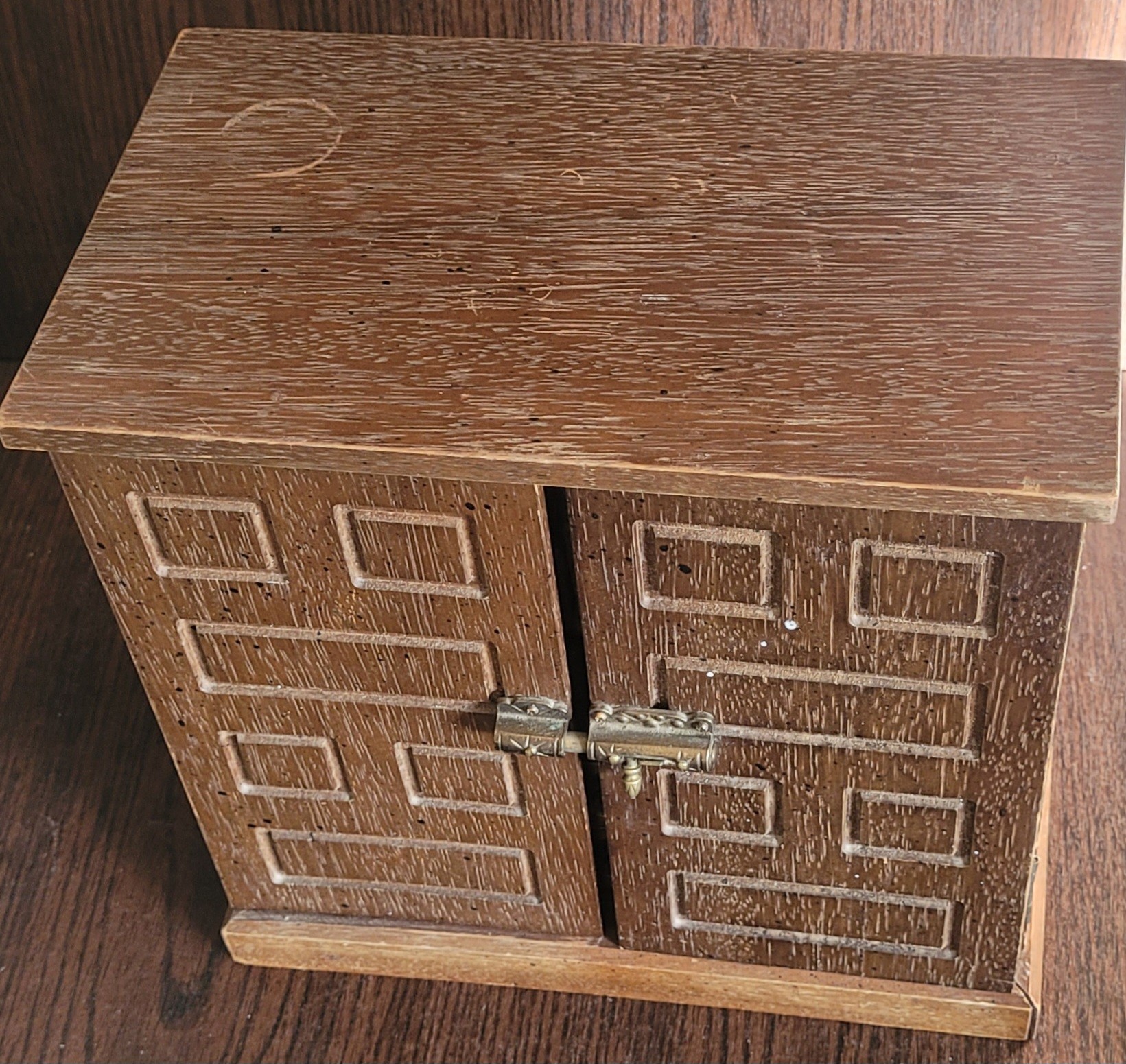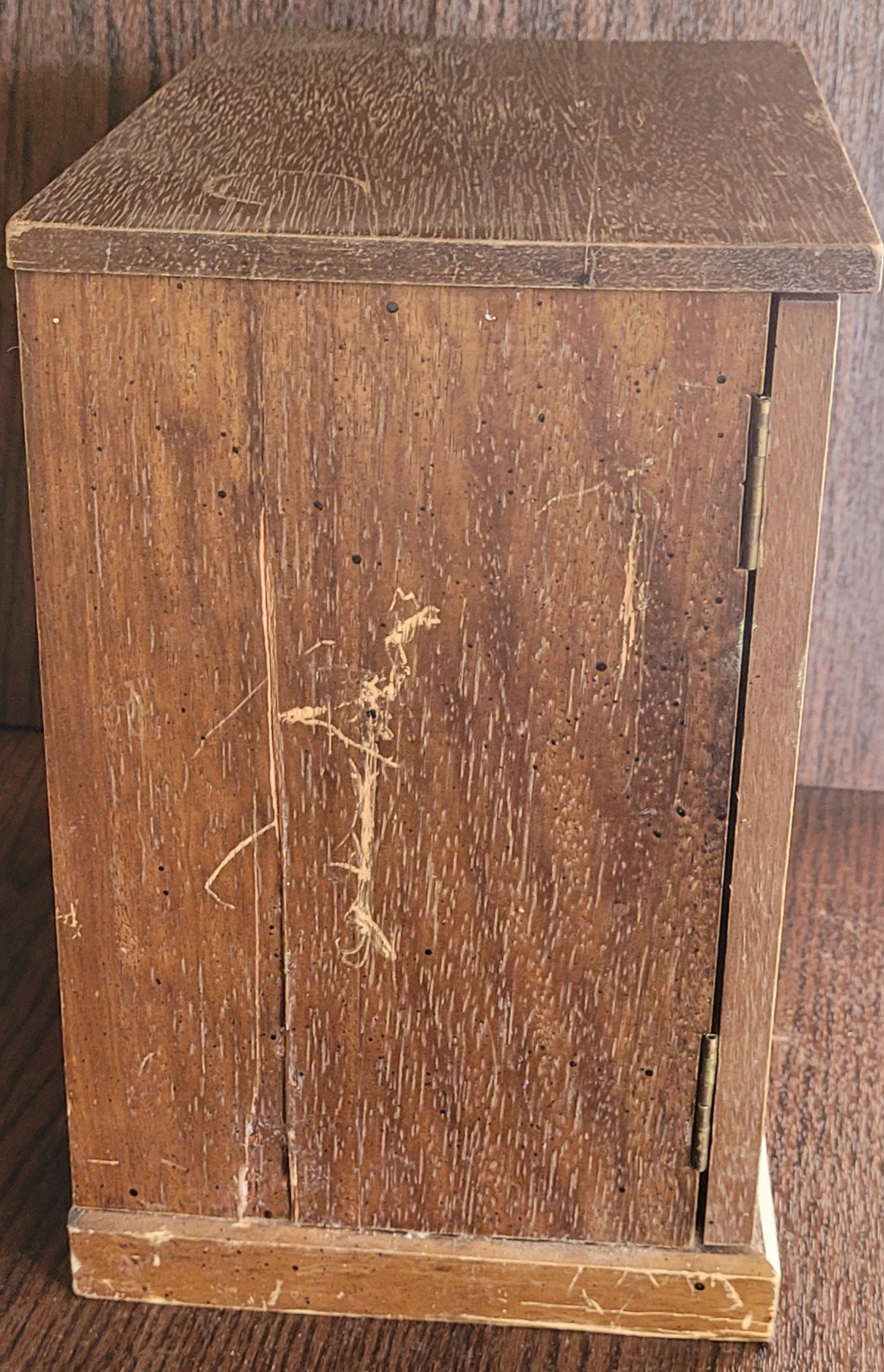 This measures 10.75" long by 10.25" tall by 6.5" wide. The one side is cracked. See pictures for details.