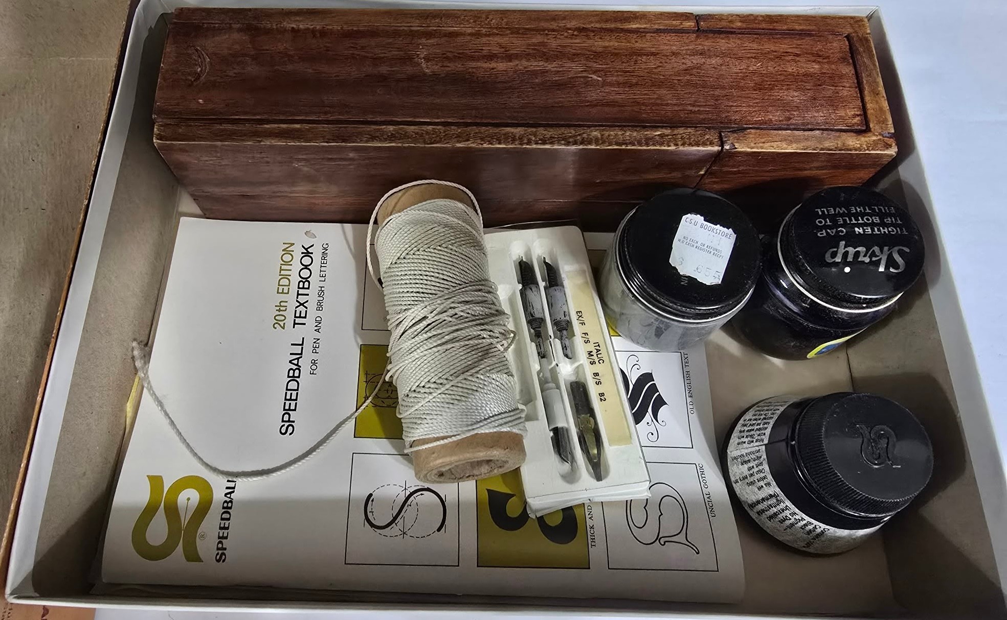 Vintage Ken Brown Calligraphy Kit by Hunt Speedball. Comes as pictured only. Can't guarantee the quality of bottles of ink and charcoal.