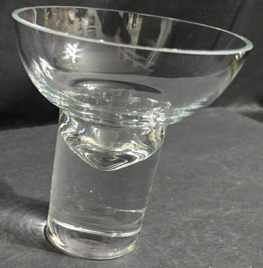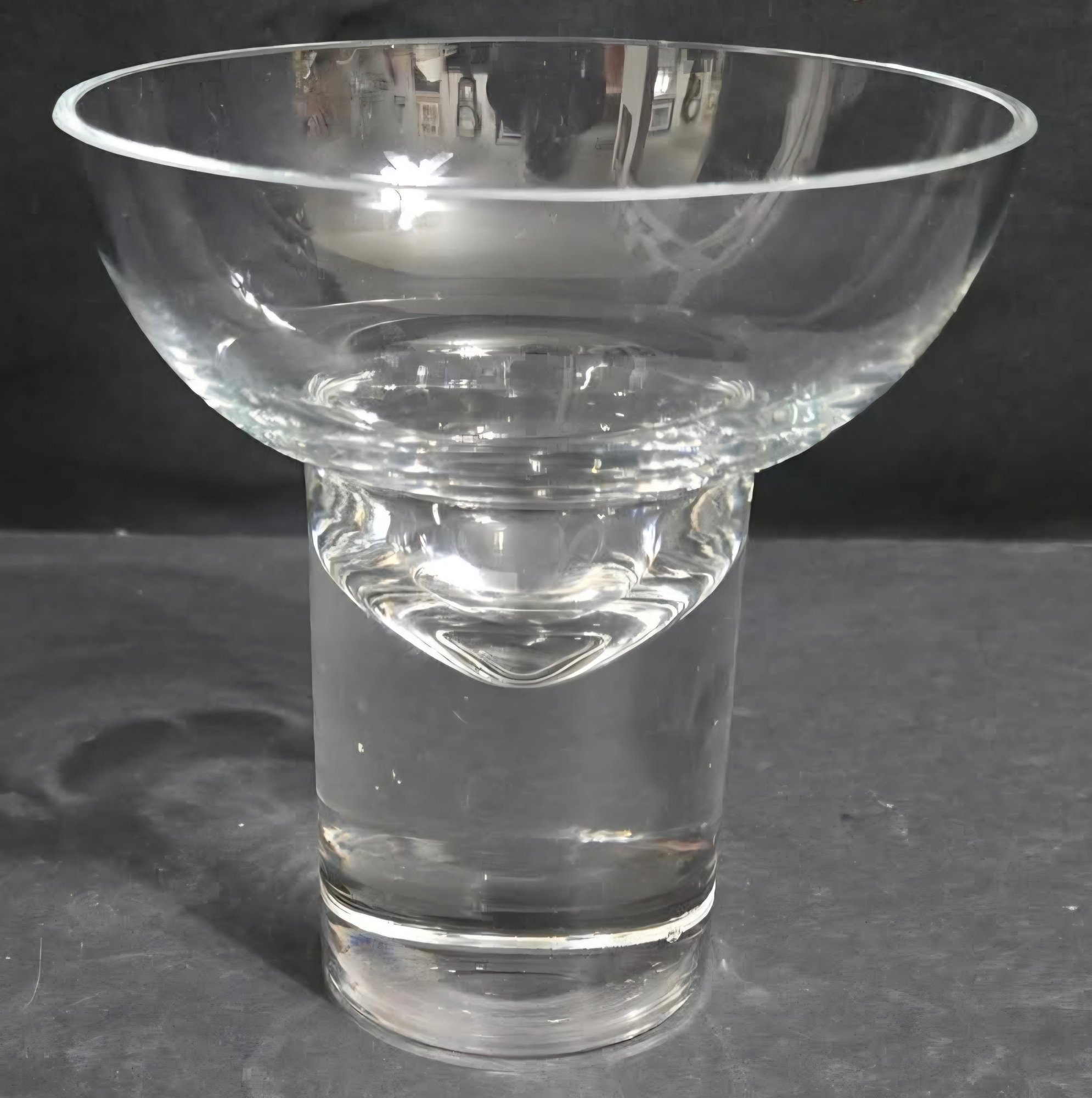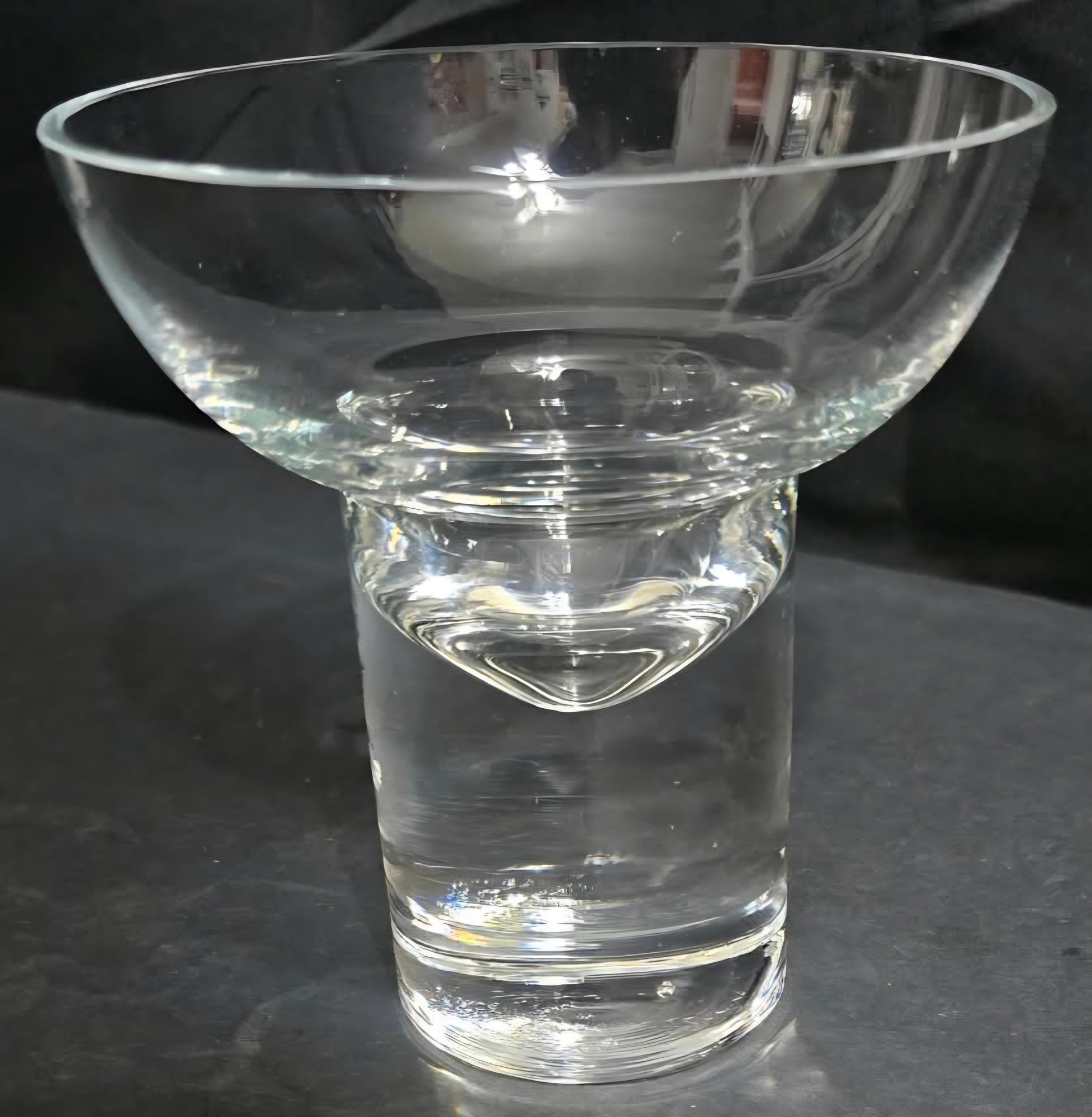 Vintage Kronos Poland crystal art glass candle holder or rose bowl. No cracks or chips noted.