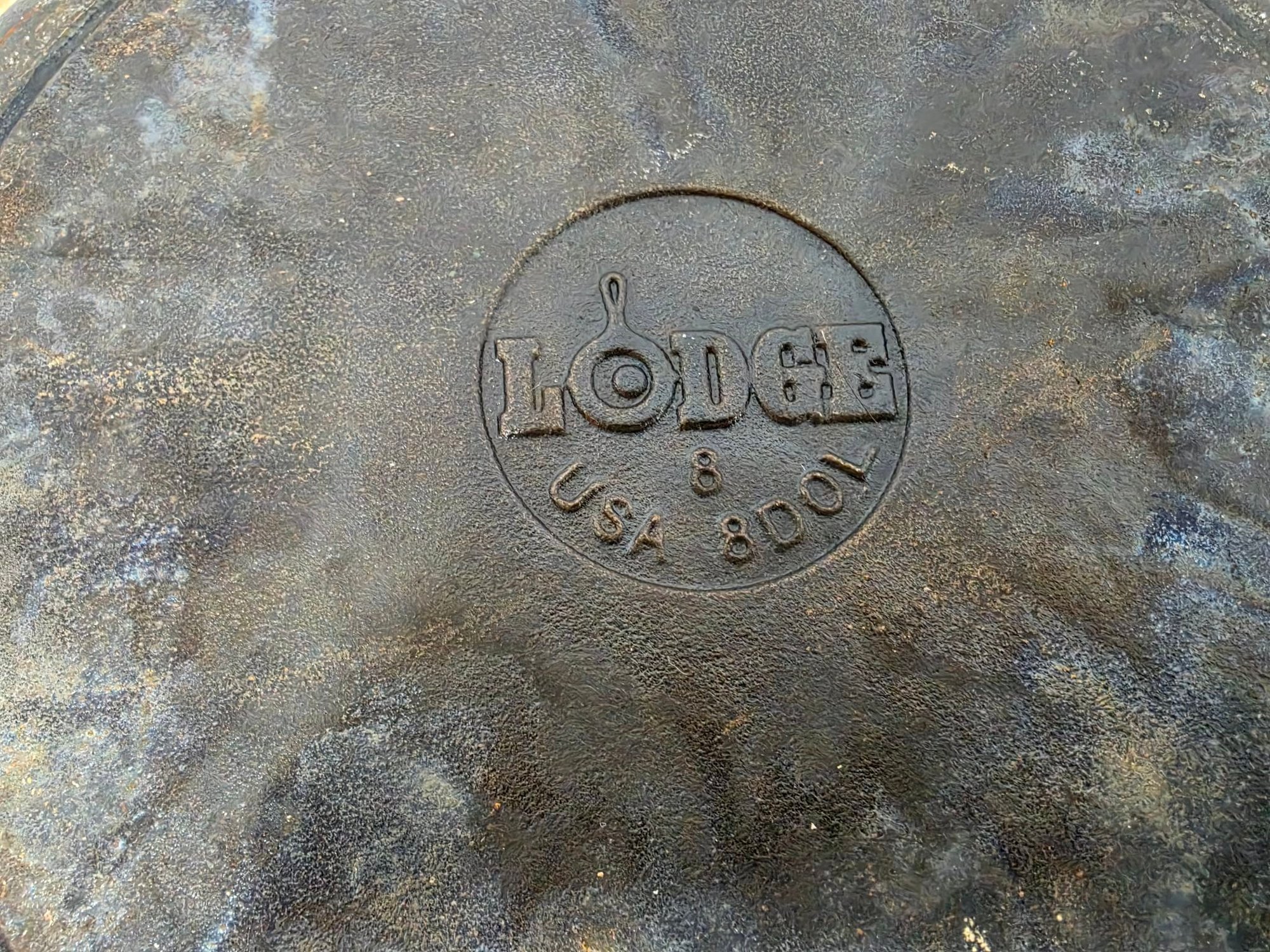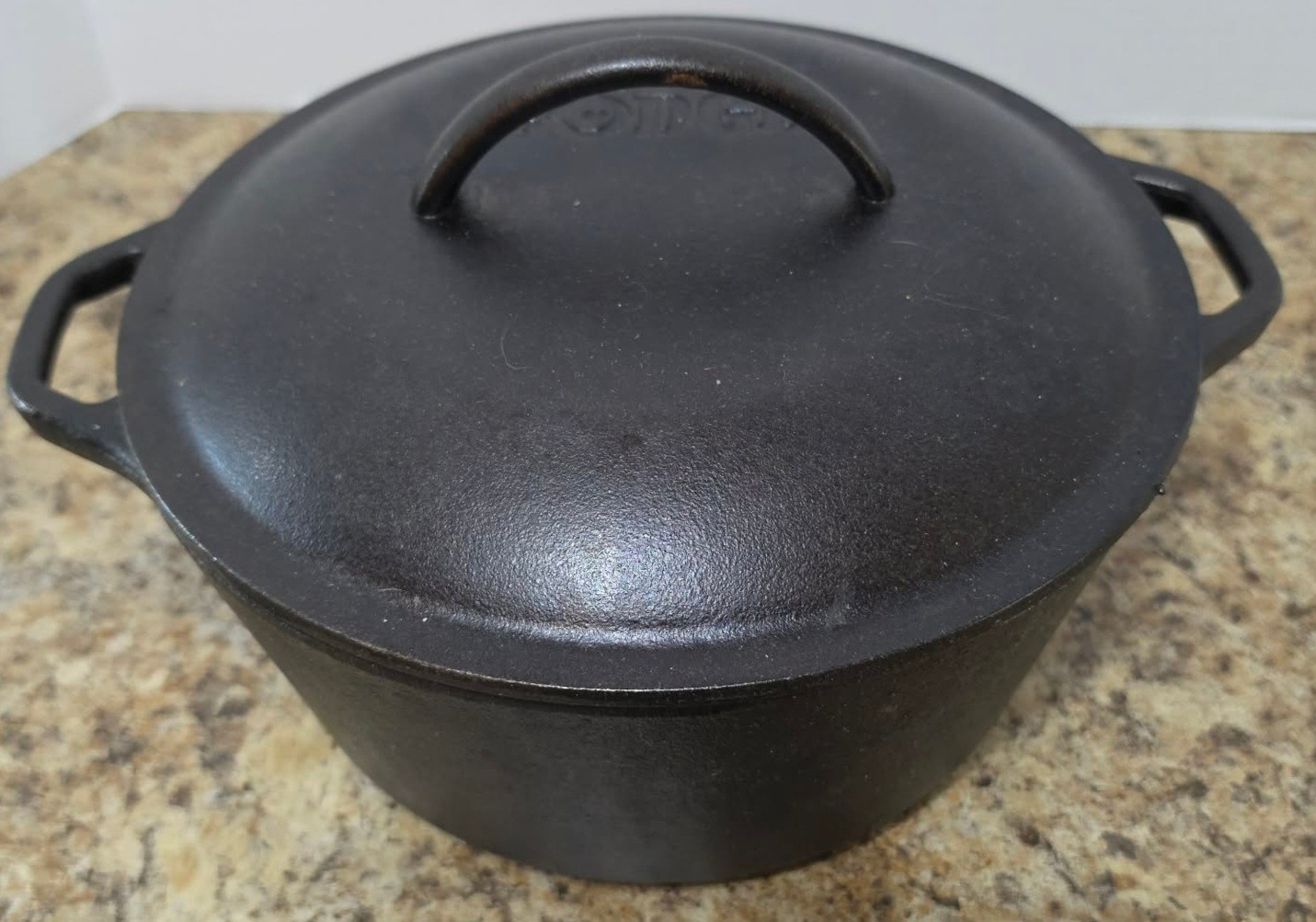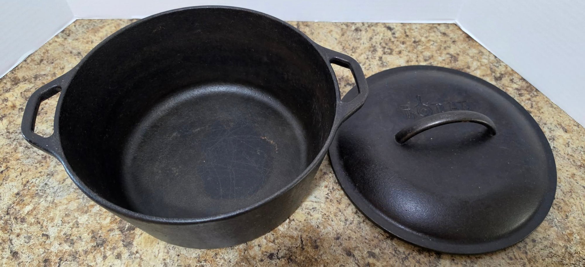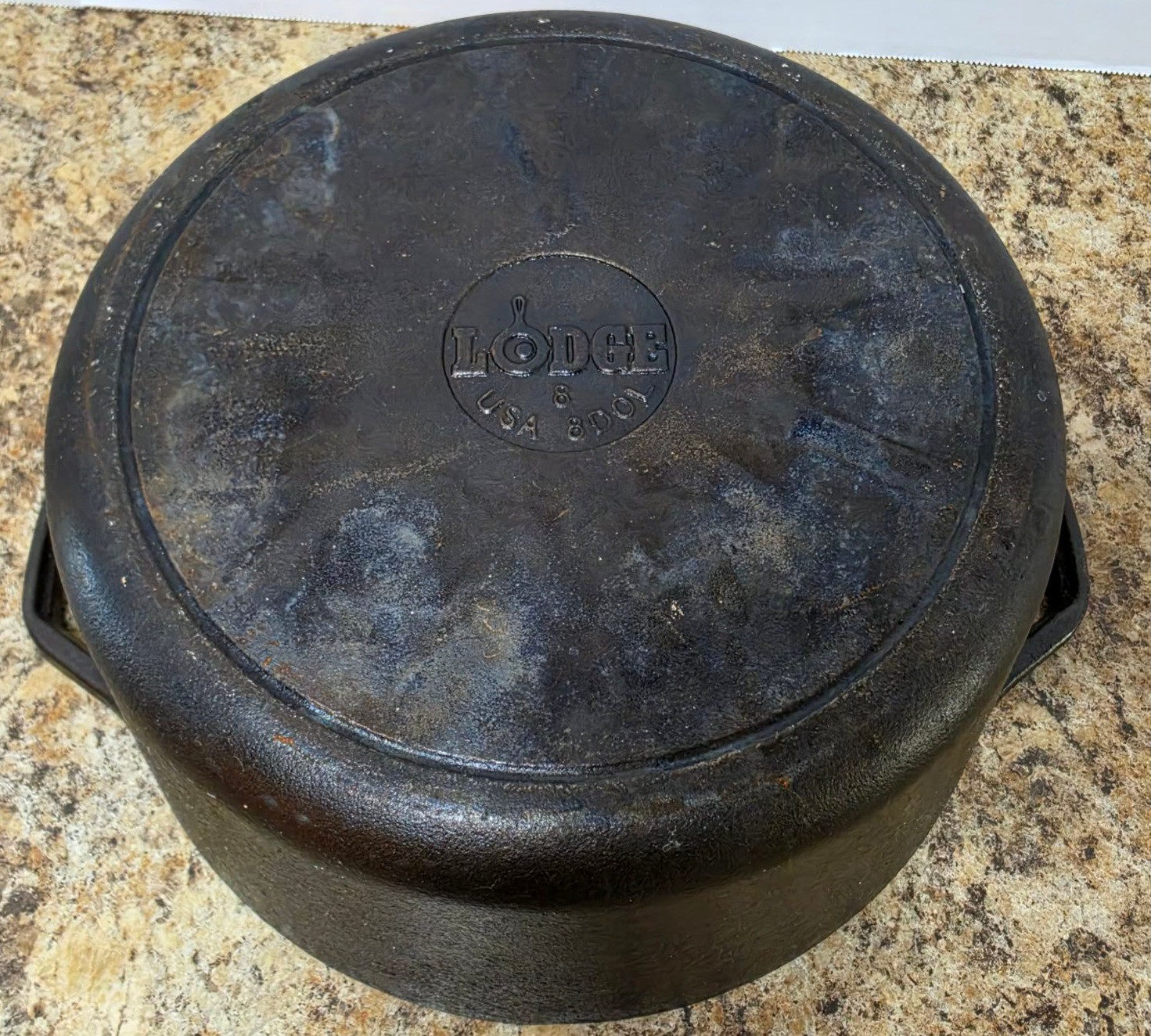 Vintage Lodge cast iron Dutch oven with a matching lid #8. Measures 12.5 x 10.25 x 4.5 not adding lid.