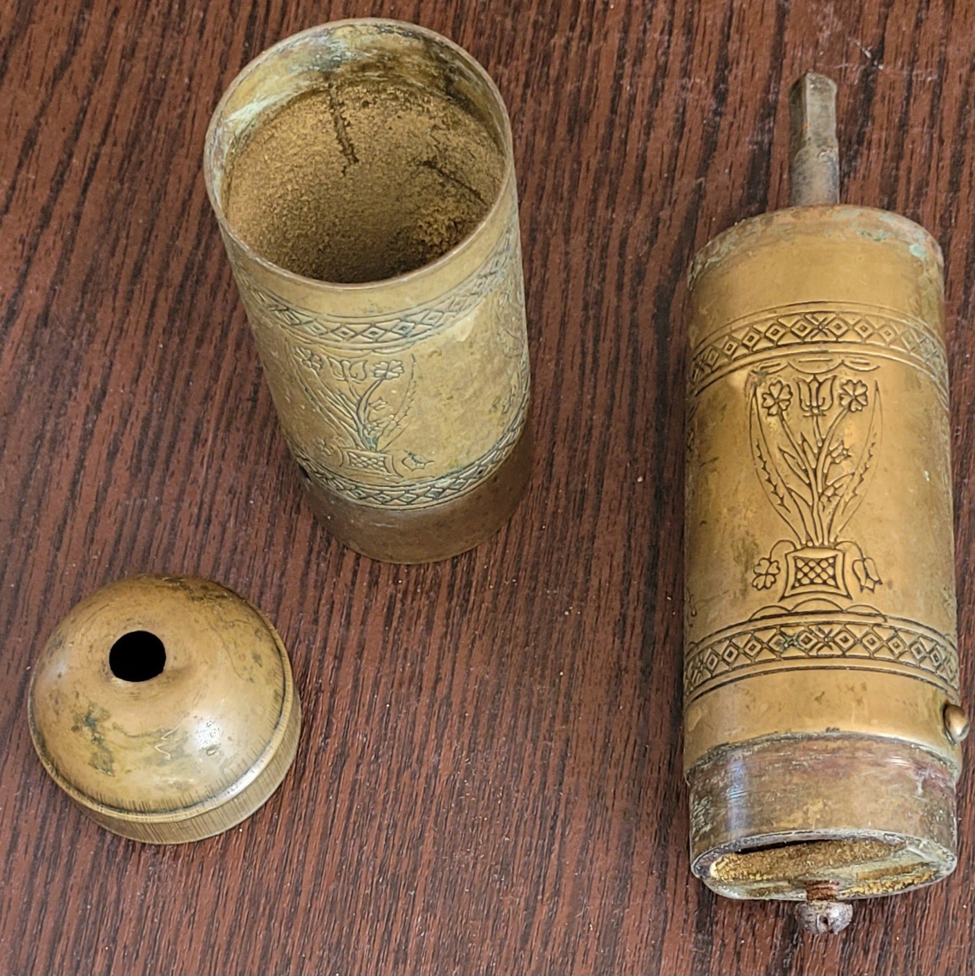 This measure 10.5" tall. It doesn't have the handle with it. Needs to be cleaned. See pictures for details.