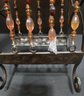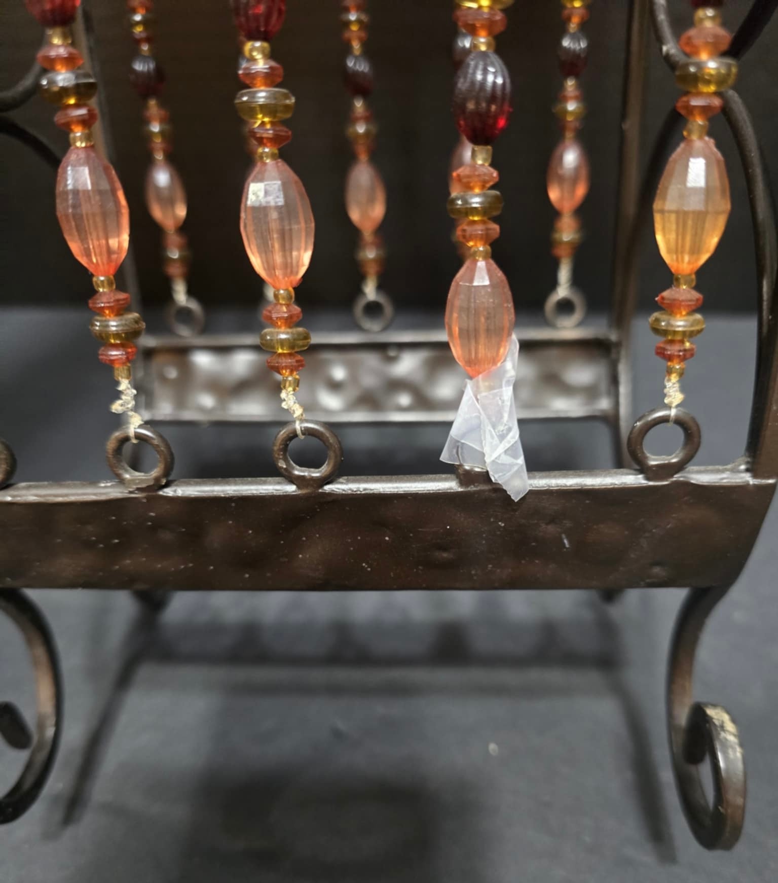 Vintage Metal Wine Rack with Salmon Beads - Holds 3 Bottles. The beads on one strand are coming off. Measures 6 x 4.5 x 17.
