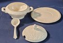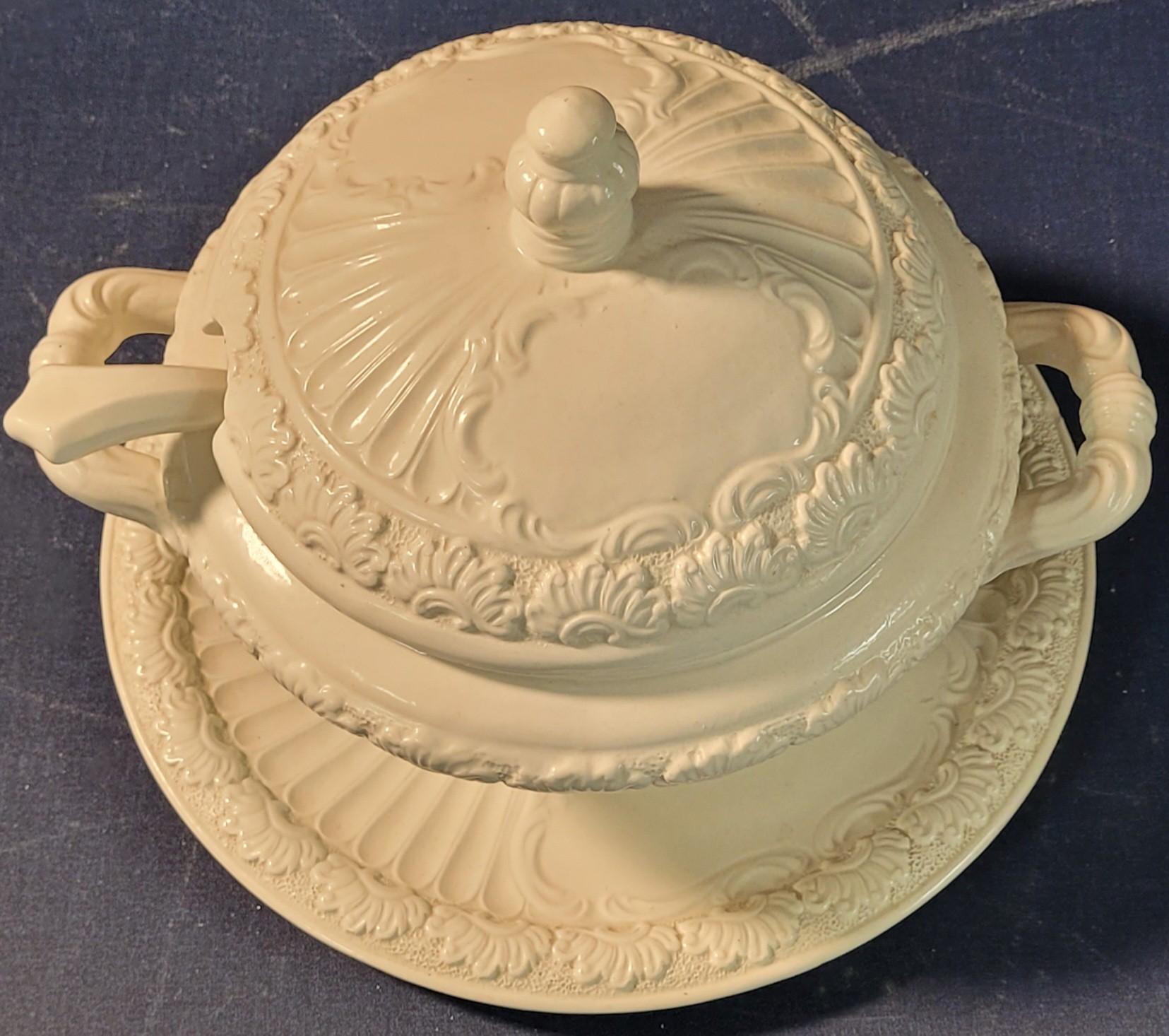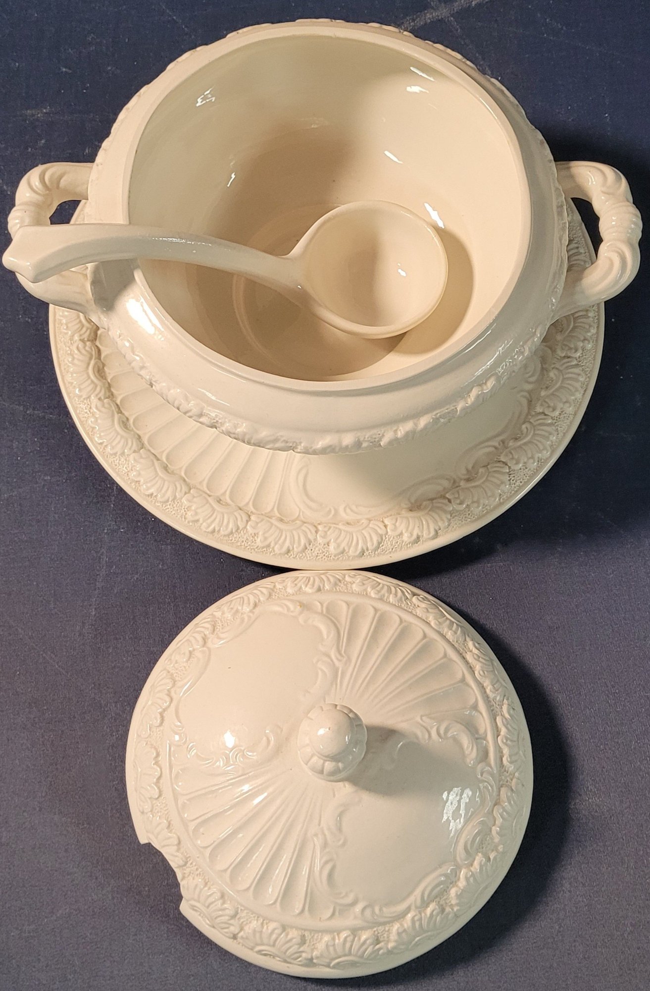 This measures 8" tall by 9.5" in diameter and the platter measures 11.75" in diameter. See pictures for details.