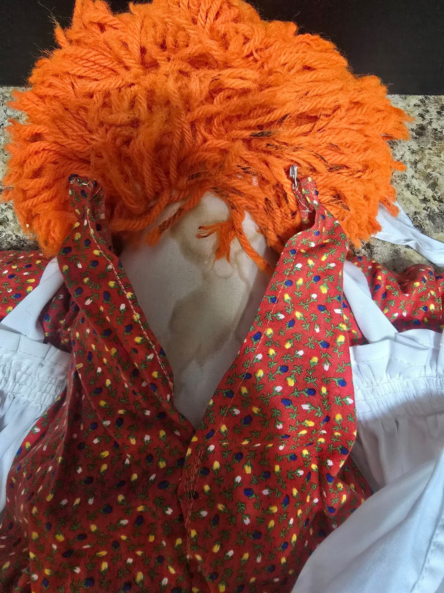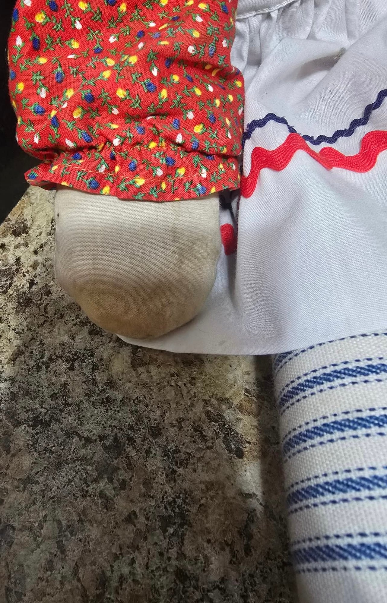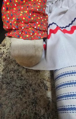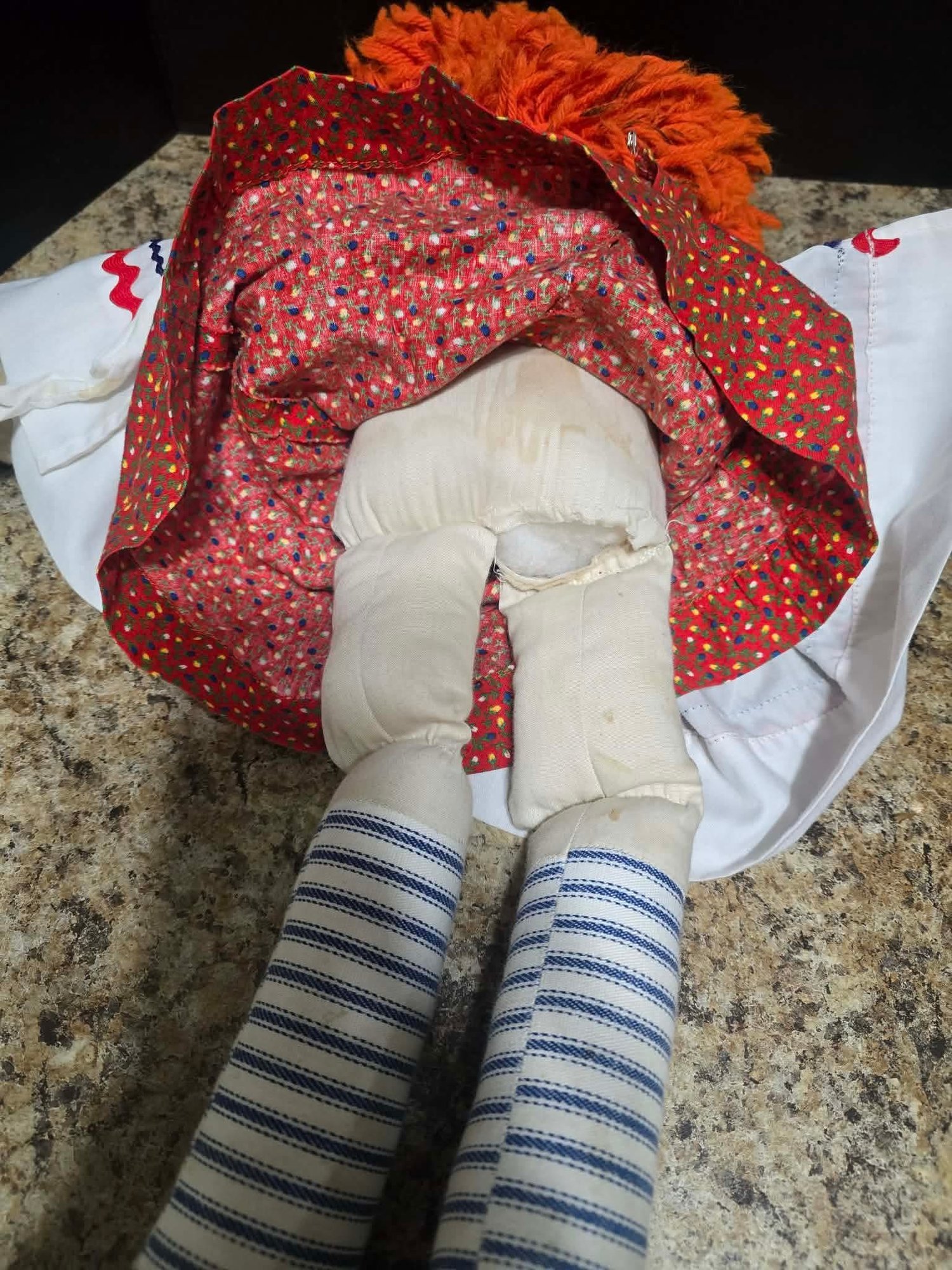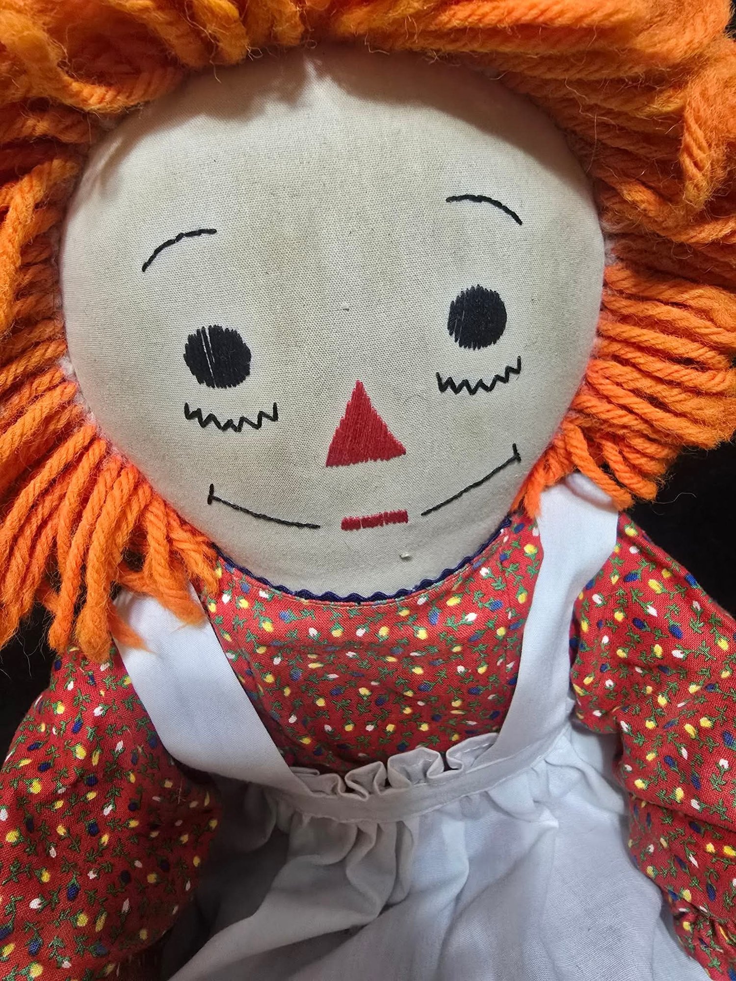 Vintage Raggedy Ann doll. Needs cleaned and leg sewn. Measures 19"h.