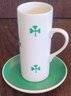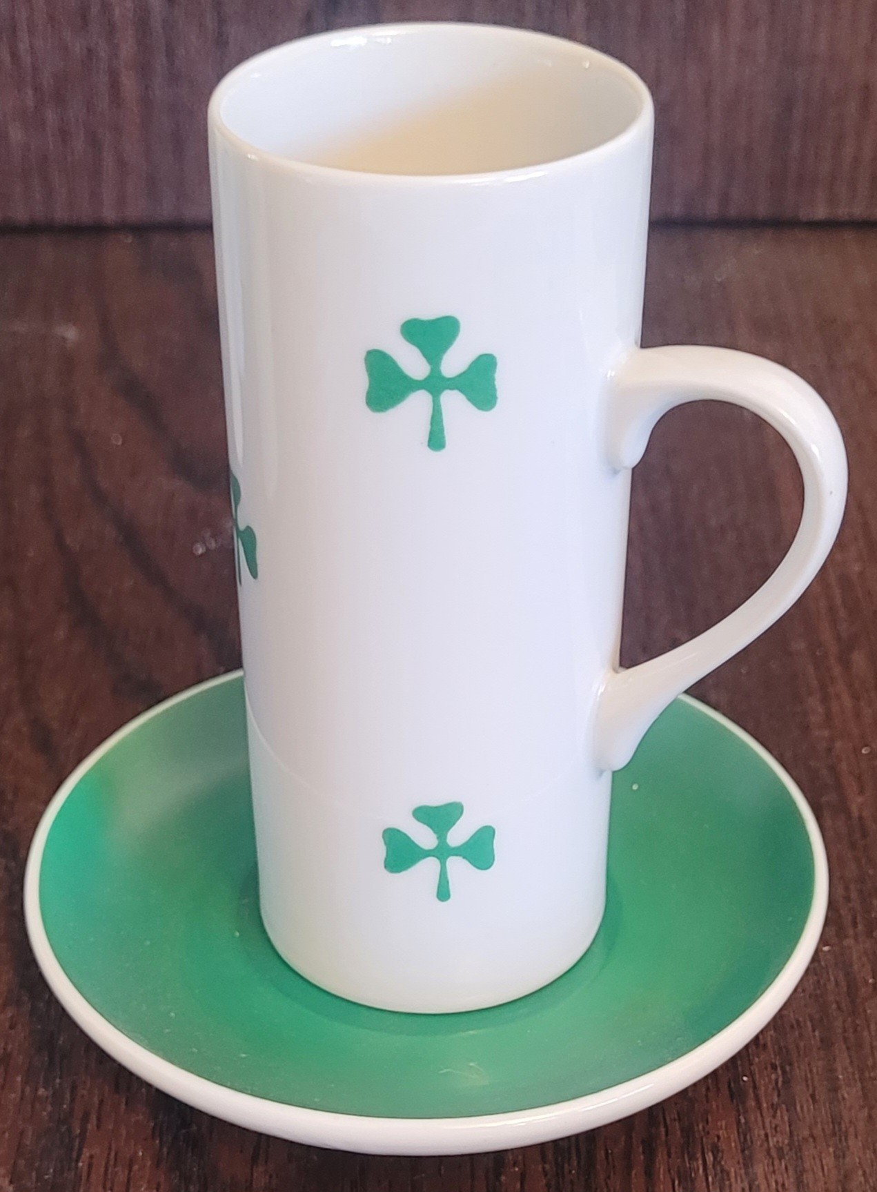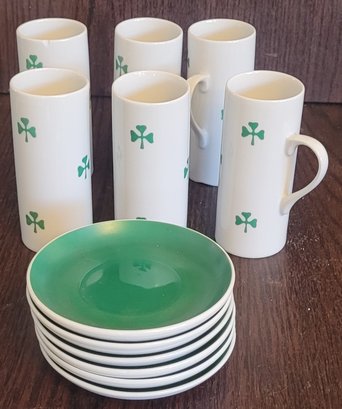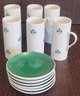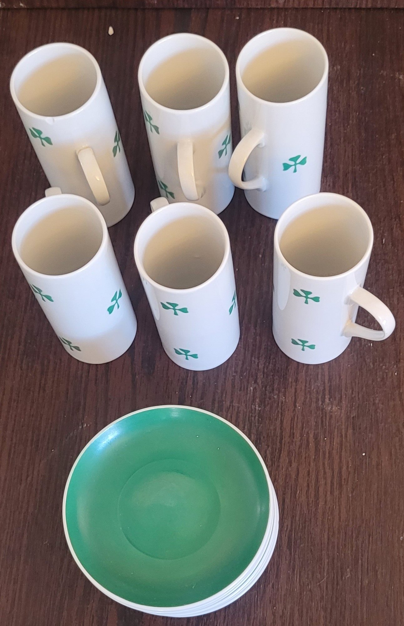 The saucers measure 4" in diameter and the cups measure 4.5" tall. There is a cup that the handle has been repaired and there is a chip on the bottom of a cup. See pictures for details.