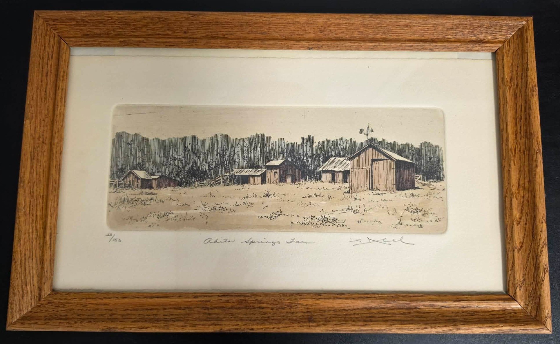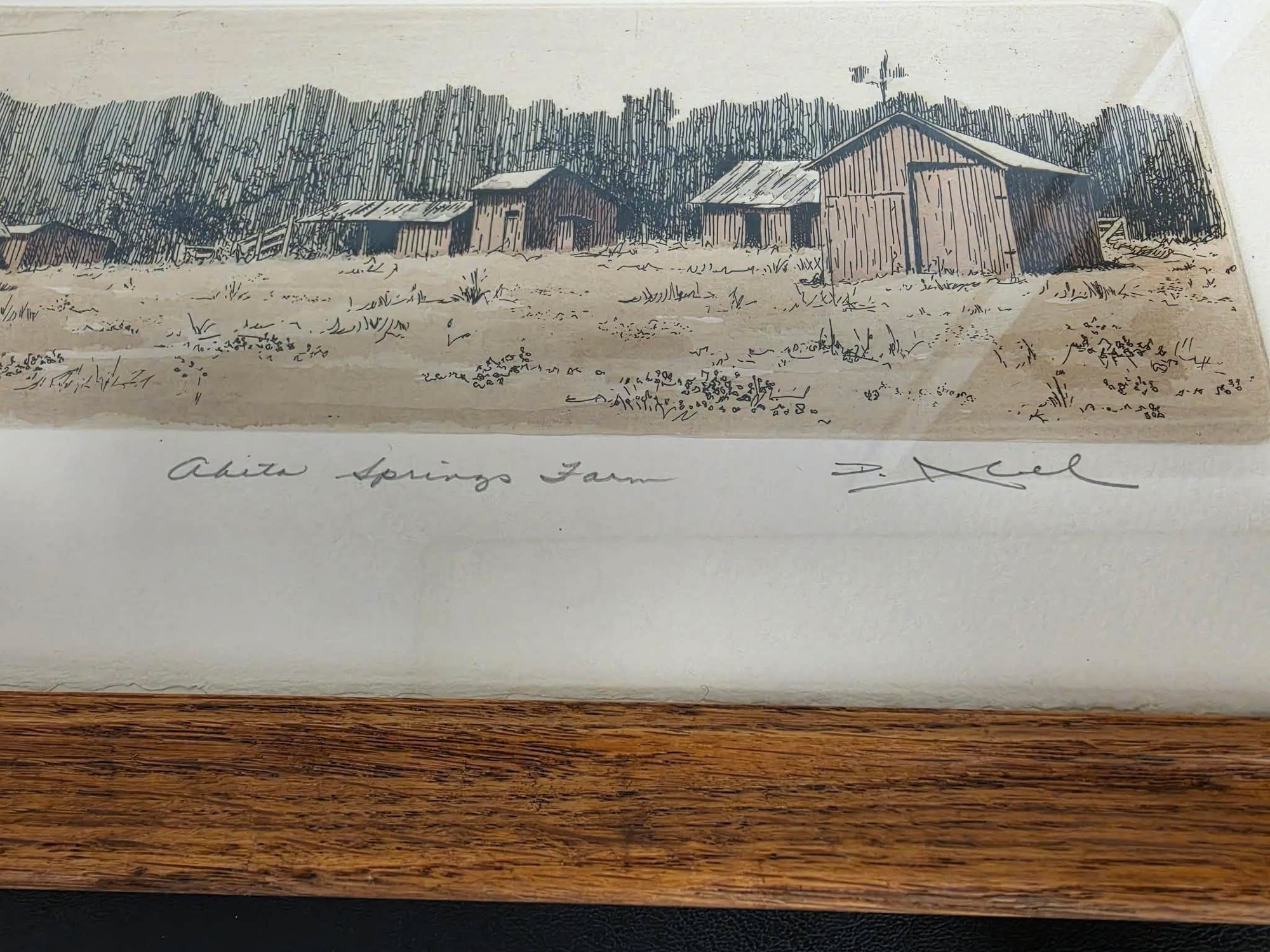 Vintage, signed framed art print titled "Abita Springs Farm". Measures 15.75 x 9.5.