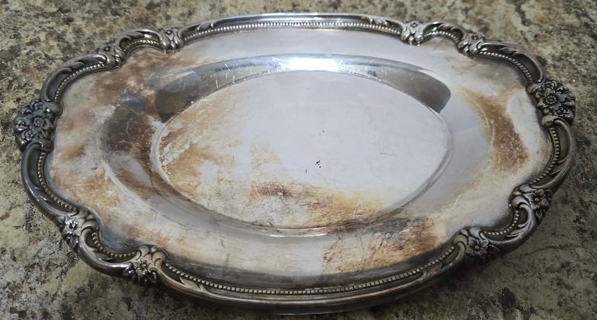 Vintage silverplate serving tray or platter, measures 9.75 x 6.5.