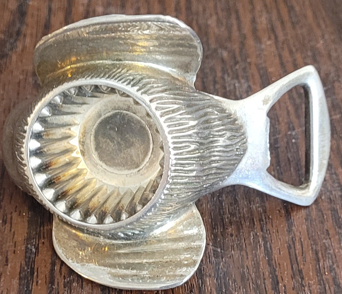 This is a silverplated bottle opener. It measures 3.25" long. See pictures for details.