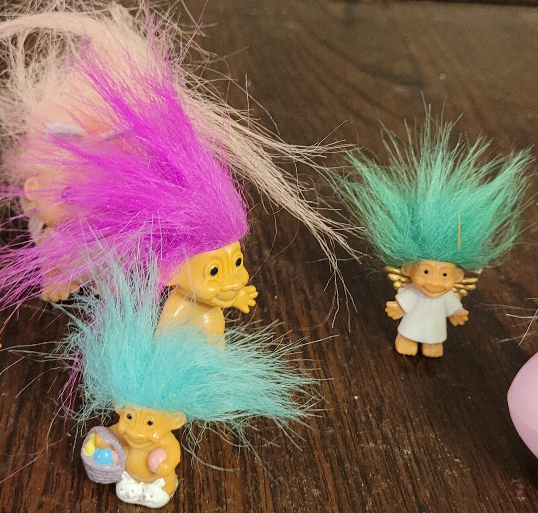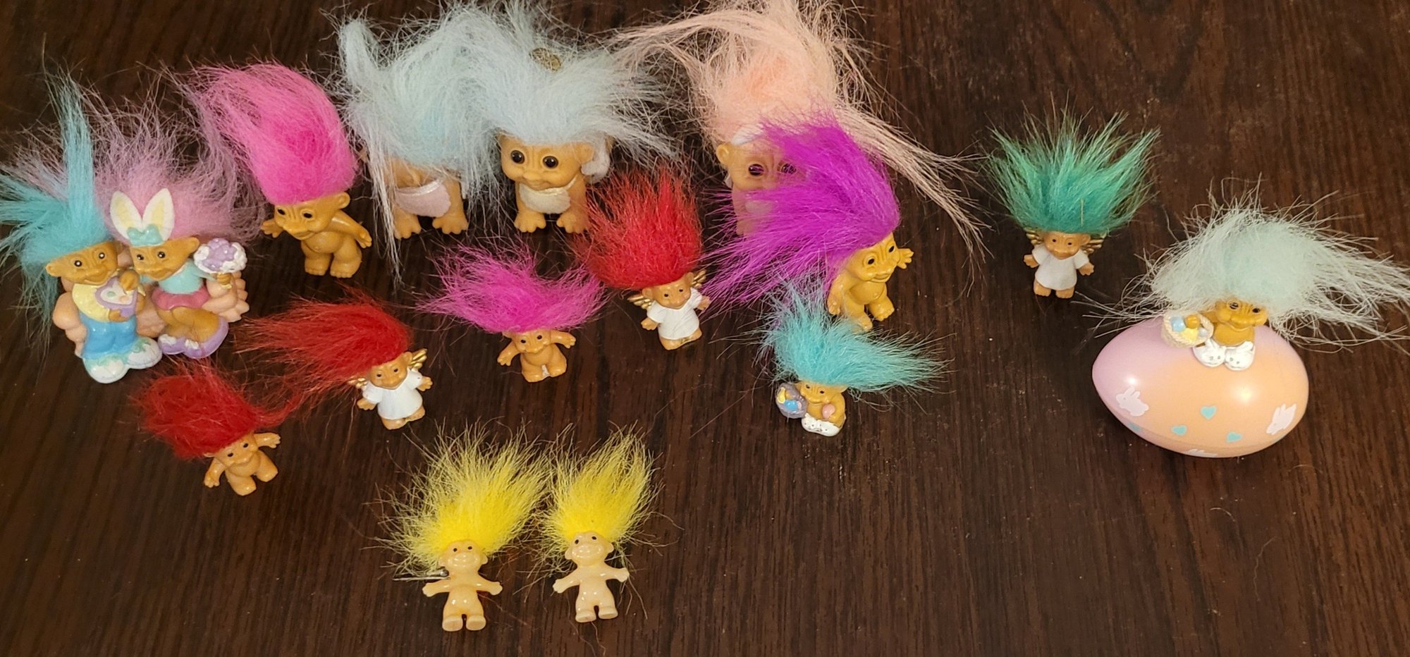 This lot comes with little trolls, baby trolls and a pair of troll earrings. See pictures for details.