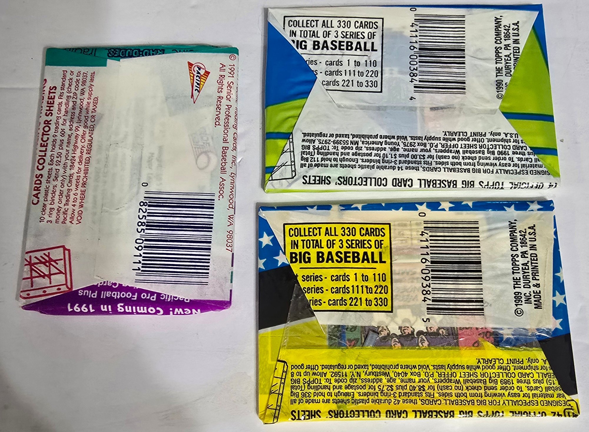 Vintage unopened packs of Topps Big Baseball cards from the late 1980s and early 1990s. Please see all pics for details.