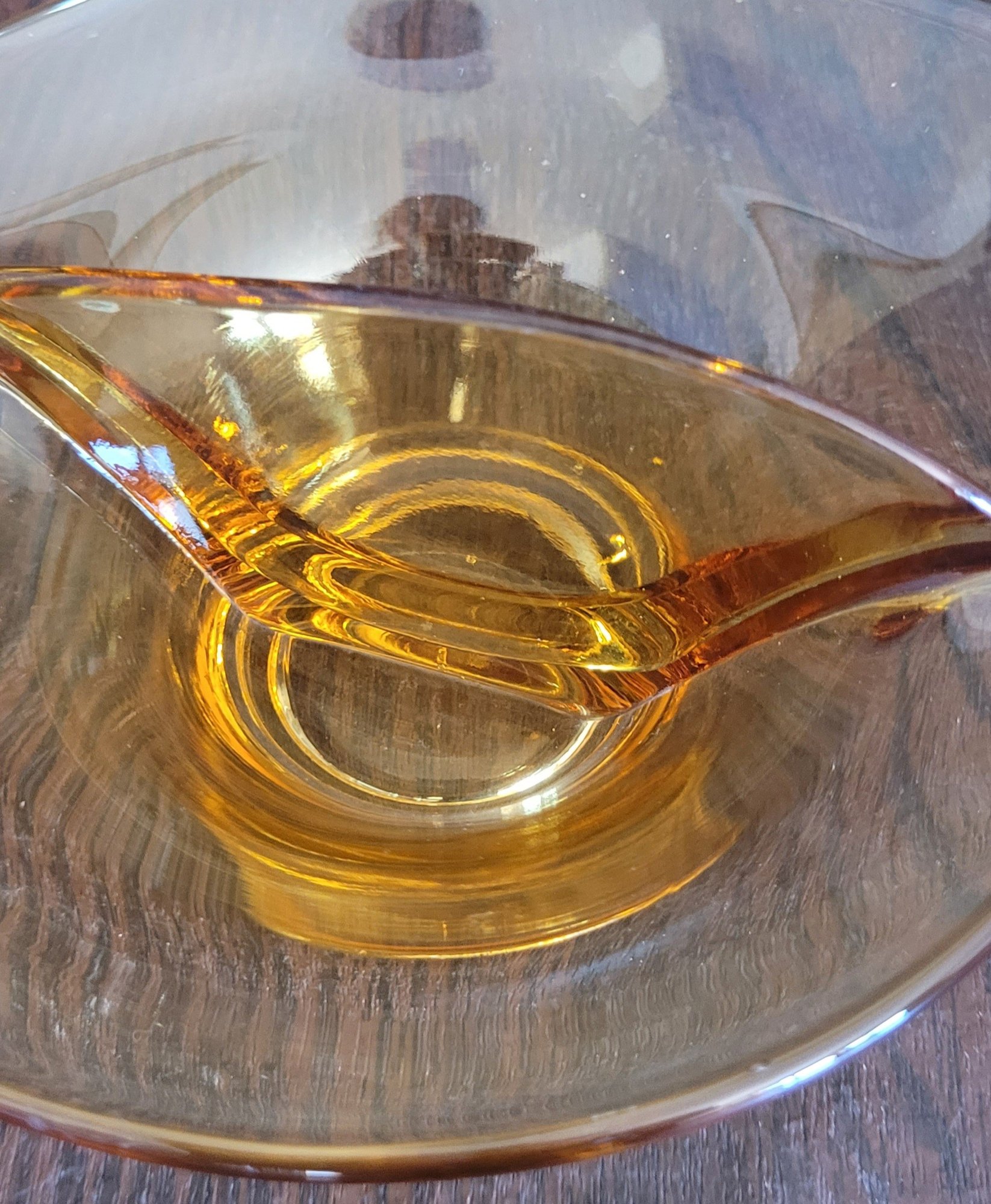 This measures 7.625" long by 6" wide by 2.75" tall. It looks to have some flaws in the glass. See pictures for details.