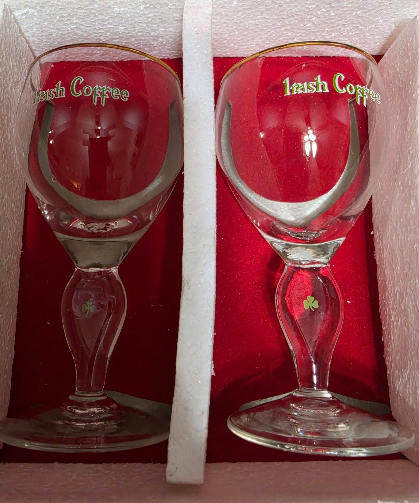 Vintage Waterford set of Irish Coffee glasses packaged in a gift set in a box. No cracks or chips noted.
