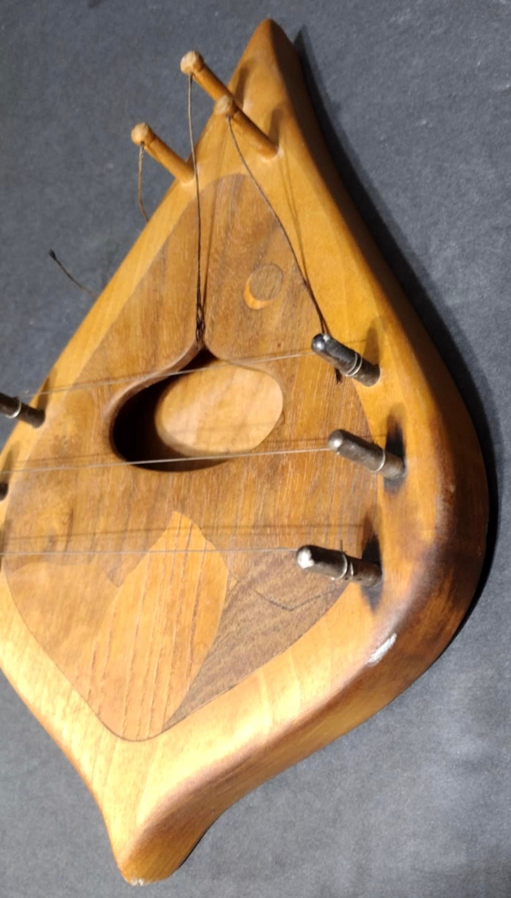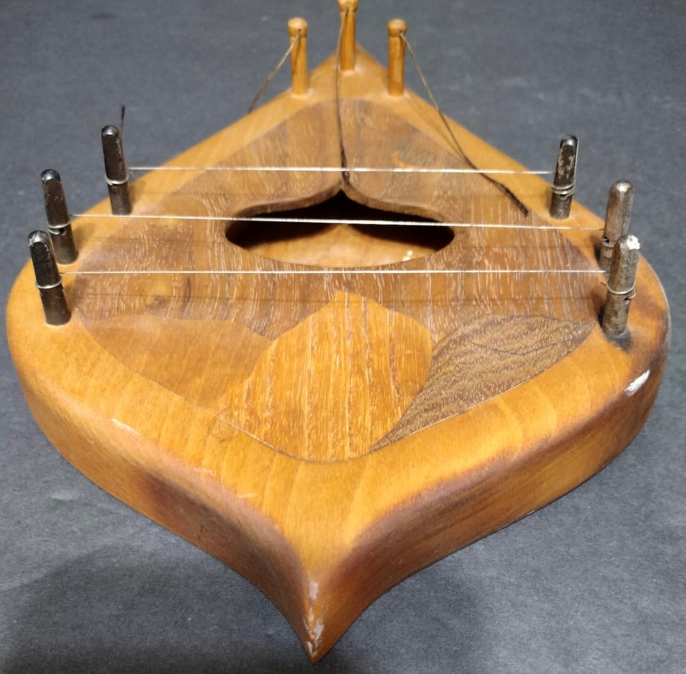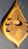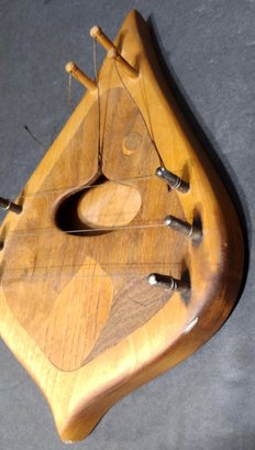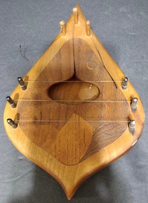 Vintage Wood String Musical Door Chime Harp Inlay Art. Missing the sphere-shaped pendulums . Measures 9.75 x 6.