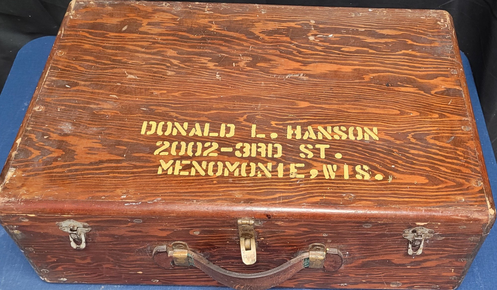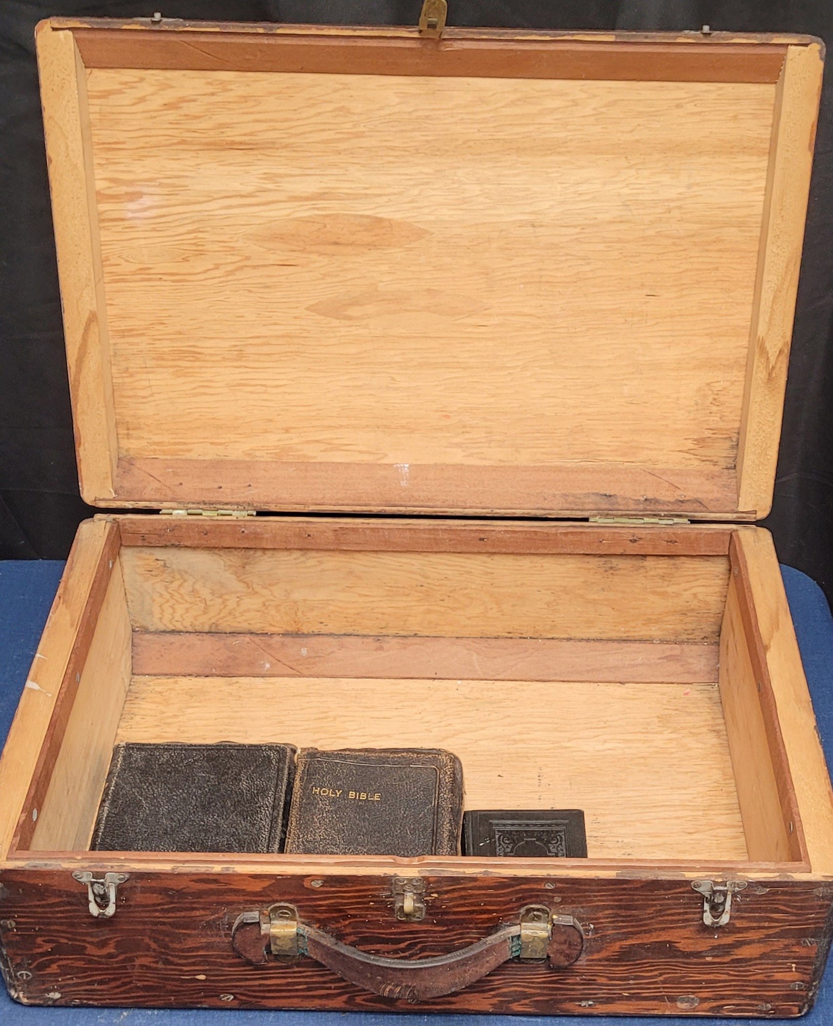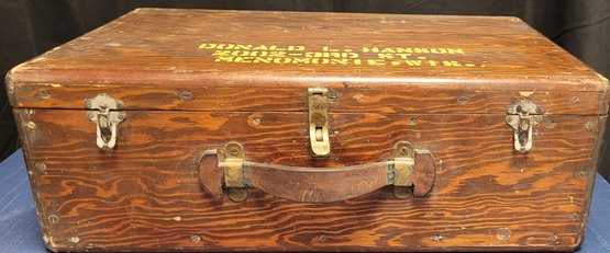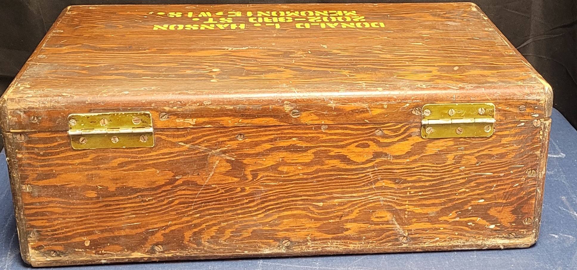This measures 23" long by 15" wide by 8" tall. The latch on this is bent. See pictures for details.