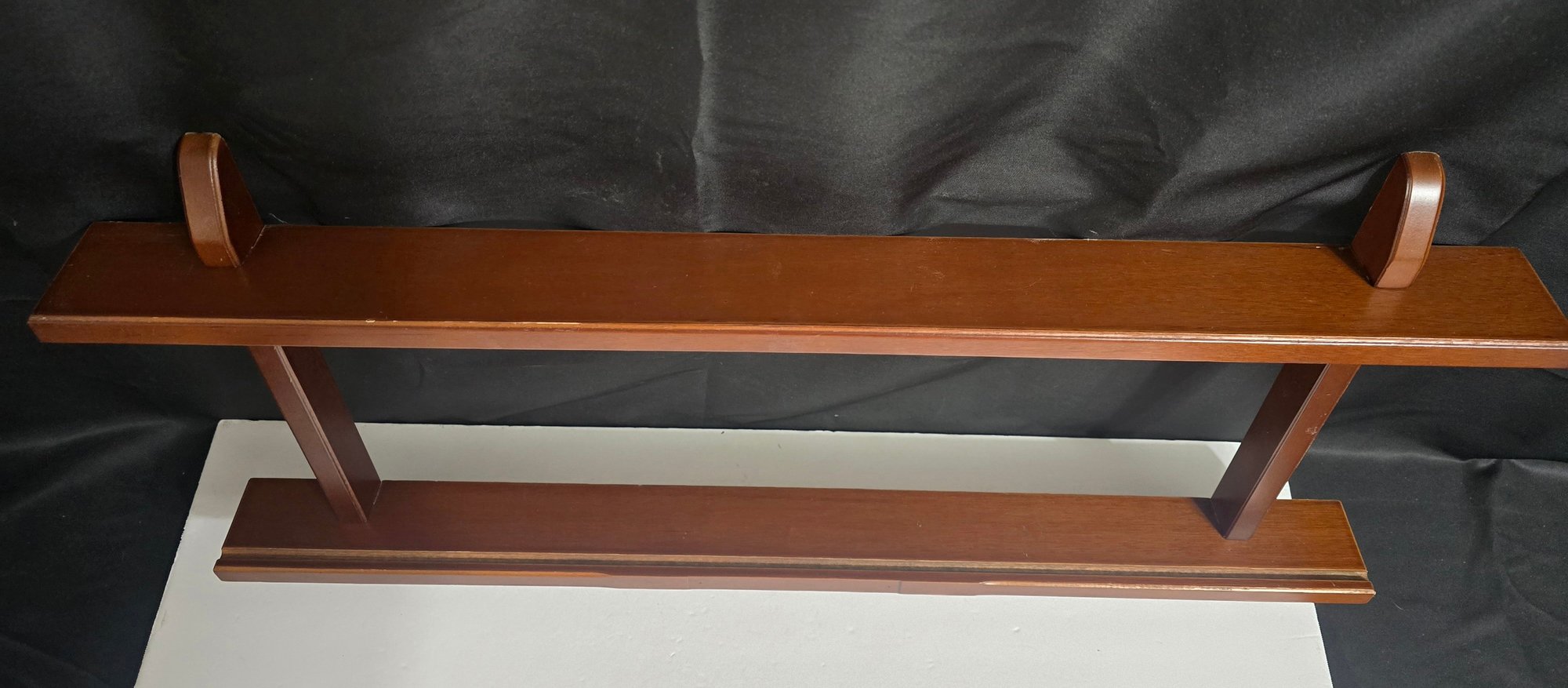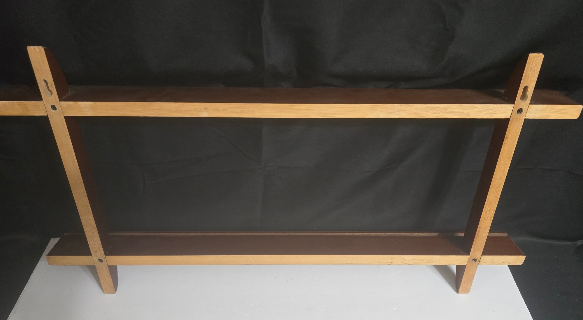 Vintage wooden knick-knack or plate display shelf, measures 27 x 2.75 x 14. Please see all pics for details